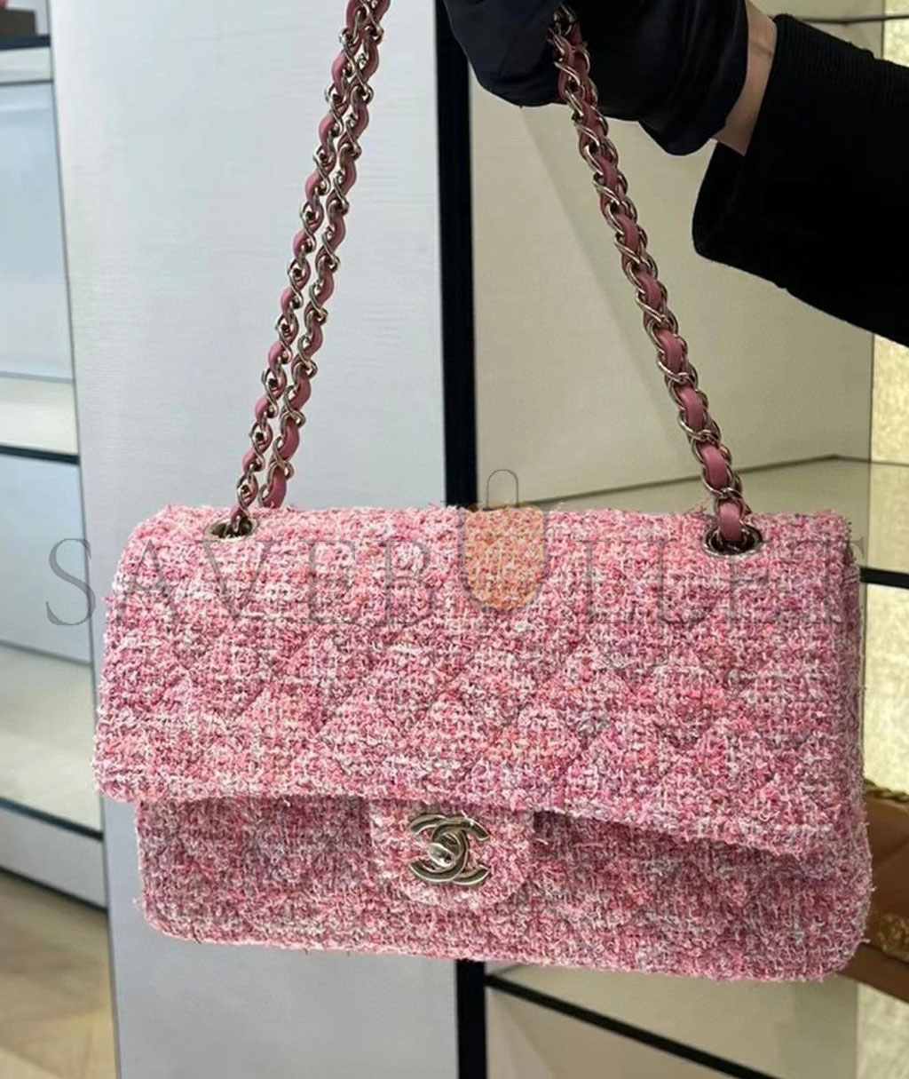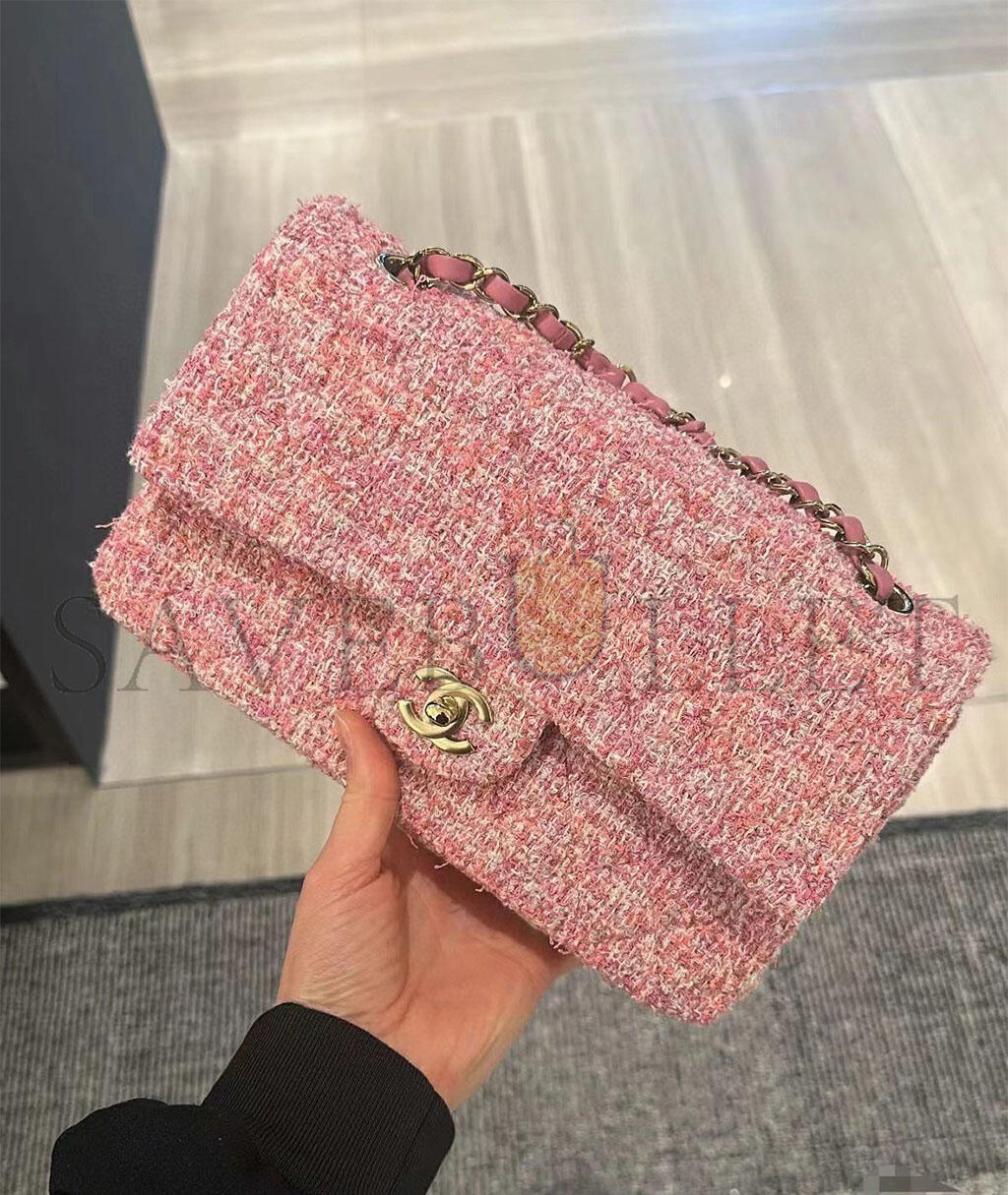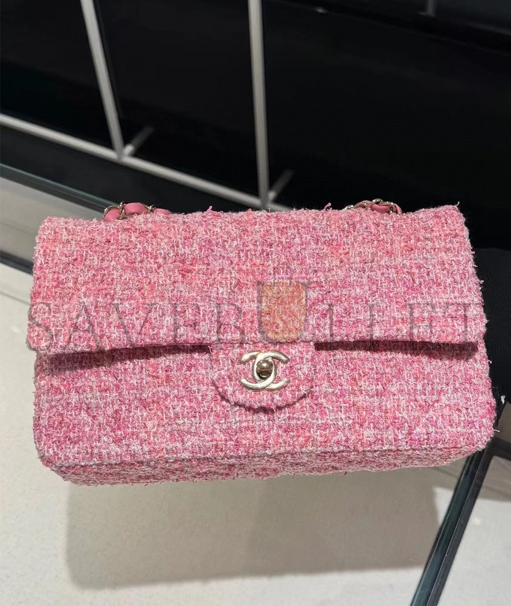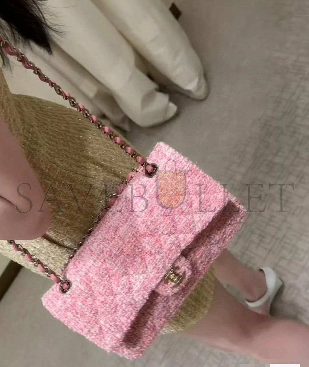 CHANEL TWEED QUILTED FLAP PINK GOLD HARDWARE (25.5*15.5*6.5cm)