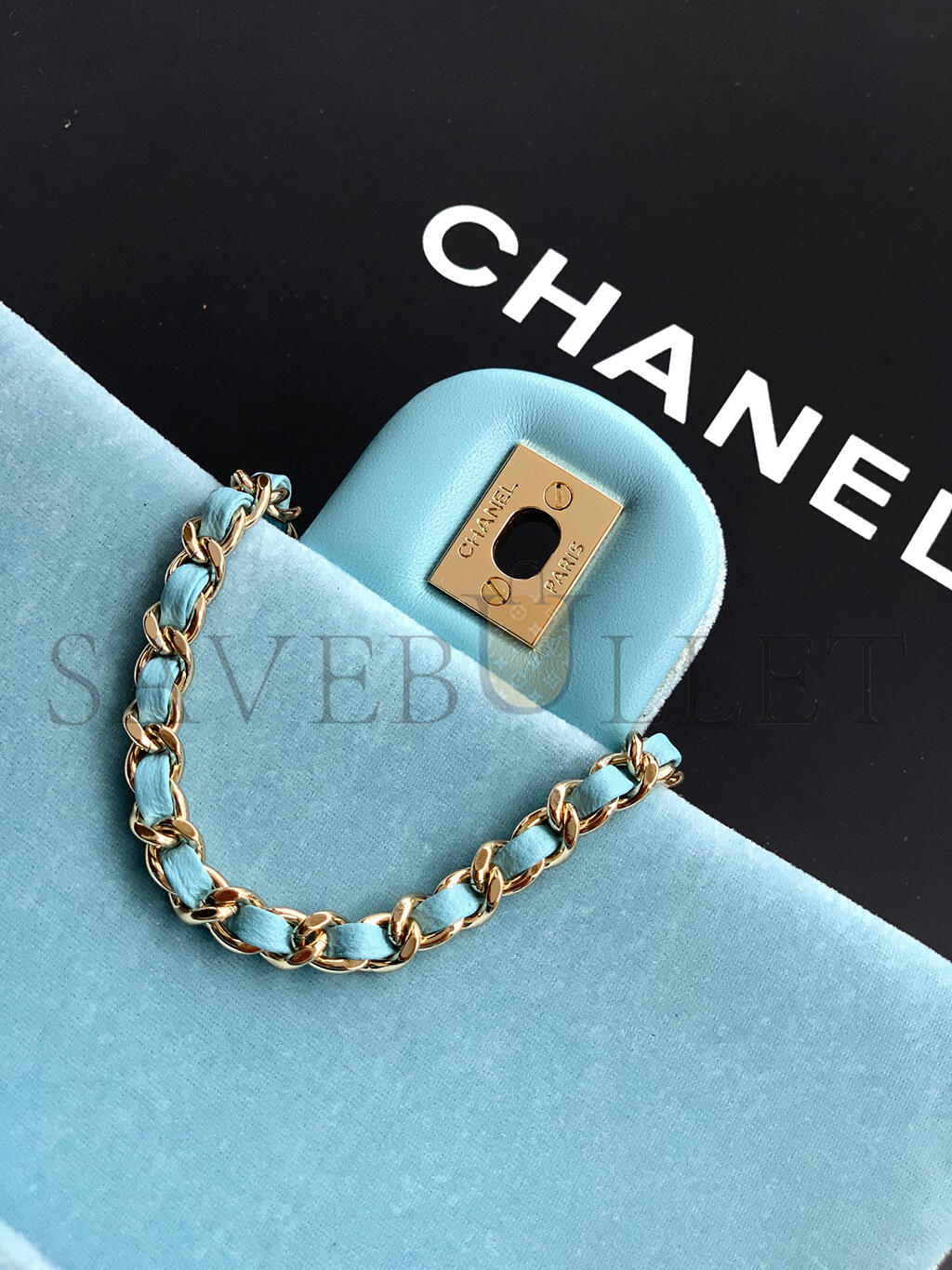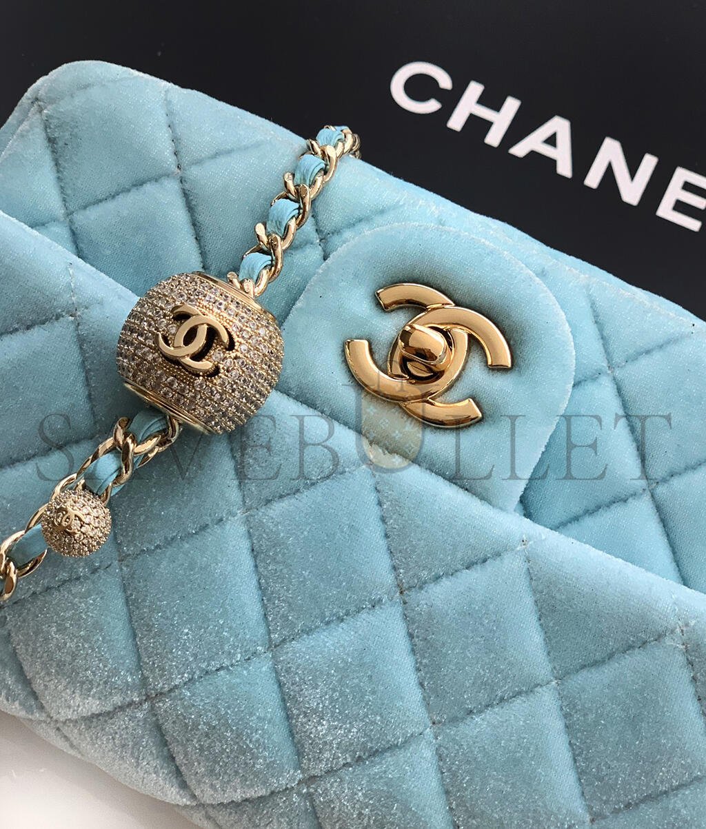 CHANEL MINI FLAP BAG VELVET, DIAMANT & GOLD-TONE METAL BLUE AS1787 (20*13*7cm)