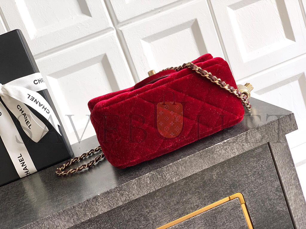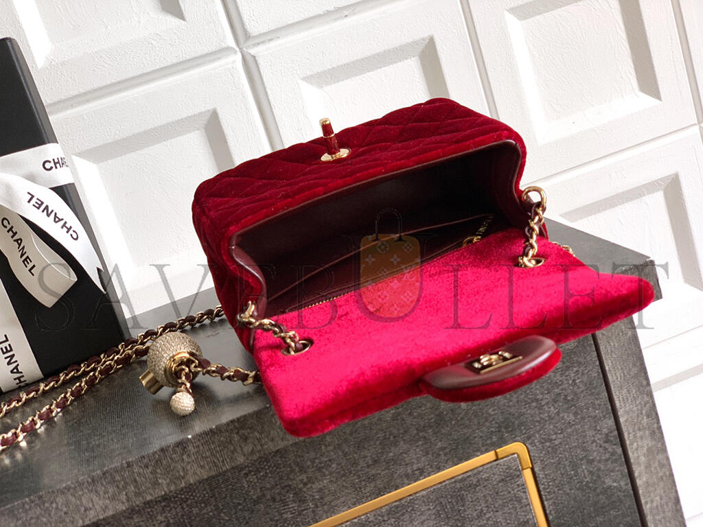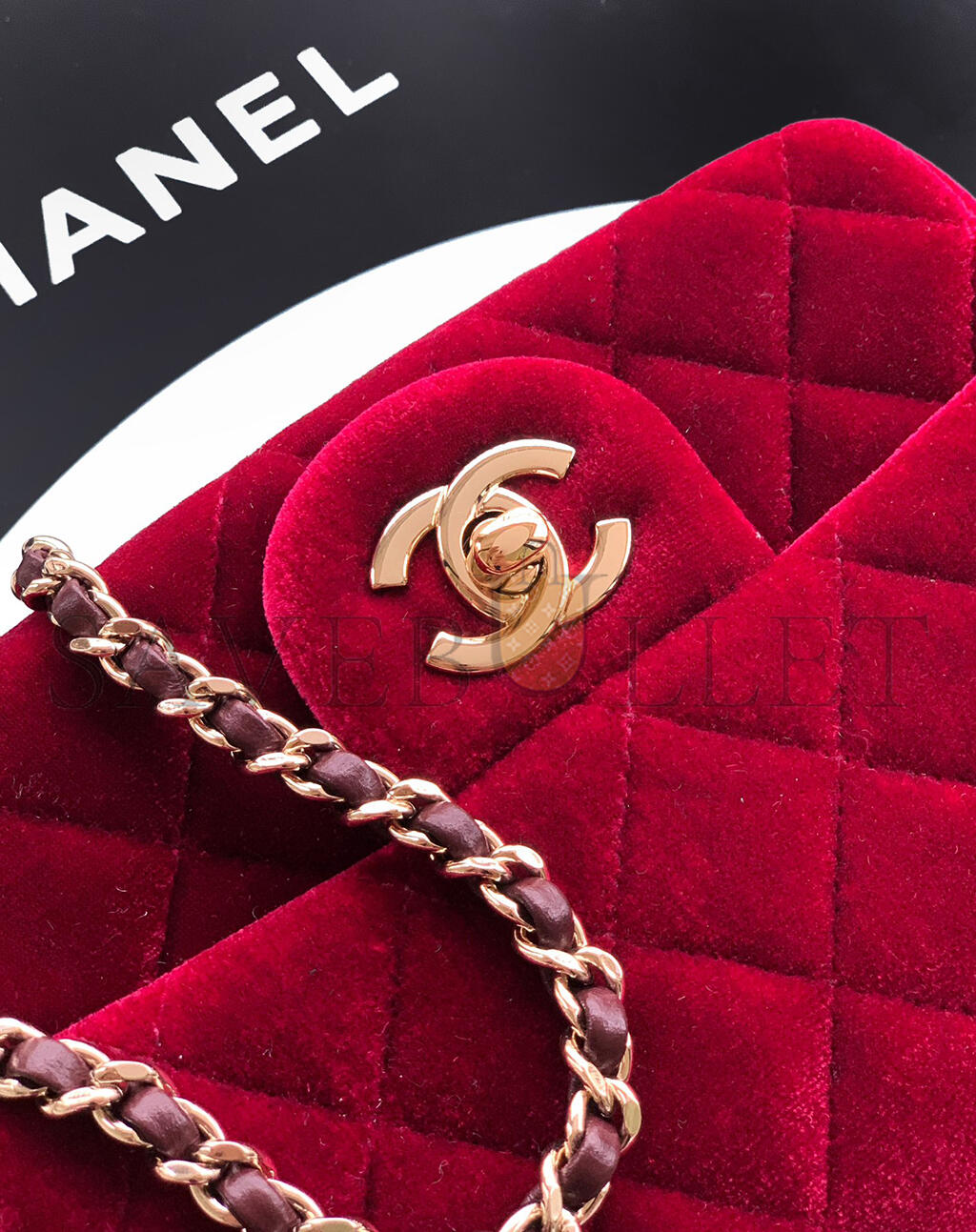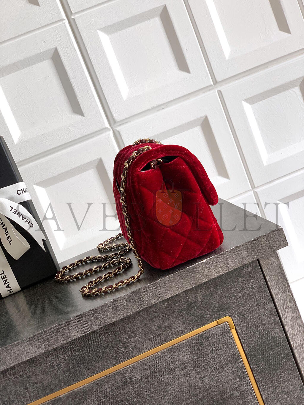 CHANEL MINI FLAP BAG VELVET, DIAMANT & GOLD-TONE METAL BRIGHT RED AS1786 (18*13*7cm)