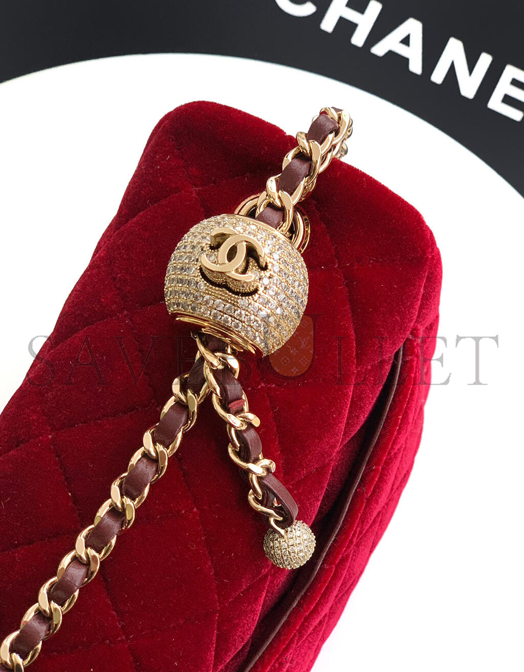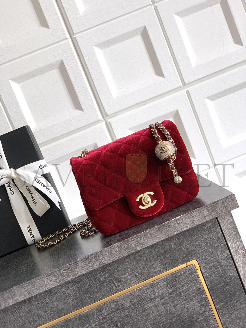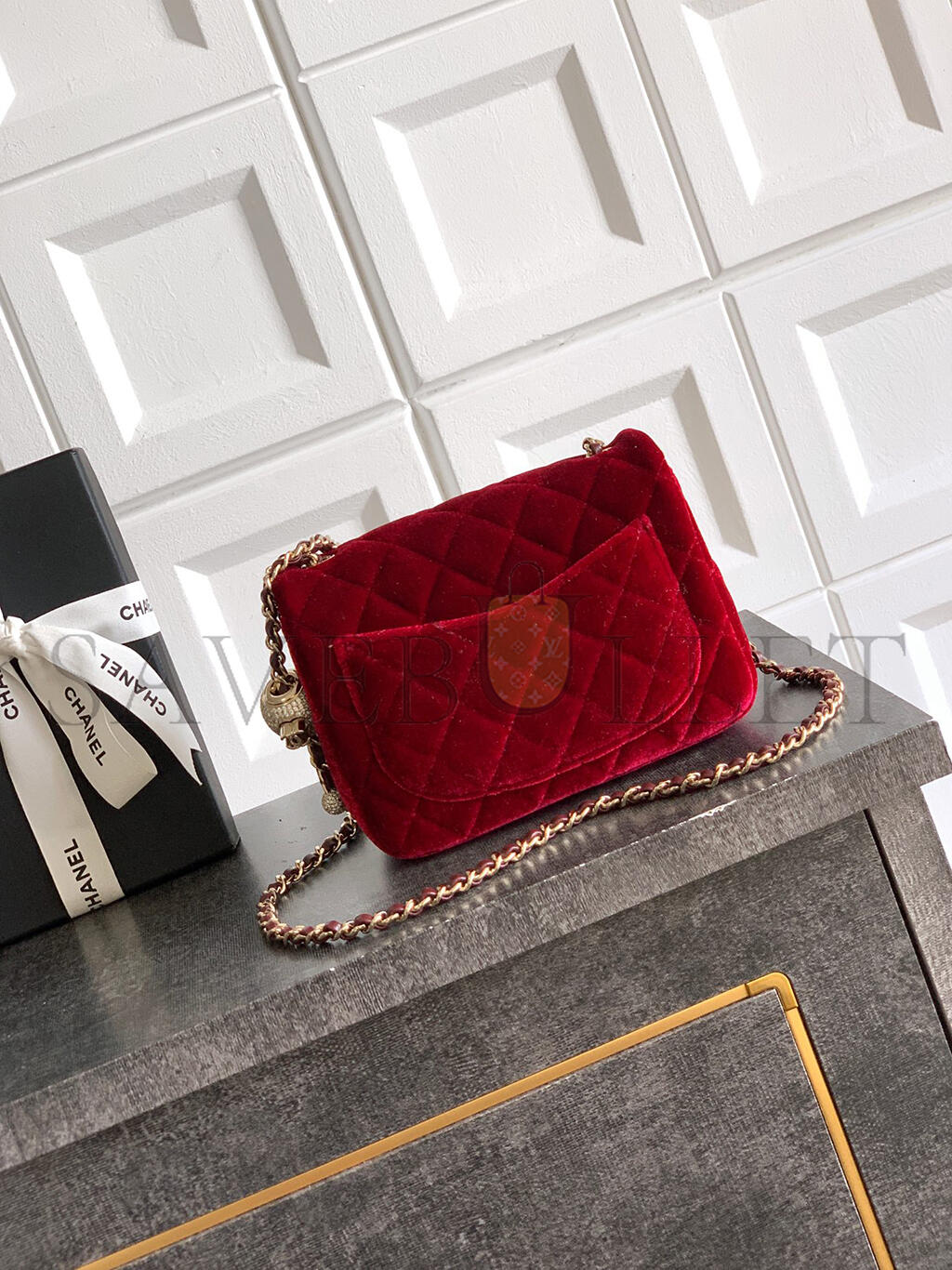 CHANEL MINI FLAP BAG VELVET, DIAMANT & GOLD-TONE METAL BRIGHT RED AS1786 (18*13*7cm)