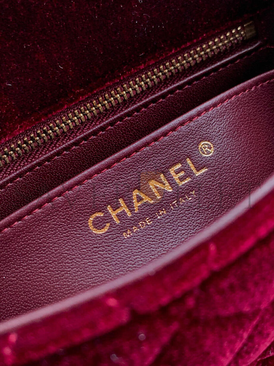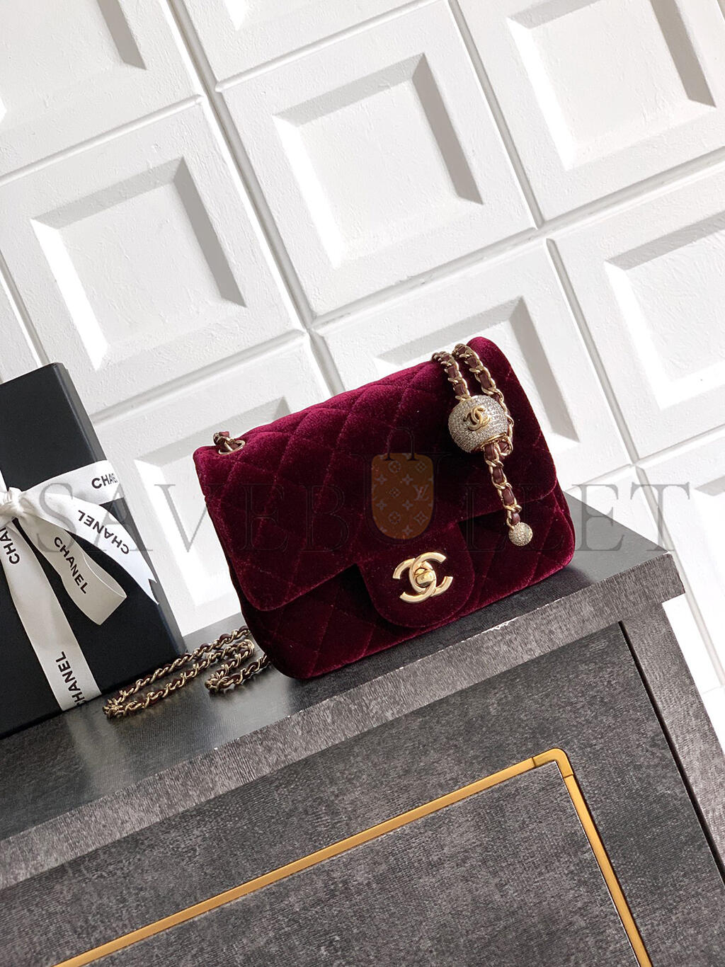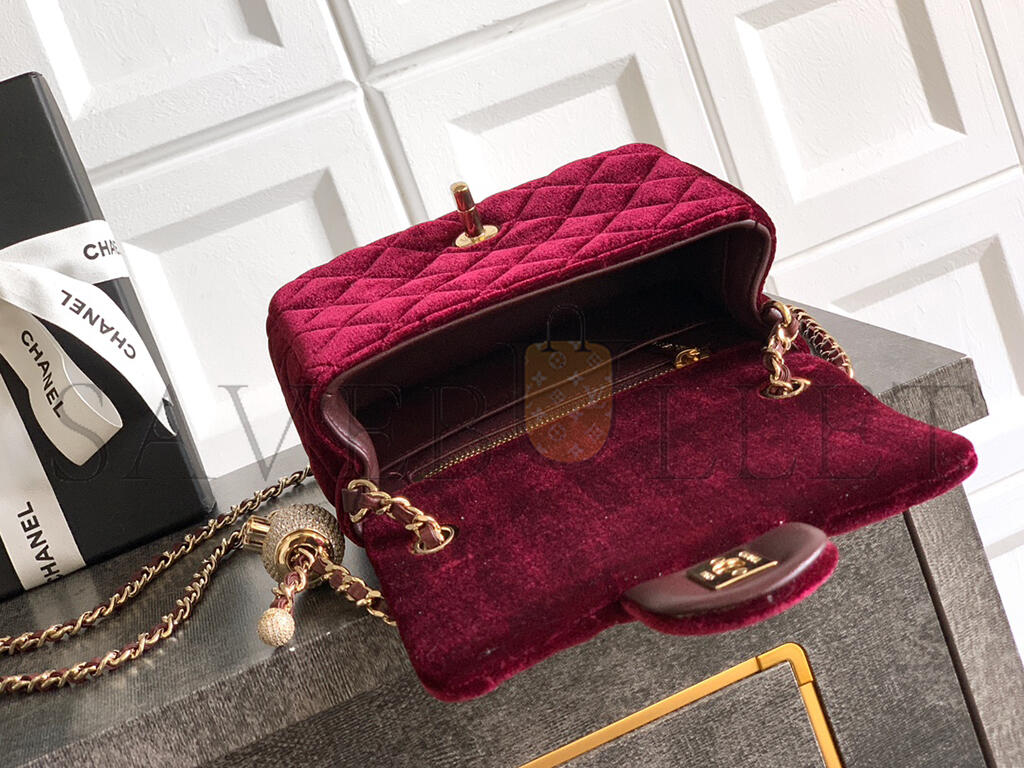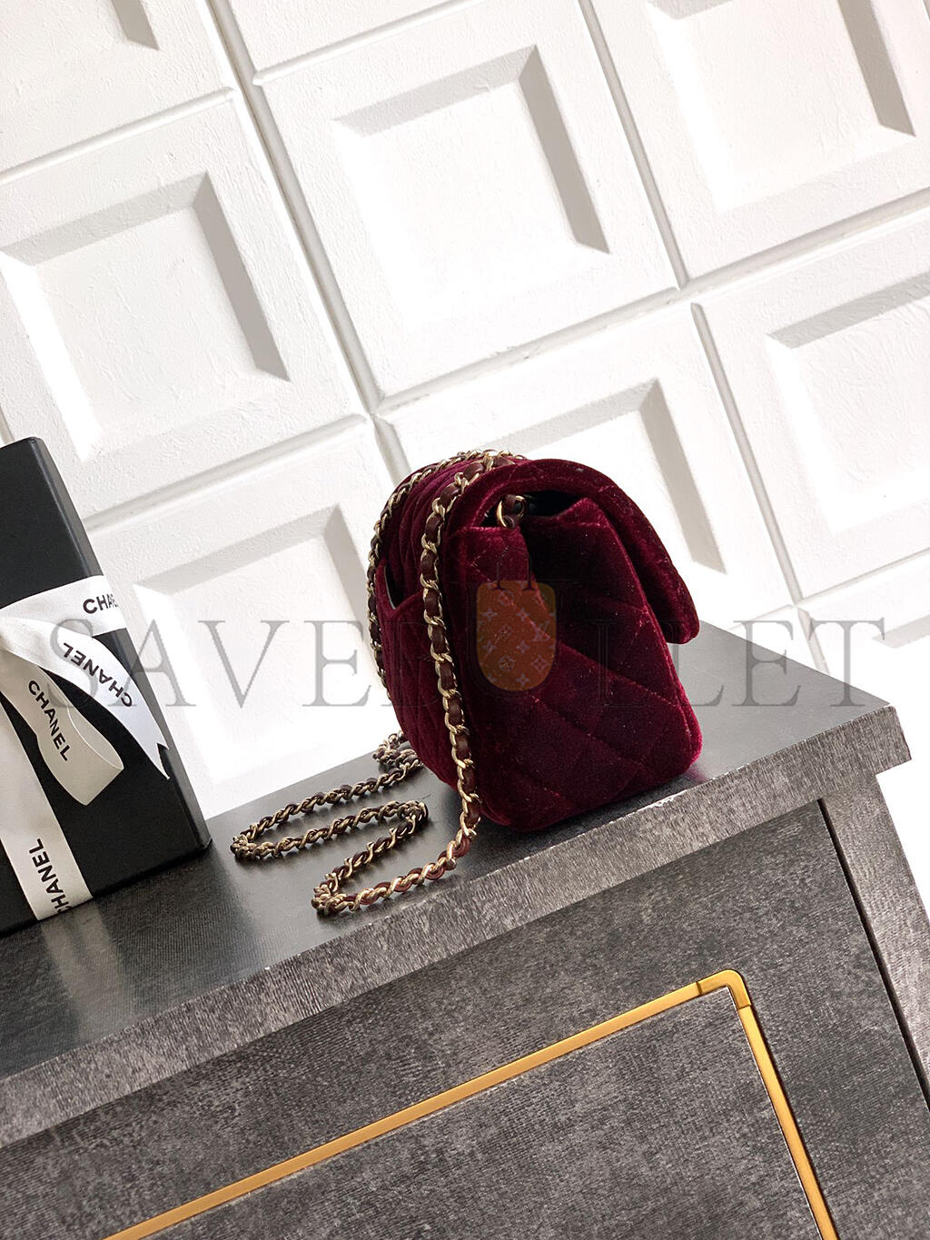 CHANEL MINI FLAP BAG VELVET, DIAMANT & GOLD-TONE METAL BURGUNDY AS1786 (18*13*7cm)