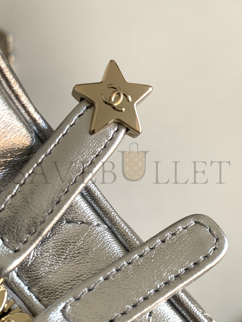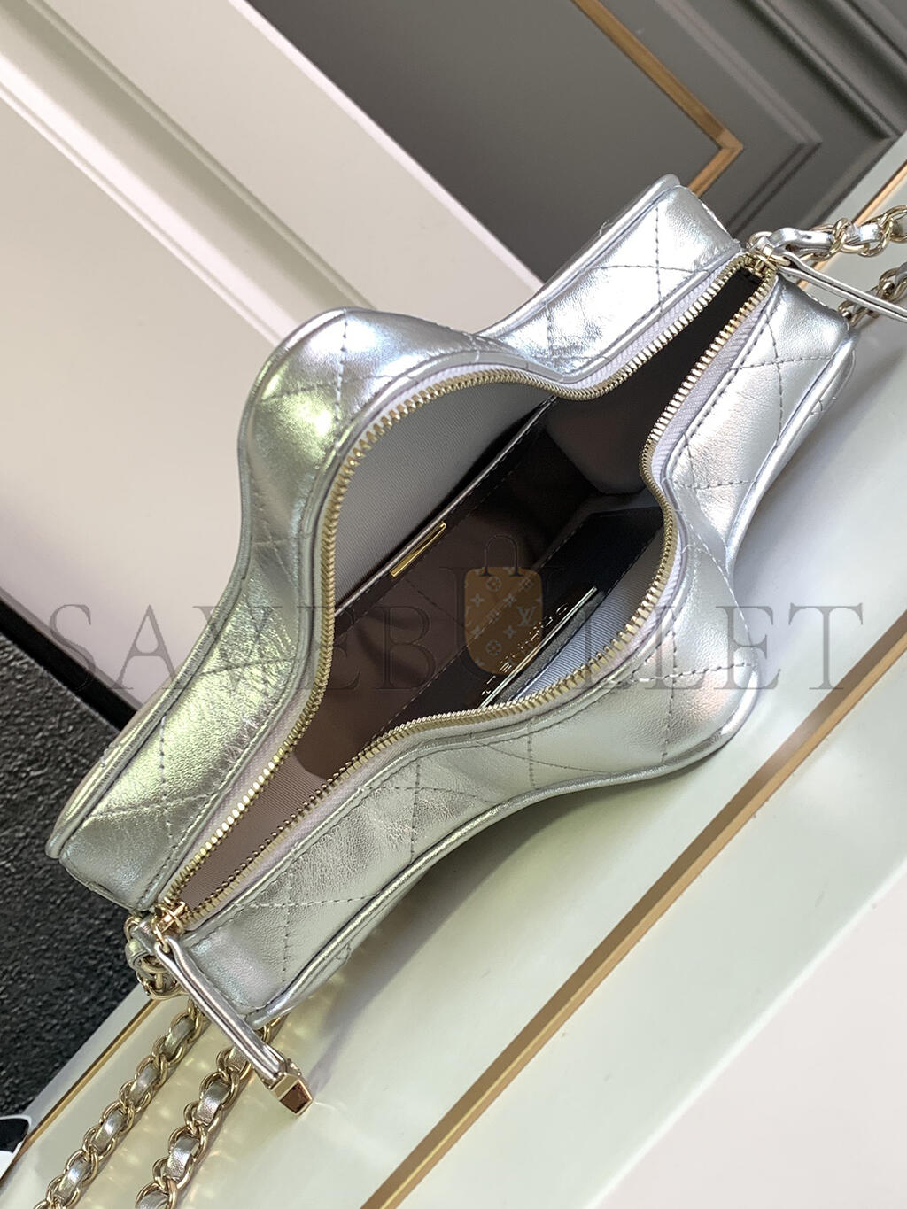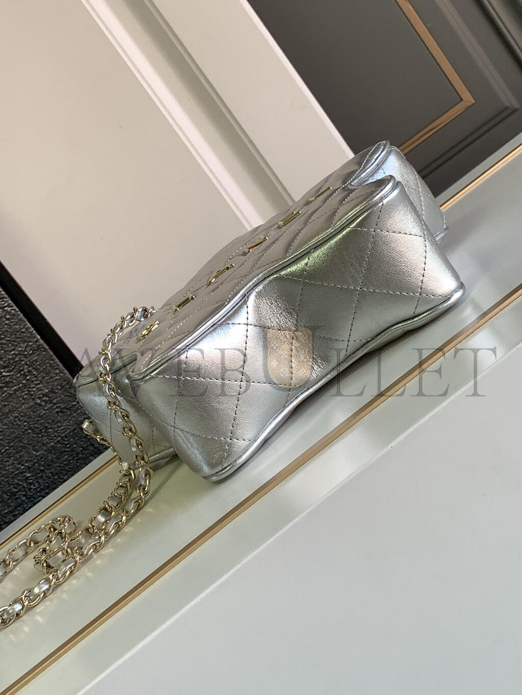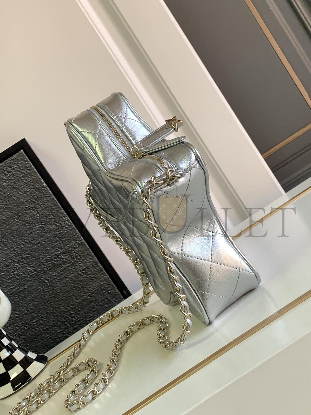 CHANEL METALLIC LAMBSKIN WALK OF FAME BAG SILVER AS4579 (22.5*22.5*6cm)