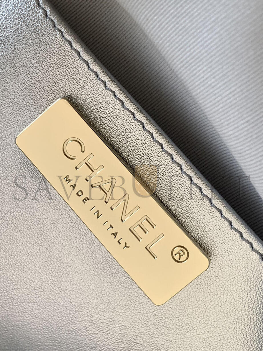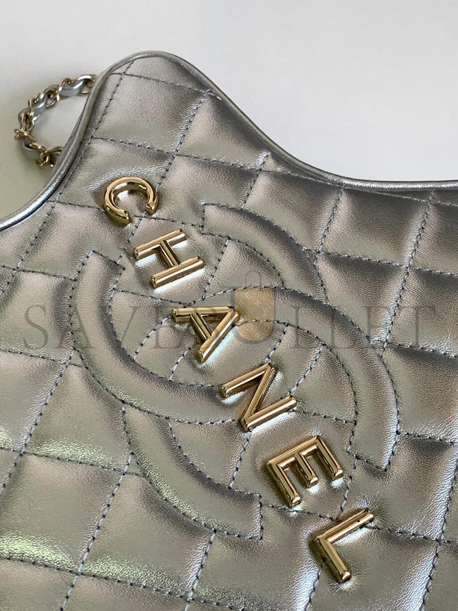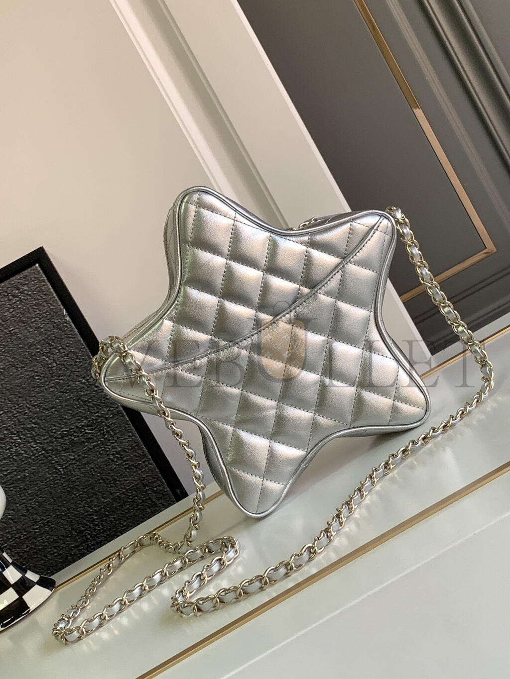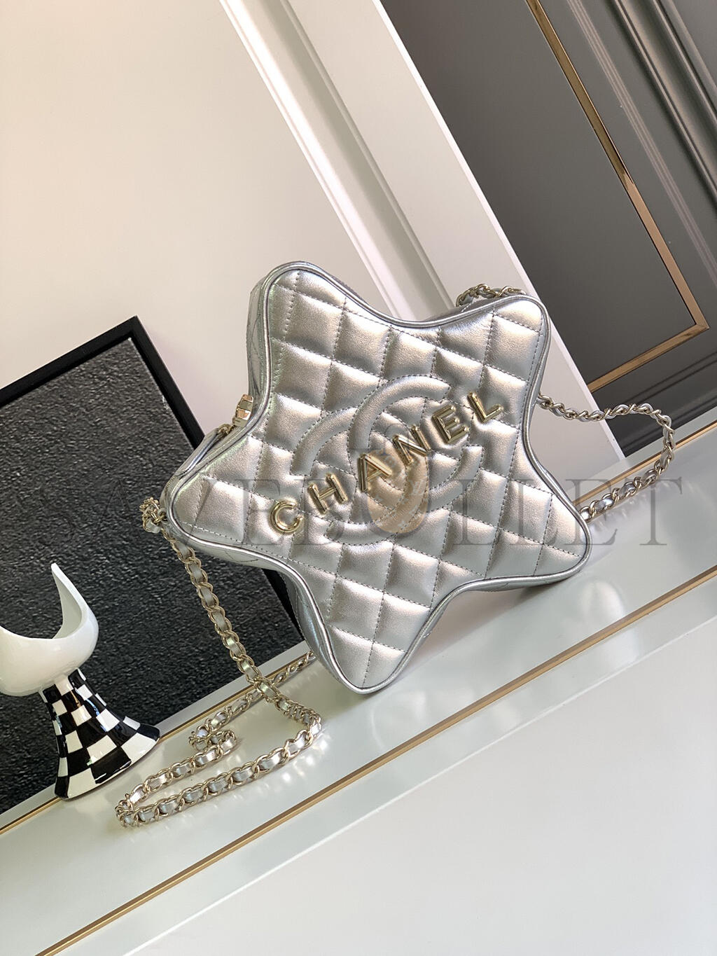 CHANEL METALLIC LAMBSKIN WALK OF FAME BAG SILVER AS4579 (22.5*22.5*6cm)