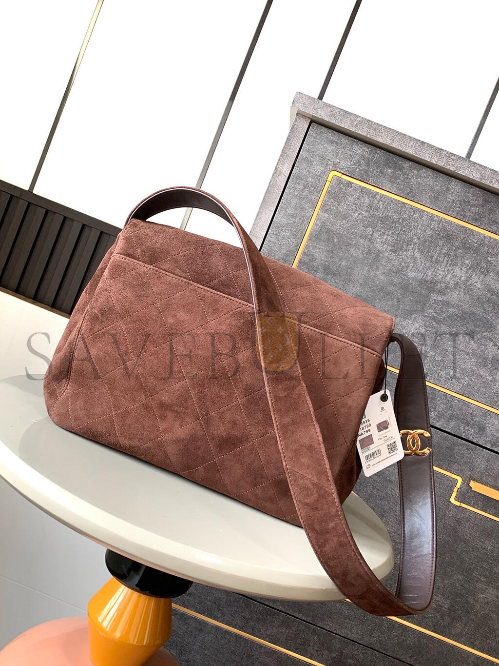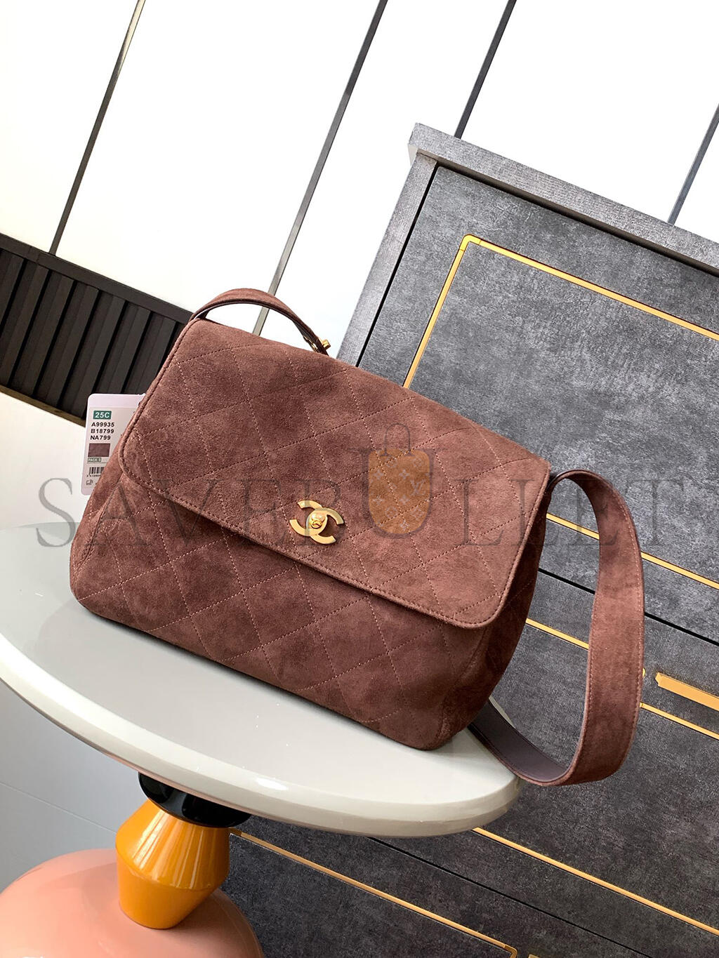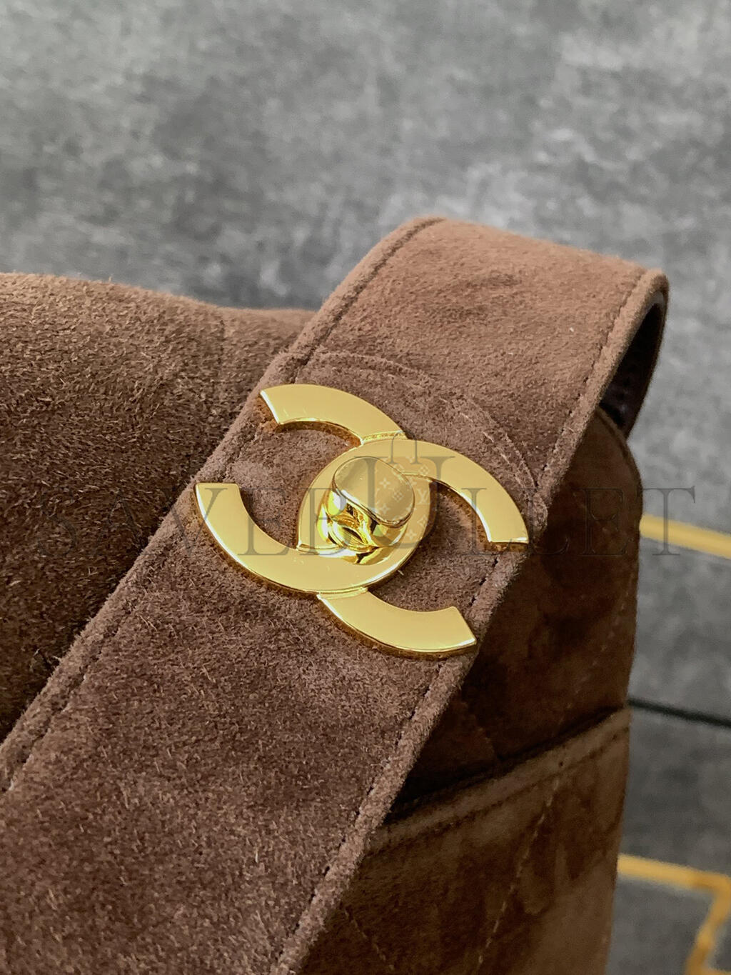 CHANEL VINTAGE SUEDE QUILTED FLAP SHOULDER BAG A99935 (28*24*12.5cm)