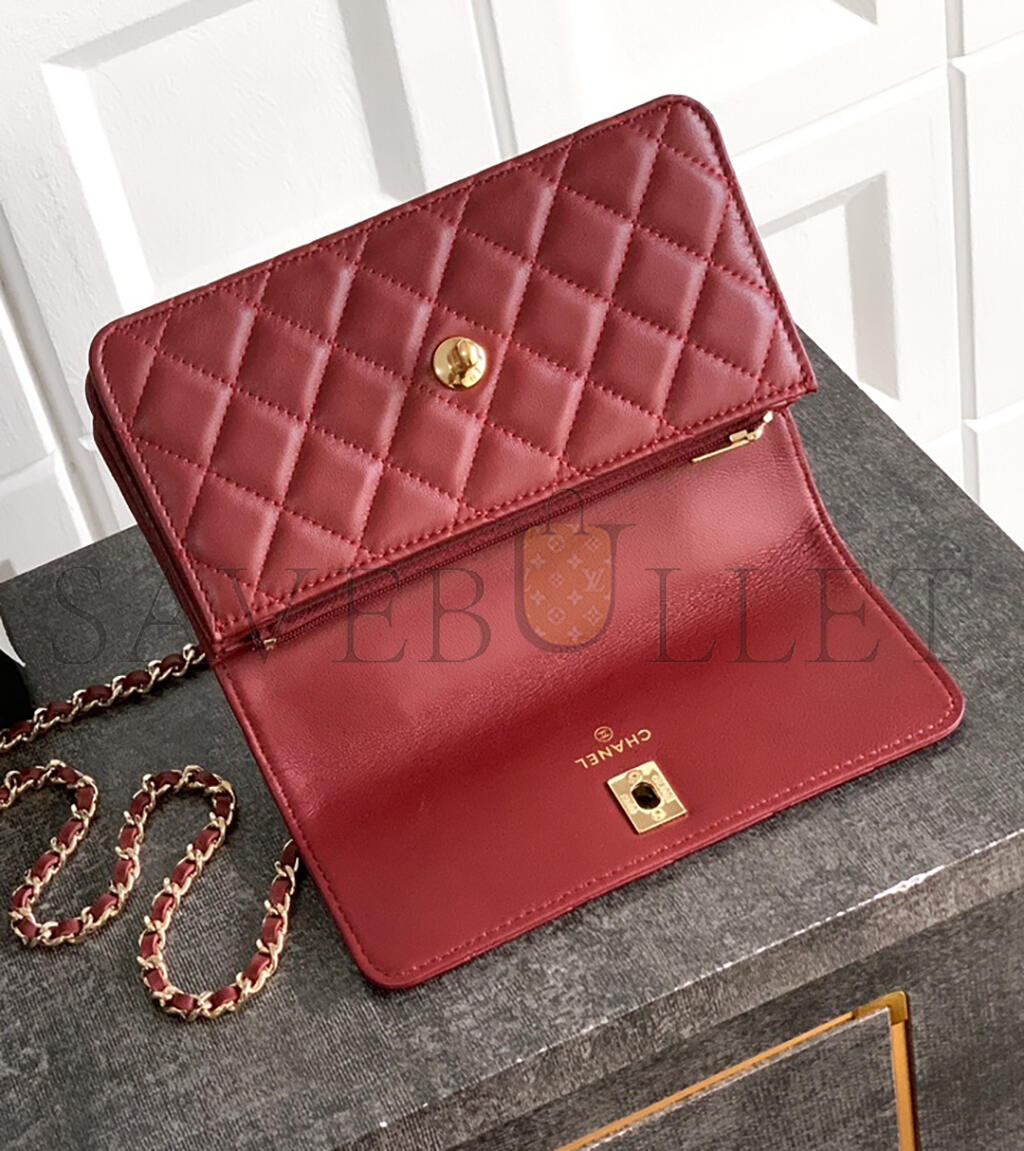 CHANEL CLUTCH WITH CHAIN LAMBSKIN, DIAMANTÉ & GOLD METAL AP4831 (21*13*6.5cm)