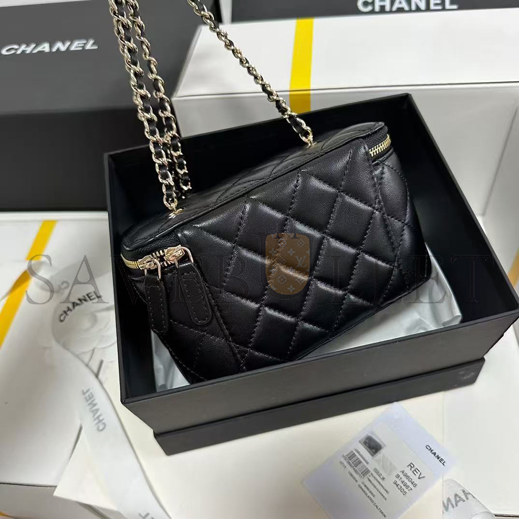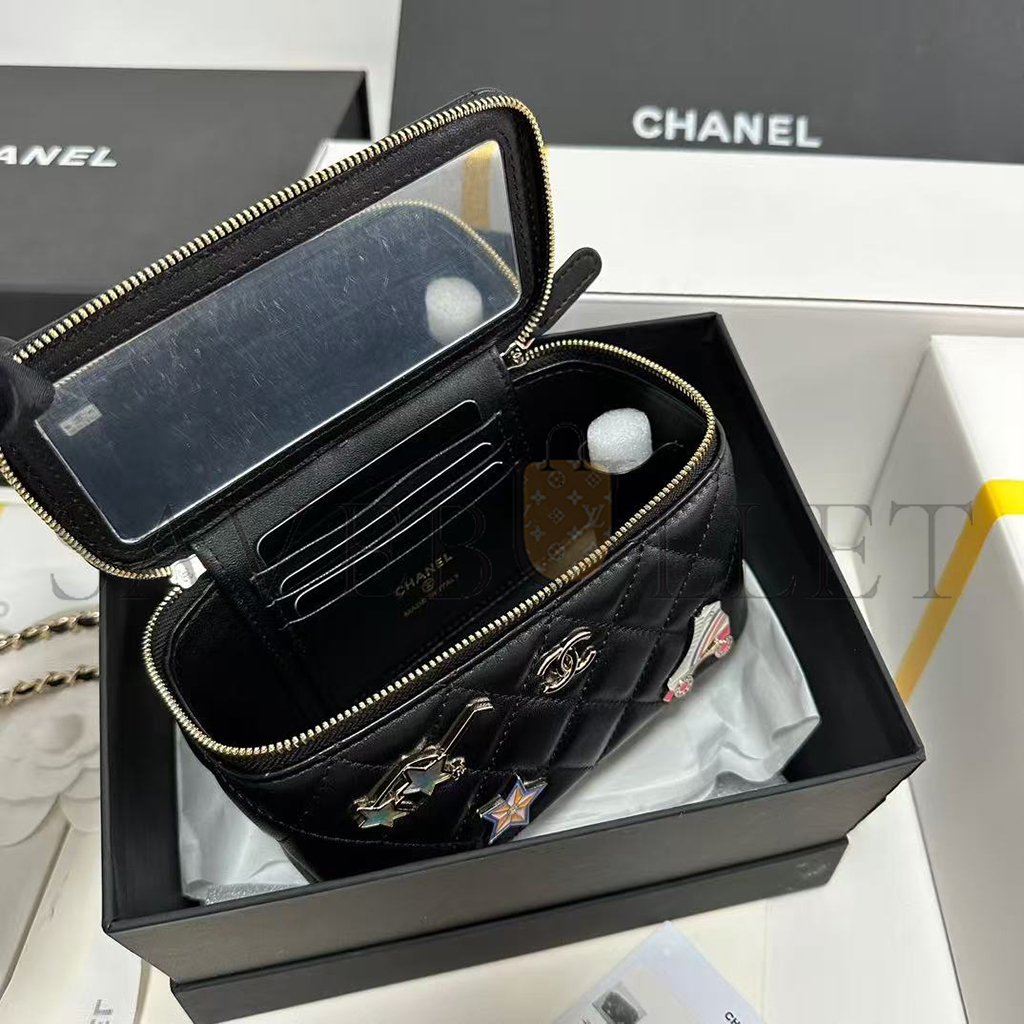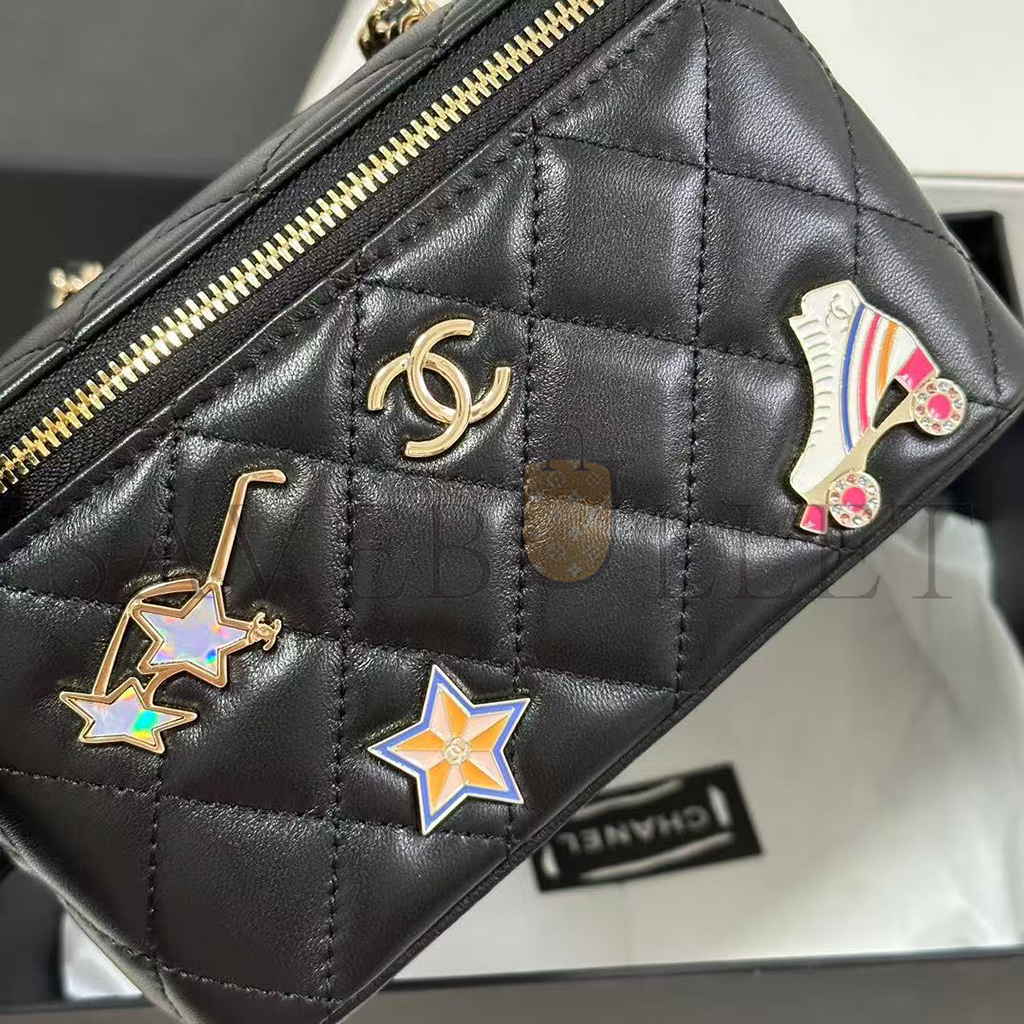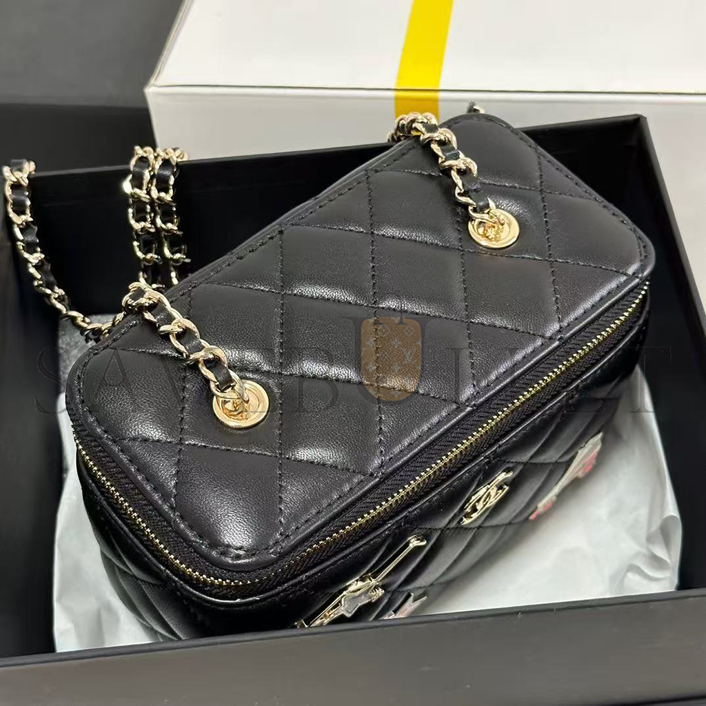 CHANEL LAMBSKIN QUILTED ROLLER SKATE SMALL VANITY CASE WITH CHAIN AP1341 (16*9.5*7.5cm)