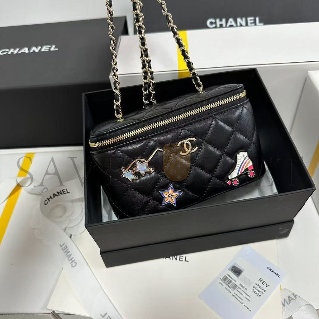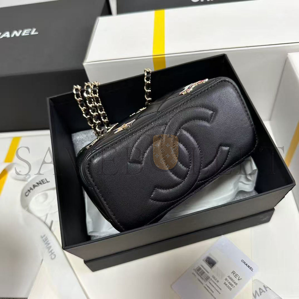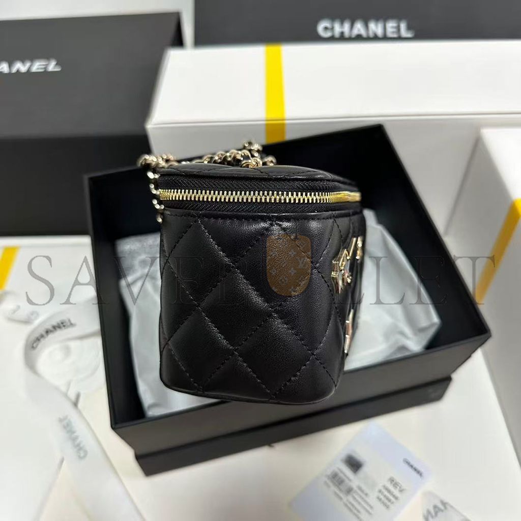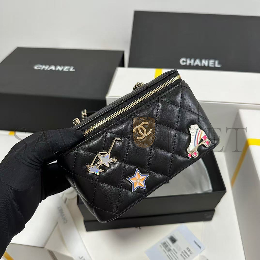 CHANEL LAMBSKIN QUILTED ROLLER SKATE SMALL VANITY CASE WITH CHAIN AP1341 (16*9.5*7.5cm)