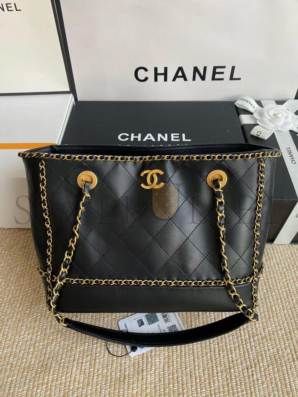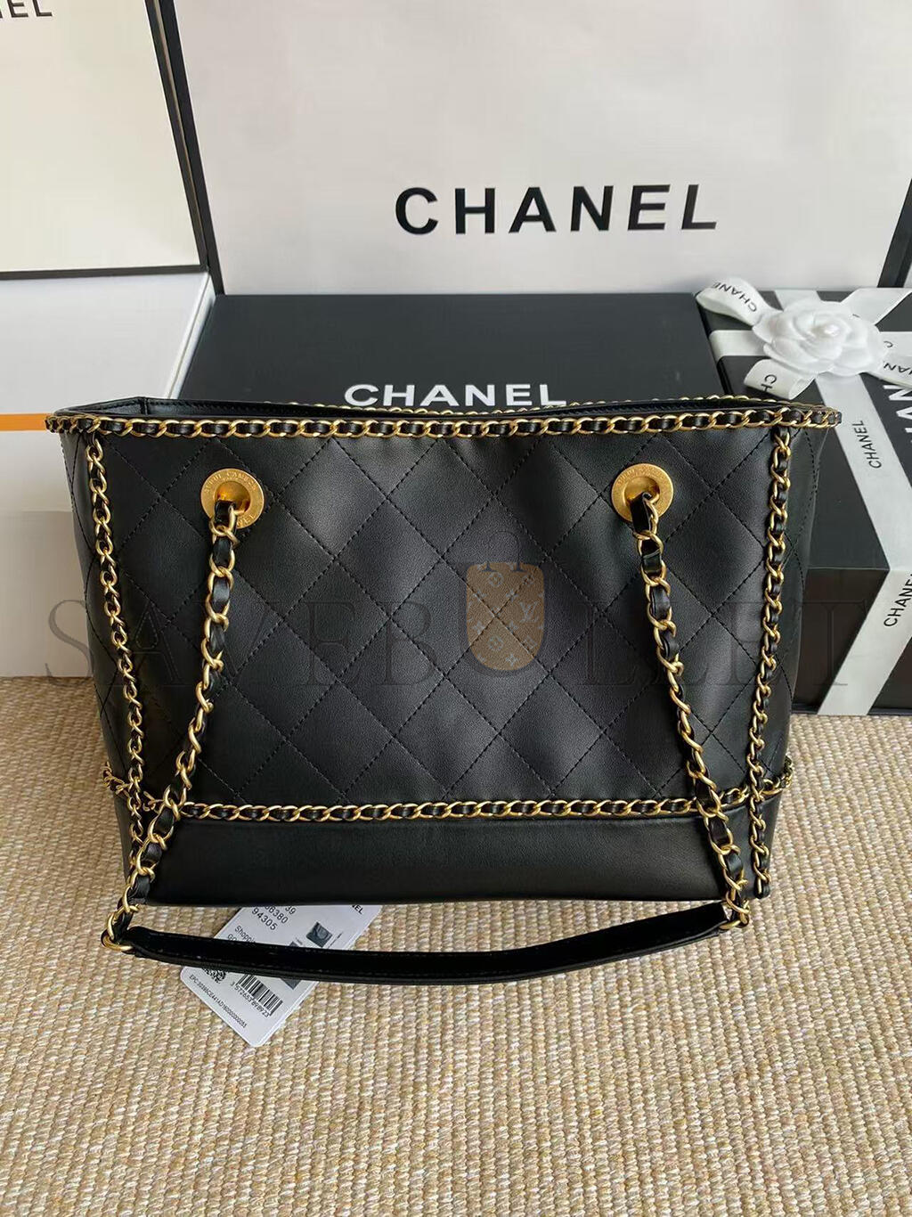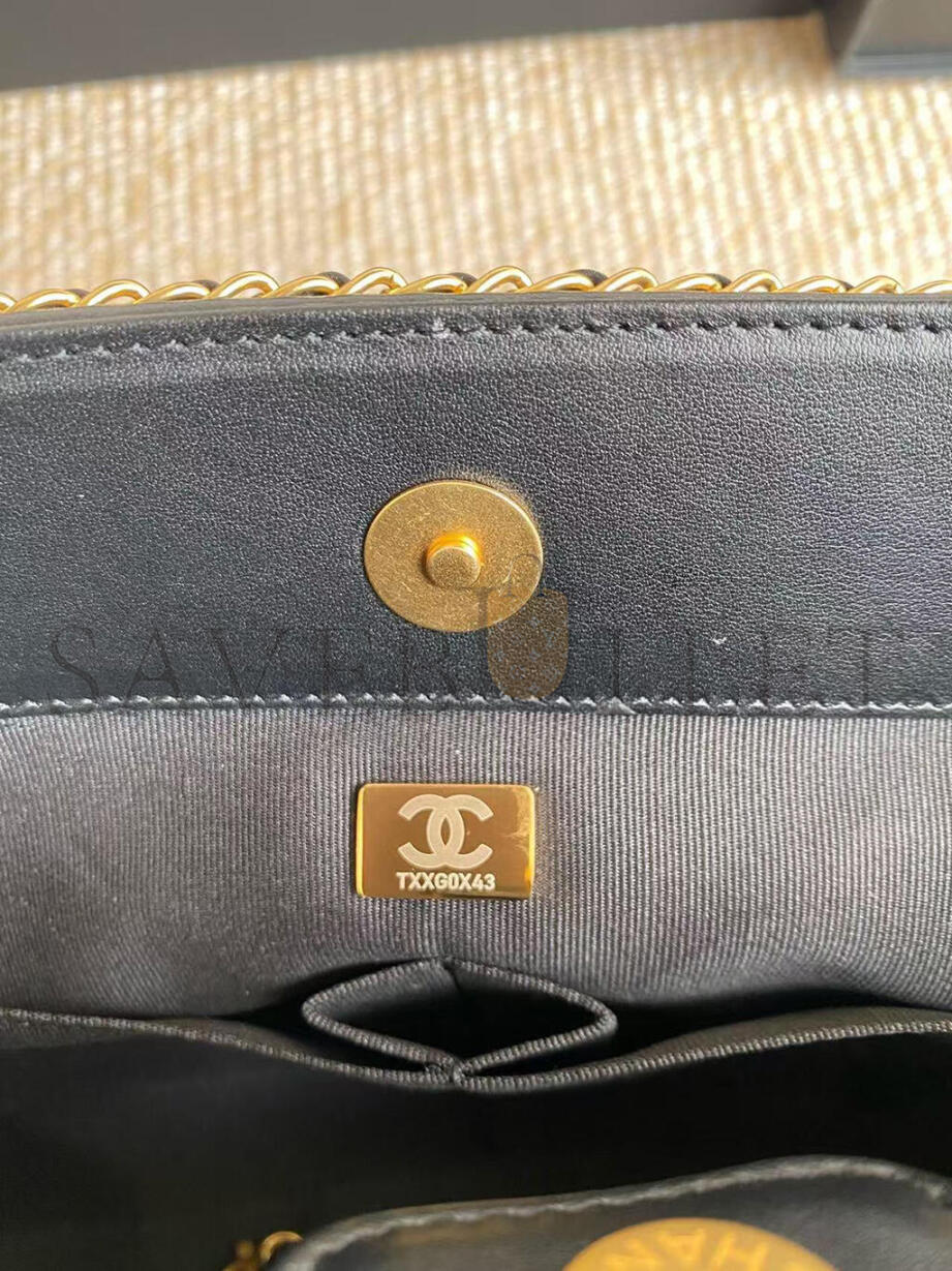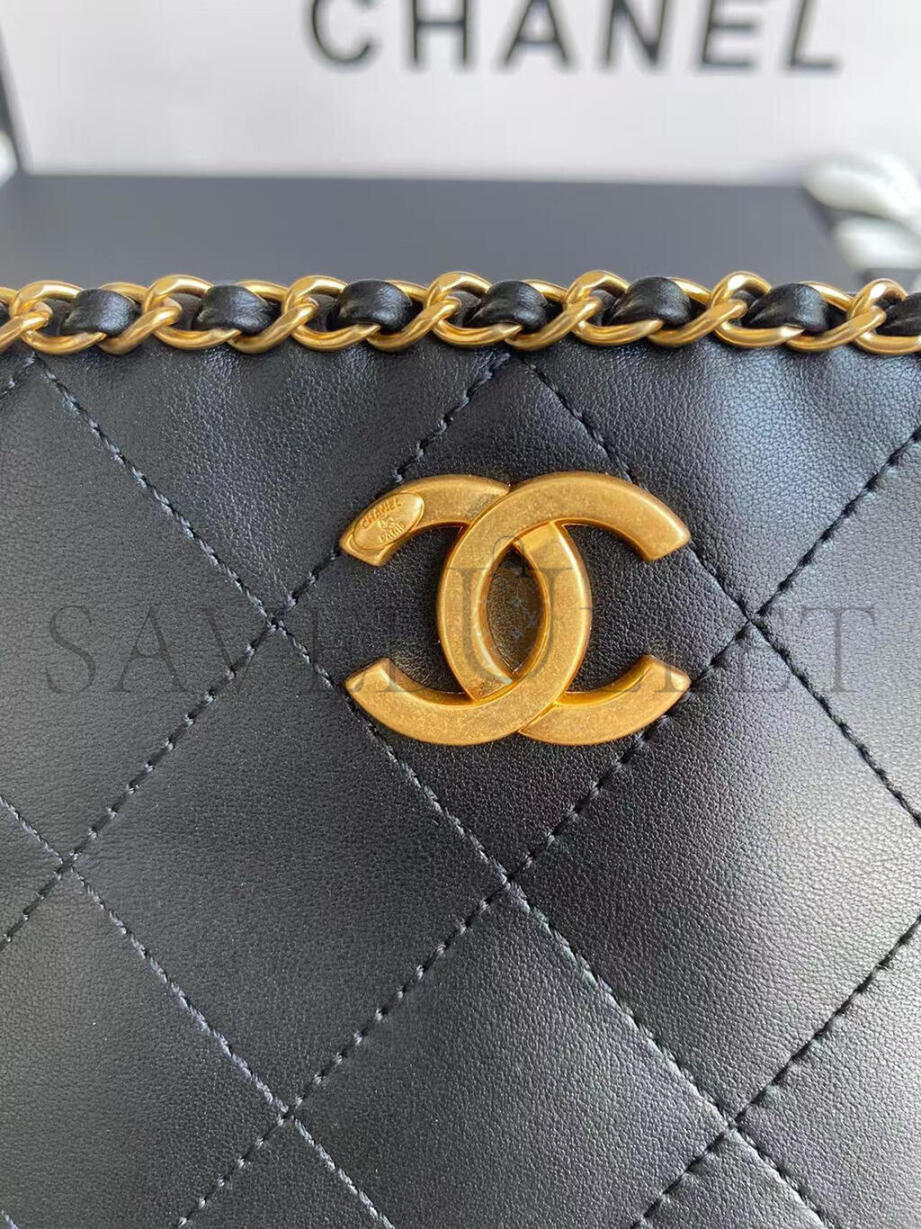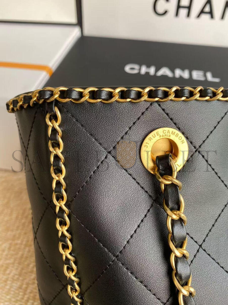 CHANEL BLACK MATELASSÉ CALFSKIN CHAINED SHOPPING TOTE AS2739 (36*30*11cm)
