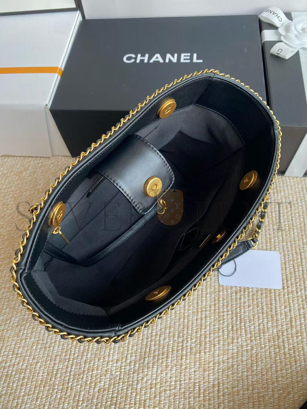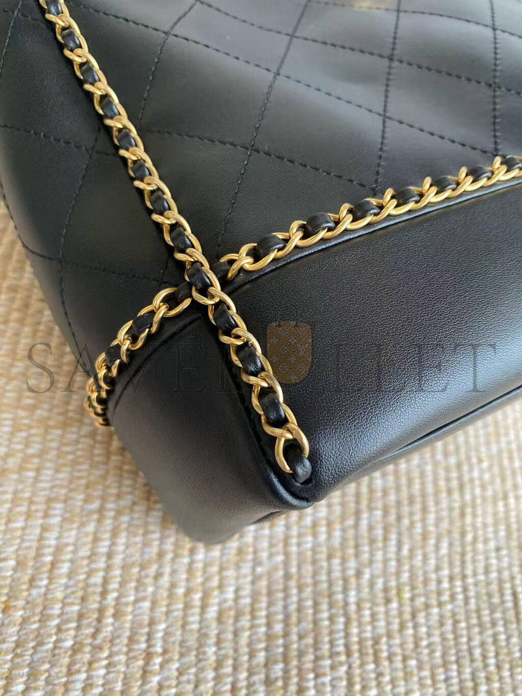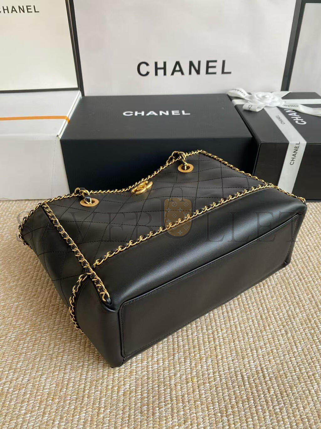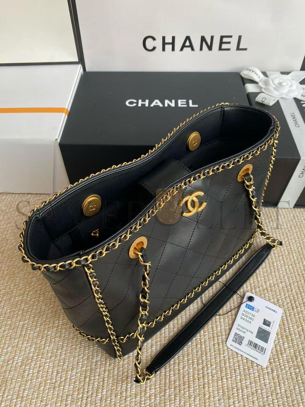 CHANEL BLACK MATELASSÉ CALFSKIN CHAINED SHOPPING TOTE AS2739 (36*30*11cm)