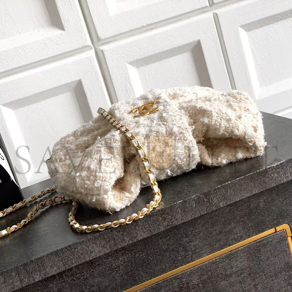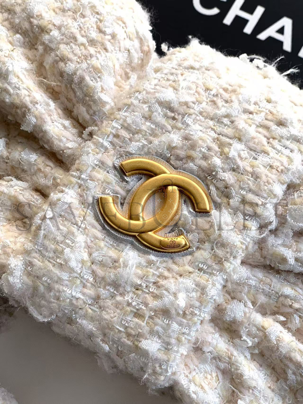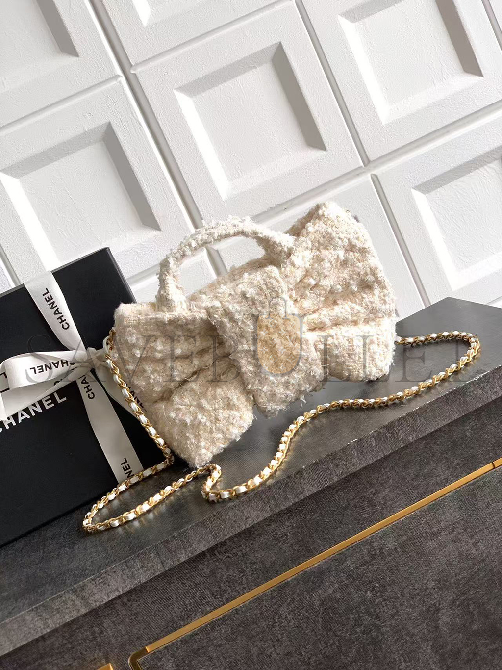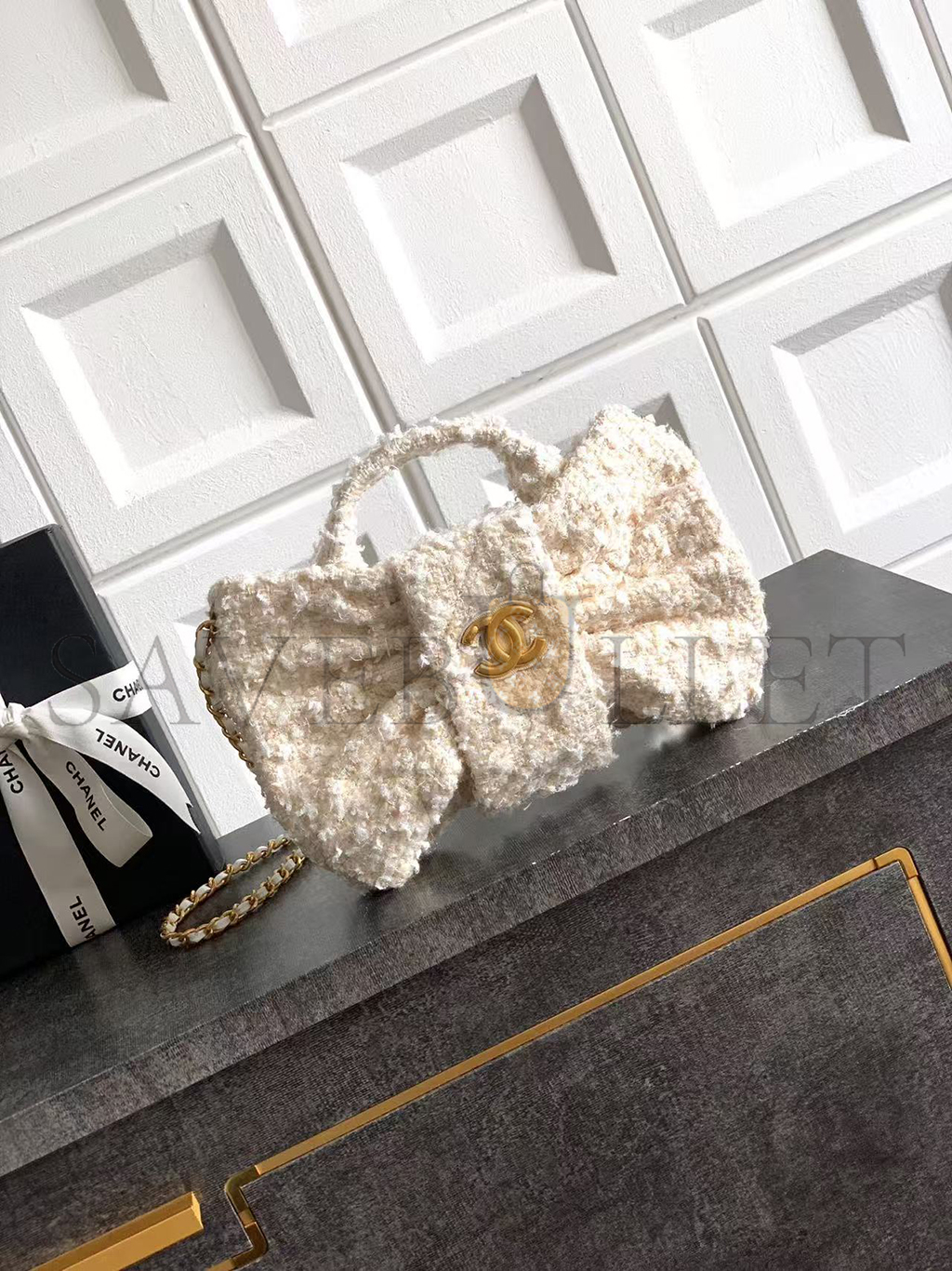 CHANEL MINI BOW BAG TWEED & GOLD METAL WHITE AS5849 (26*18*5cm)
