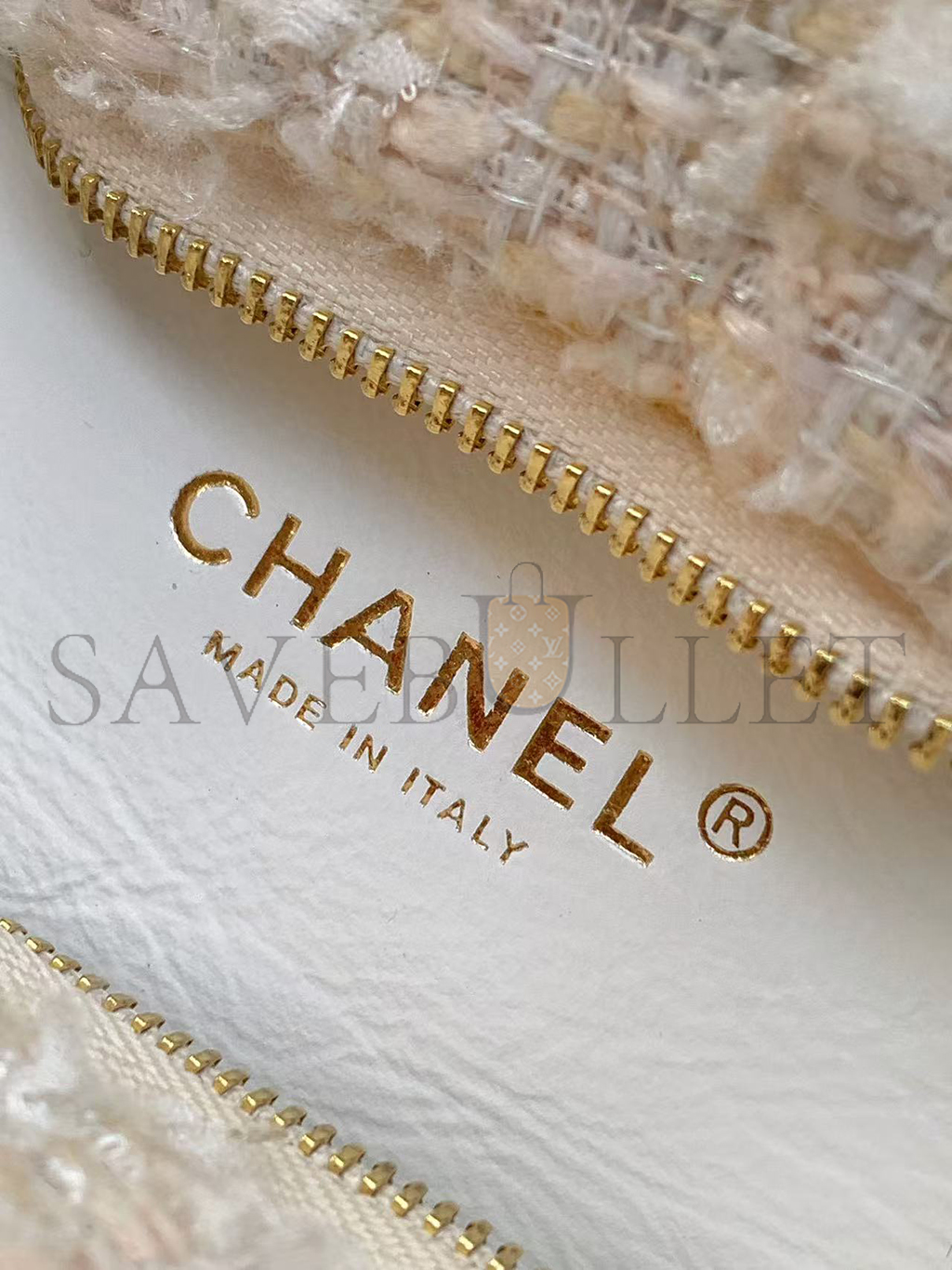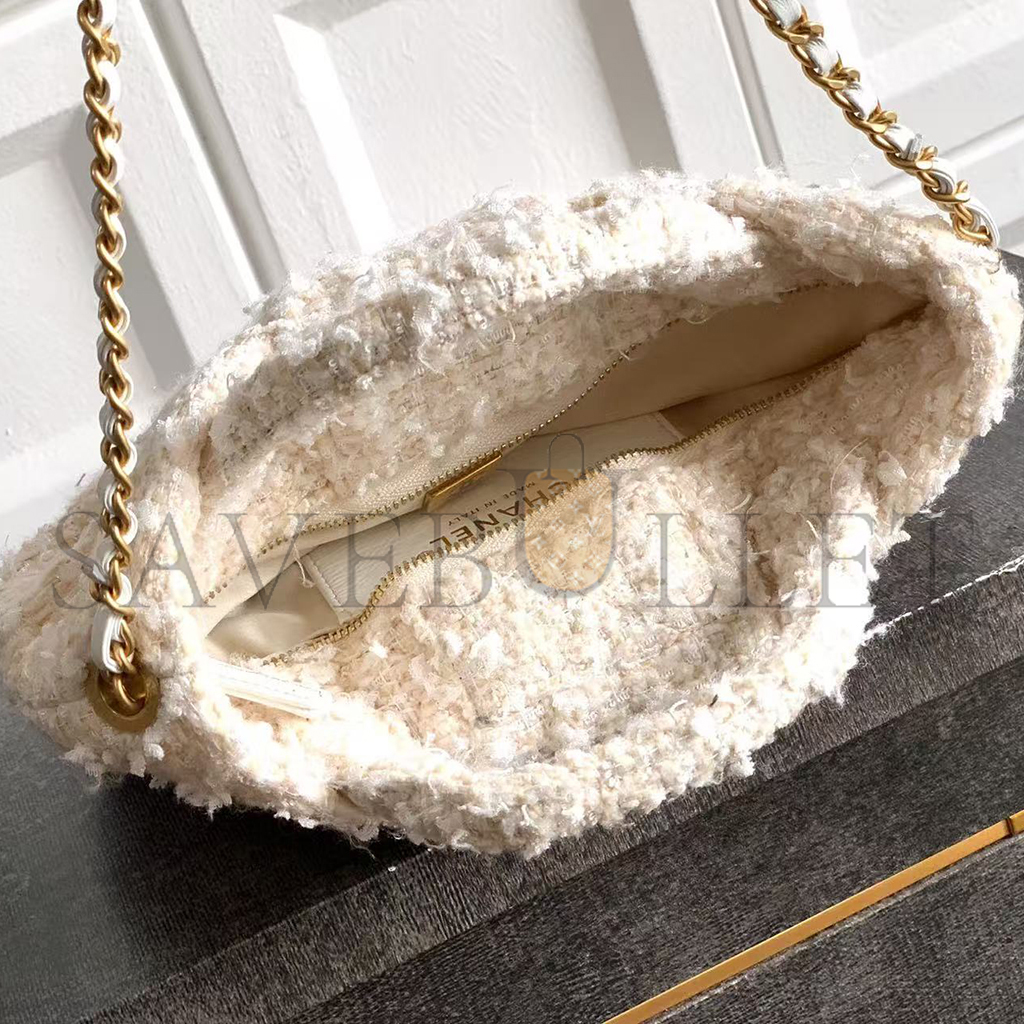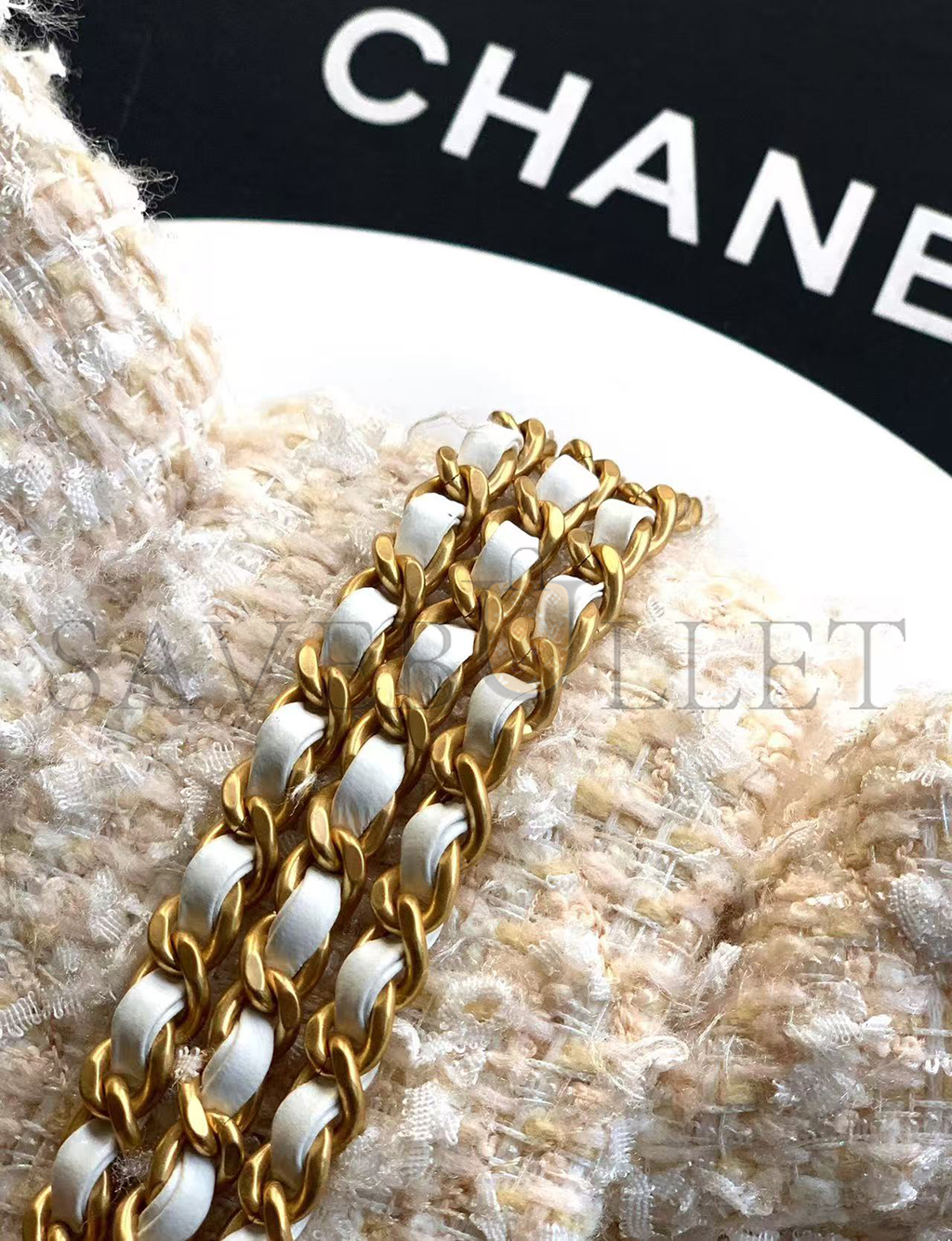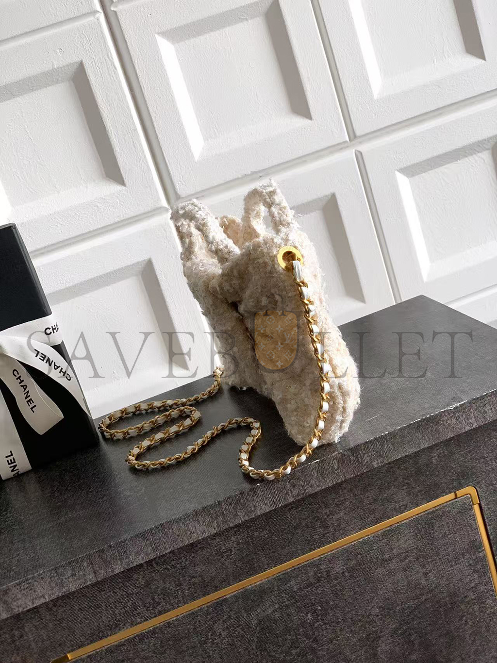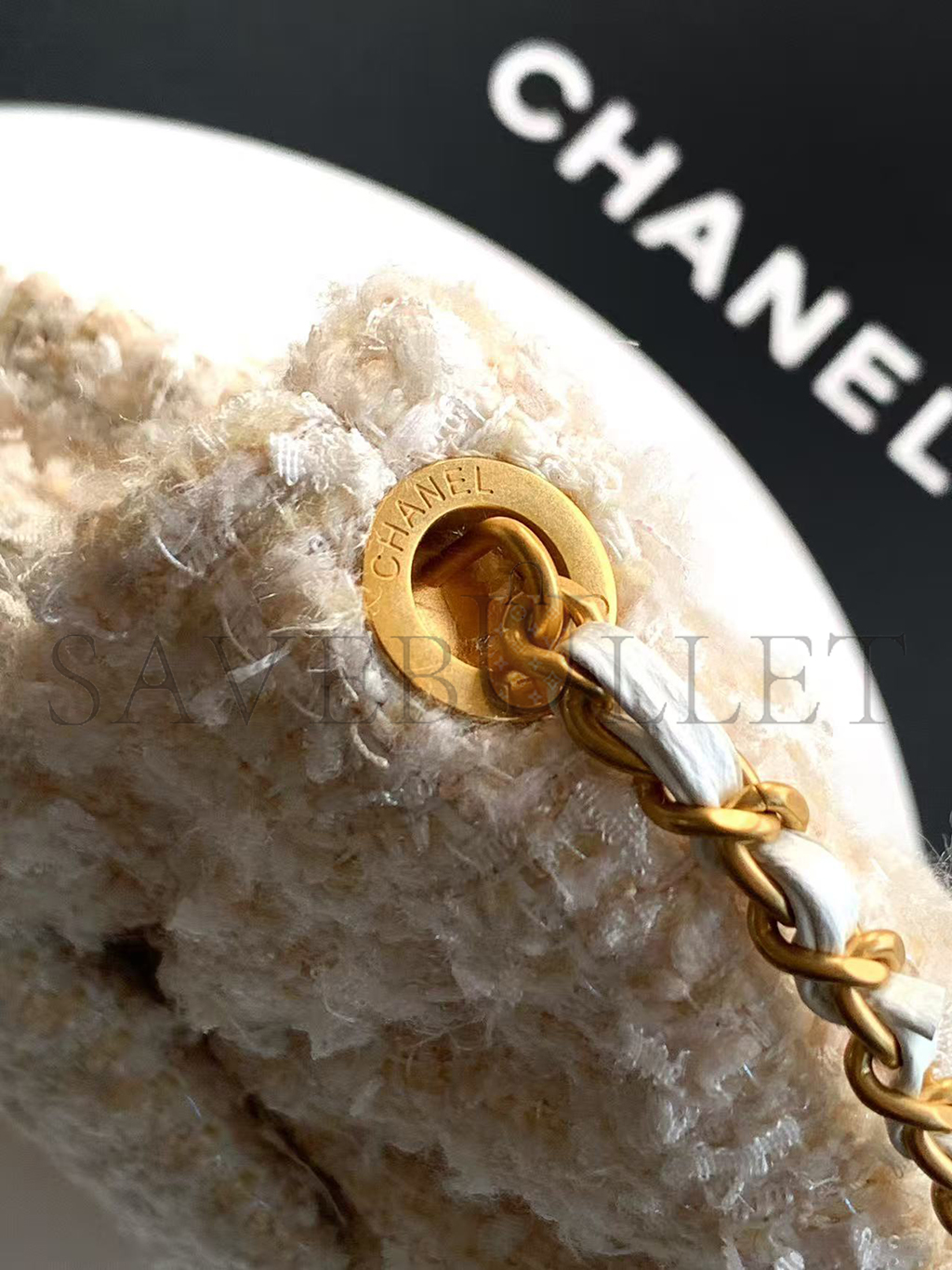 CHANEL MINI BOW BAG TWEED & GOLD METAL WHITE AS5849 (26*18*5cm)
