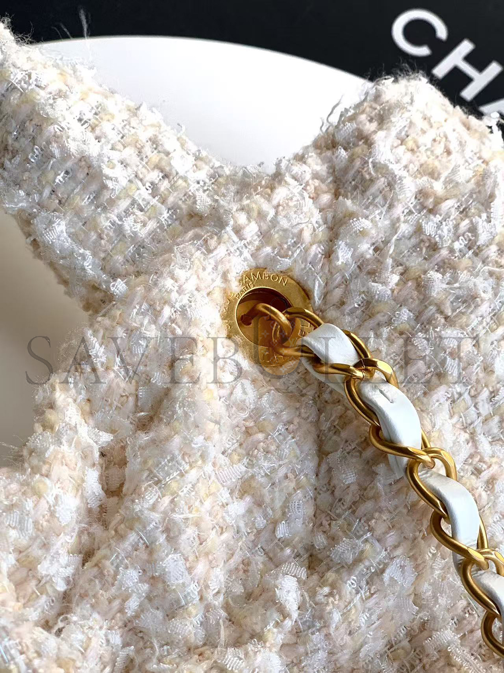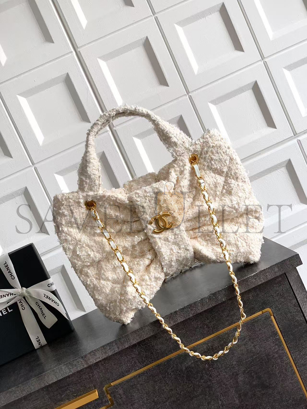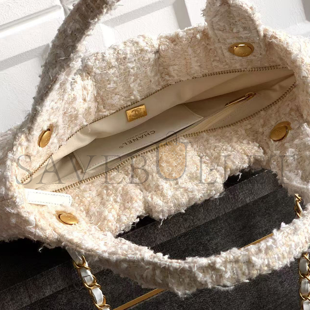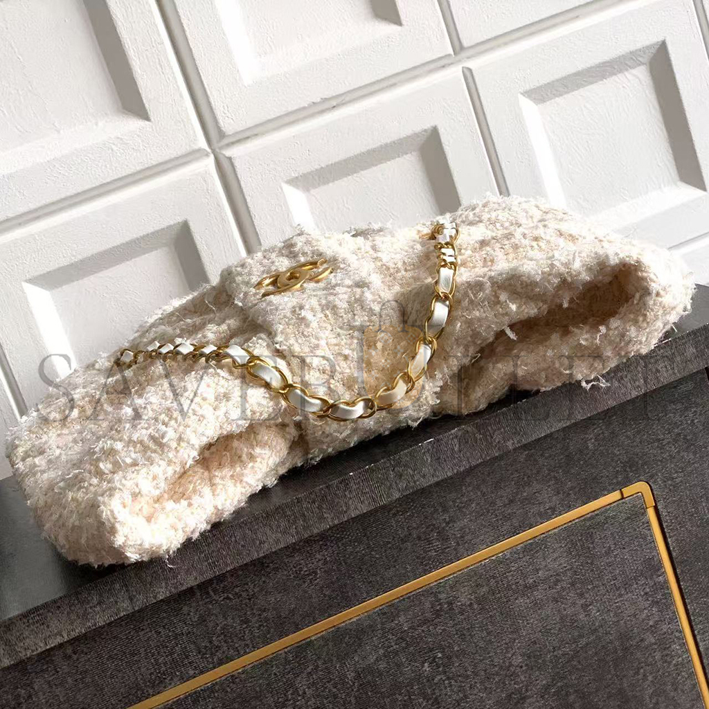 CHANEL BOW BAG TWEED & GOLD METAL WHITE (38*29*5cm)