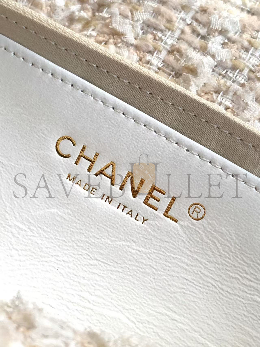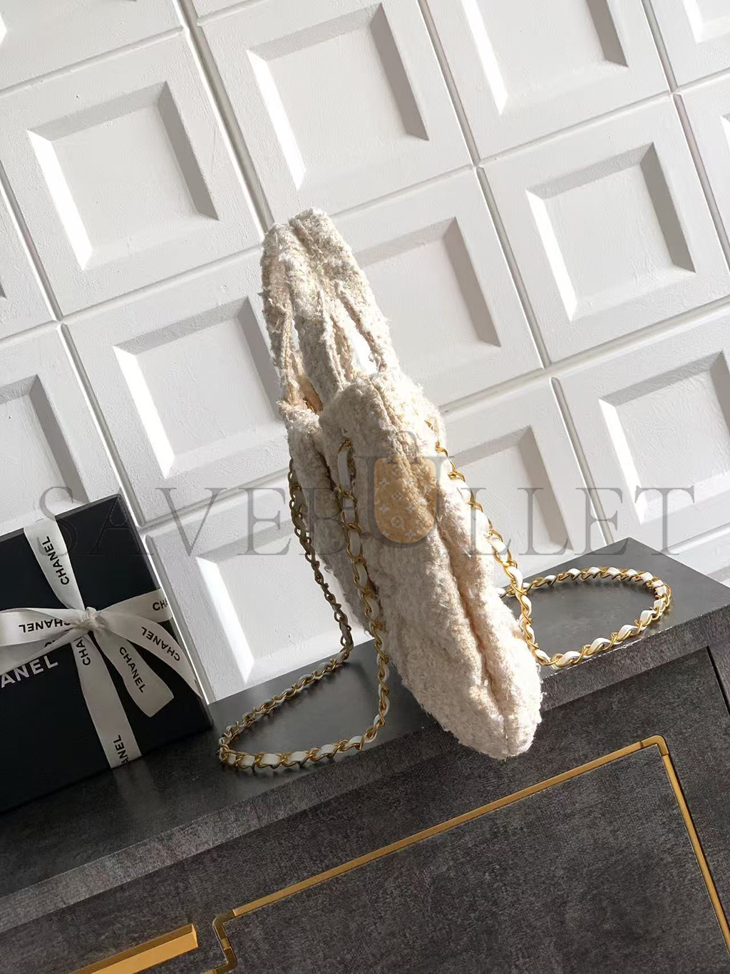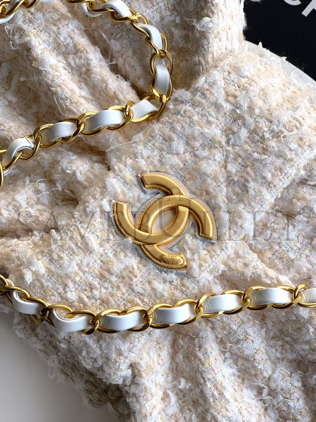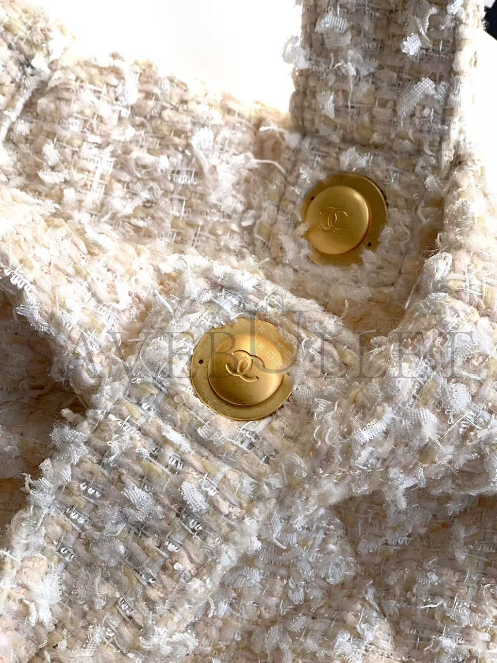 CHANEL BOW BAG TWEED & GOLD METAL WHITE (38*29*5cm)