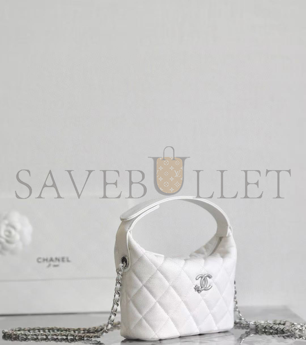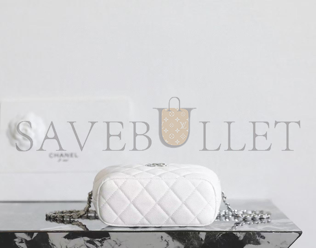CHANEL GRAINED CALFSKIN LUNCHBOX BAGSHOULDERHANDBAG REGULAR SIZE WOMEN'S WHITE (21.5*19*7.5cm)