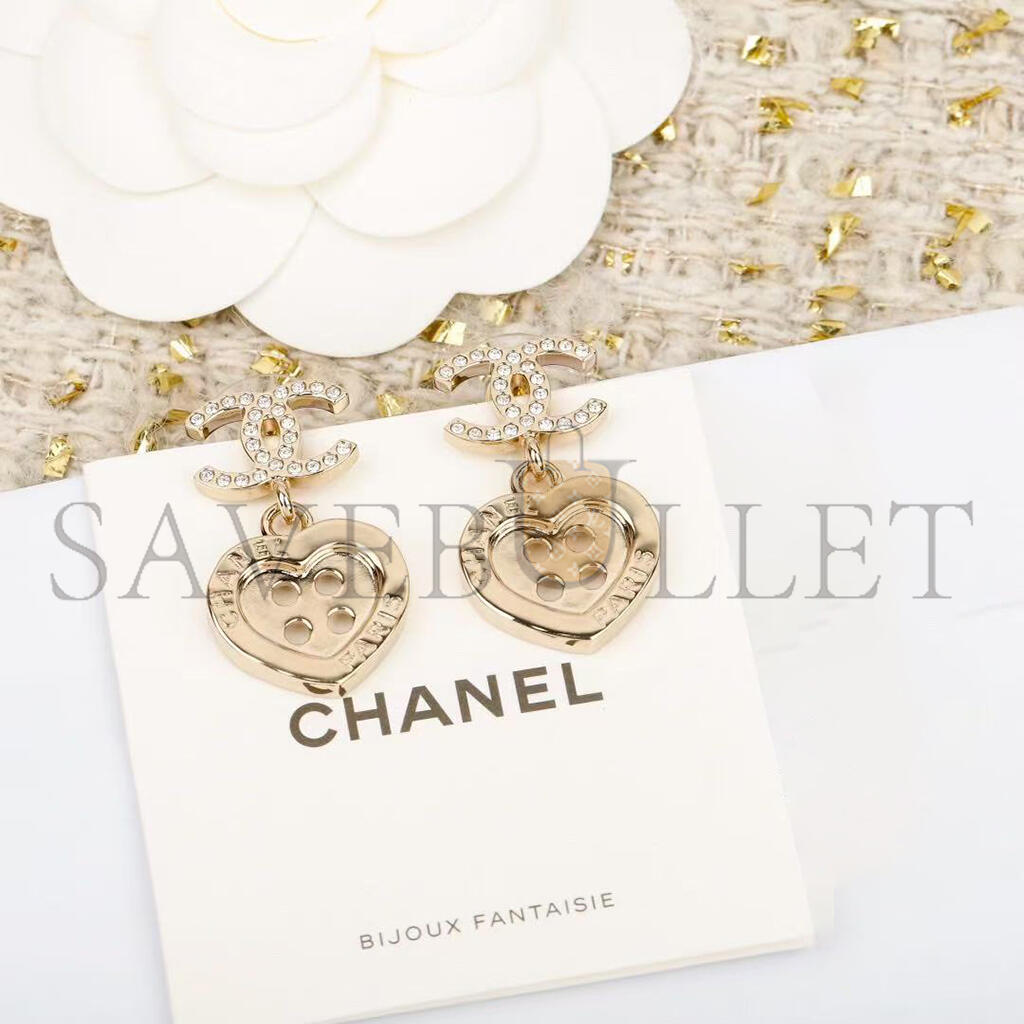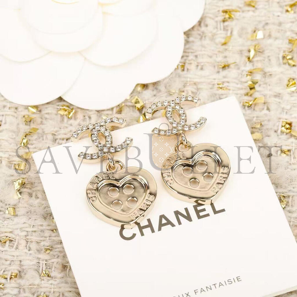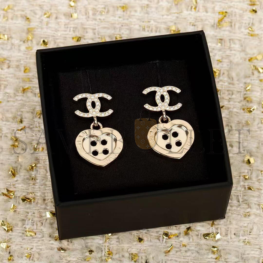 CHANEL HEART-SHAPED BUTTON PENDANT EARRINGS