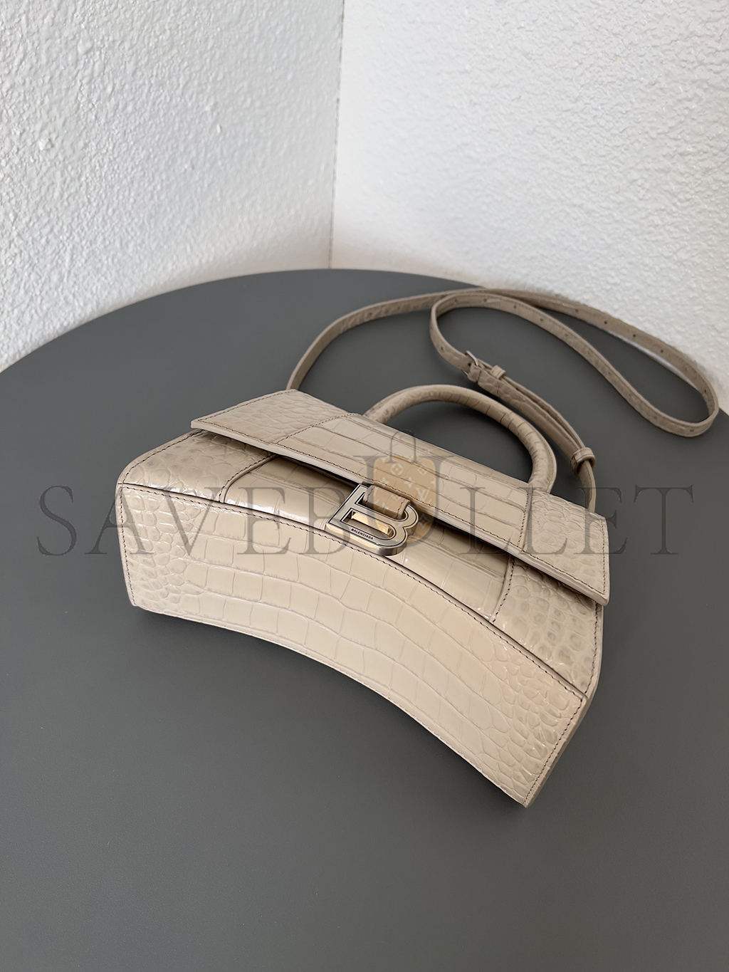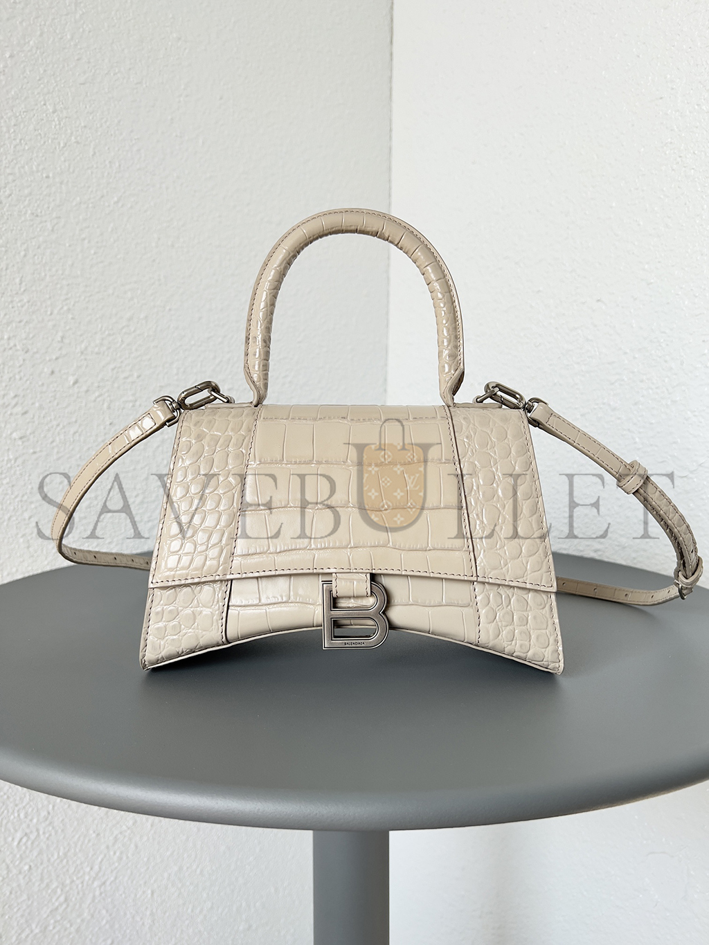 BALENCIAGA WOMEN'S HOURGLASS HANDBAG SMALL IN BEIGE GRAY 5935461LR7Y6310 (22.9*15*9.9cm)