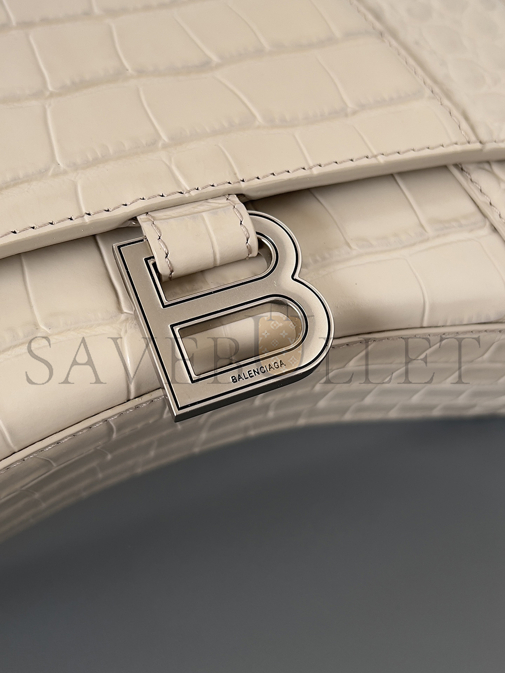 BALENCIAGA GREY HOURGLASS S CROCODILE-EFFECT LEATHER BAG MATCHESFASHION US (22.5*14*10cm)