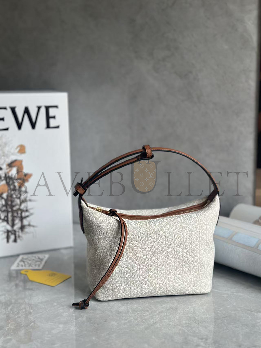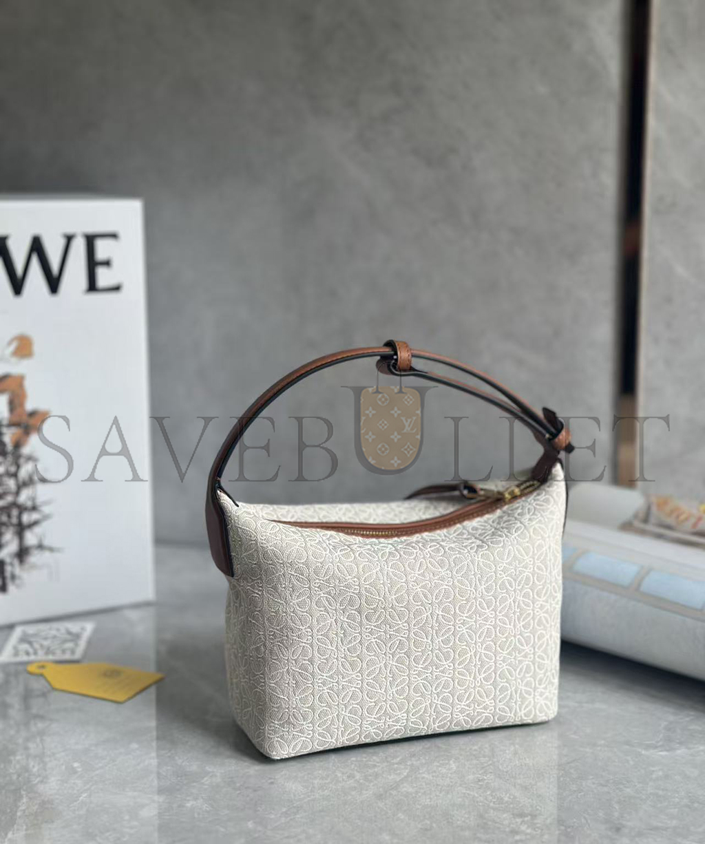 LOEWE CUBI ANAGRAM SMALL CANVAS AND LEATHER SHOULDER BAG 230717 (20.5*17*12.5cm)