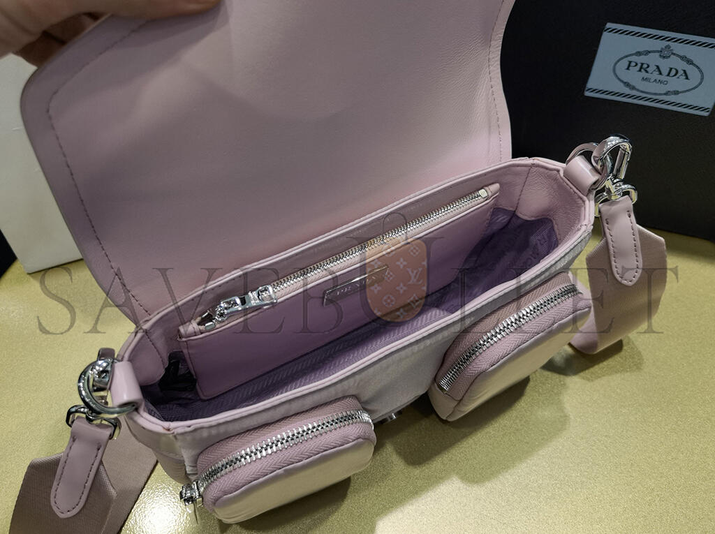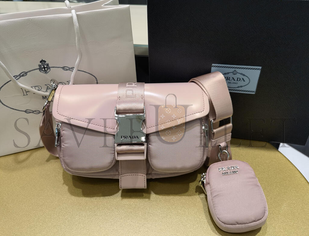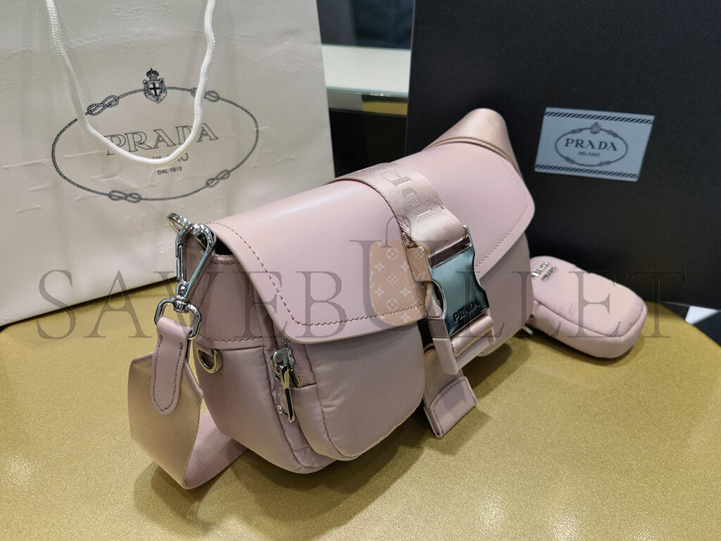 PRADA NYLON AND GLOSSED LEATHER SHOULDER BAG 1BD295 (23*12.5*5.5cm)
