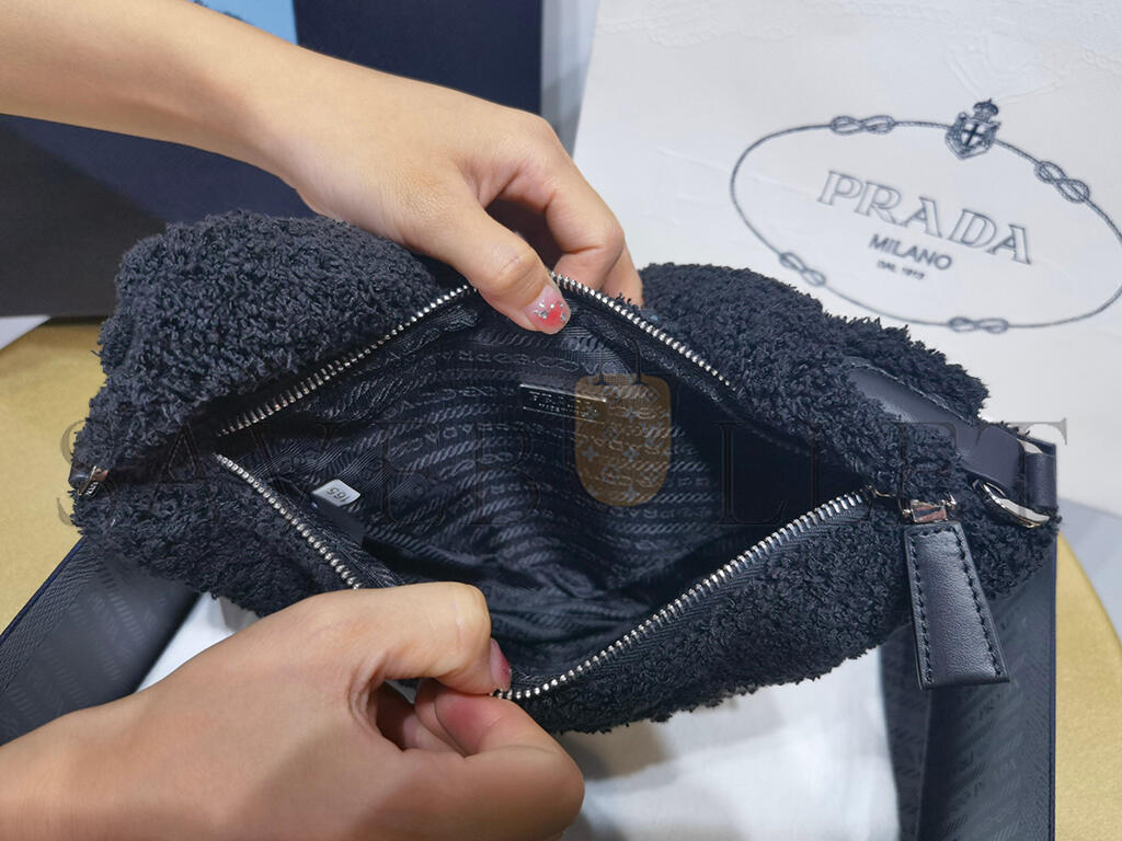 PRADA FABRIC TRIANGLE BAG HANDBAGS WOMEN'S BLACK 1NE043 (26*14*5cm)