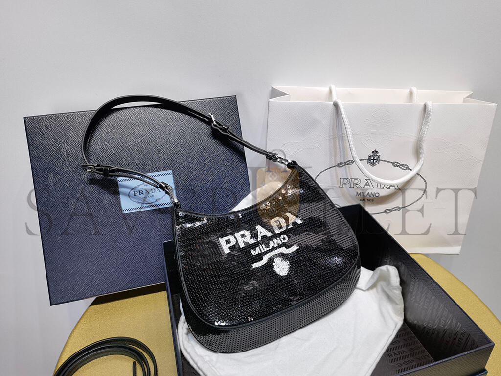 PRADA CLEO SEQUIN-EMBELLISHED LEATHER SHOULDER BAG 1BC169 (22*18.5*4.5cm)