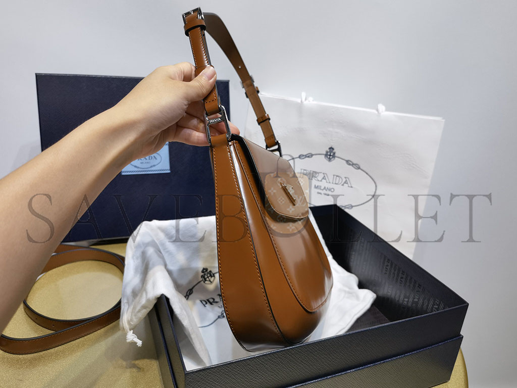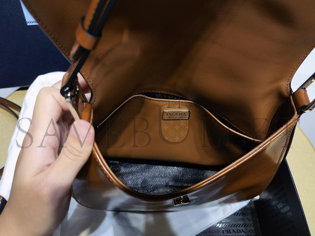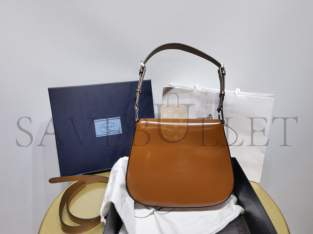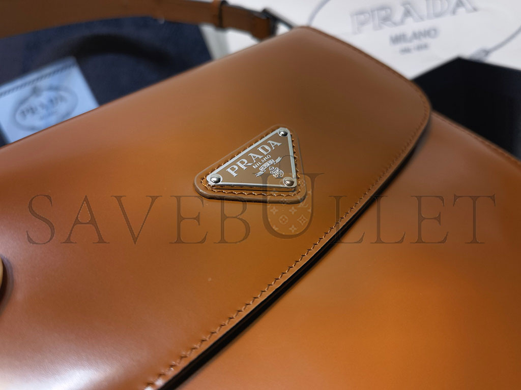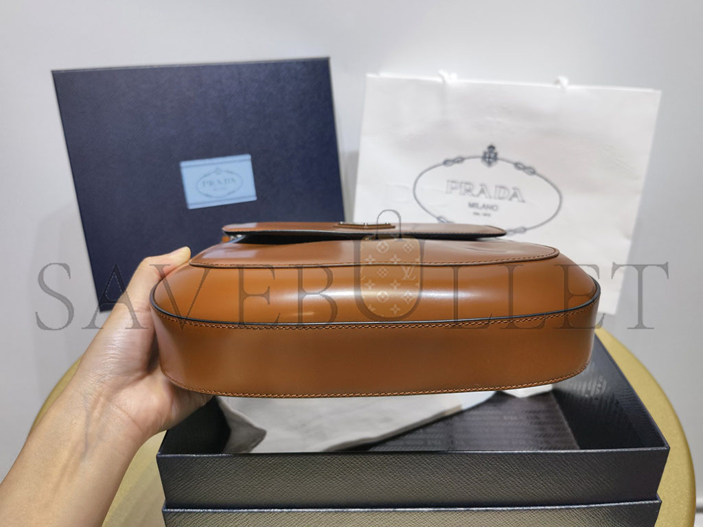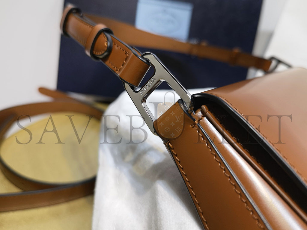 PRADA CLEO BRUSHED LEATHER SHOULDER BAG WITH FLAP IN TOBACCO 1BD303 (24*19*6cm)