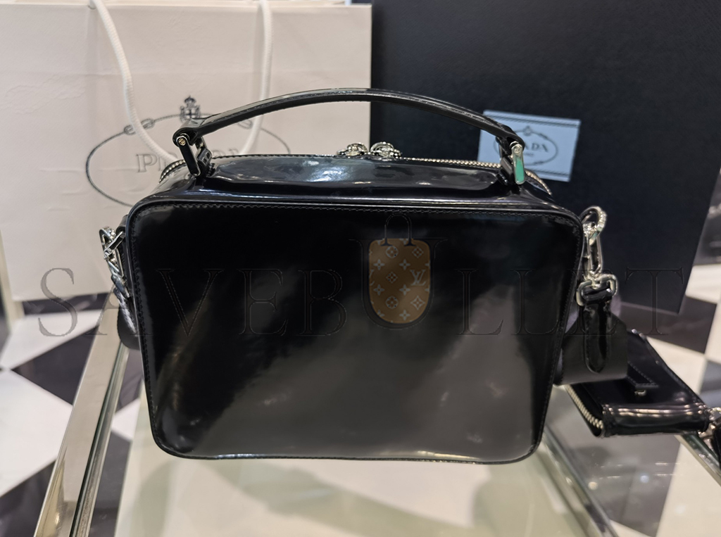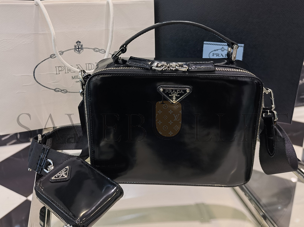 PRADA BRIQUE SAFFIANO LEATHER HANDBAG IN BLACK 2VH069 (22*16*6cm)