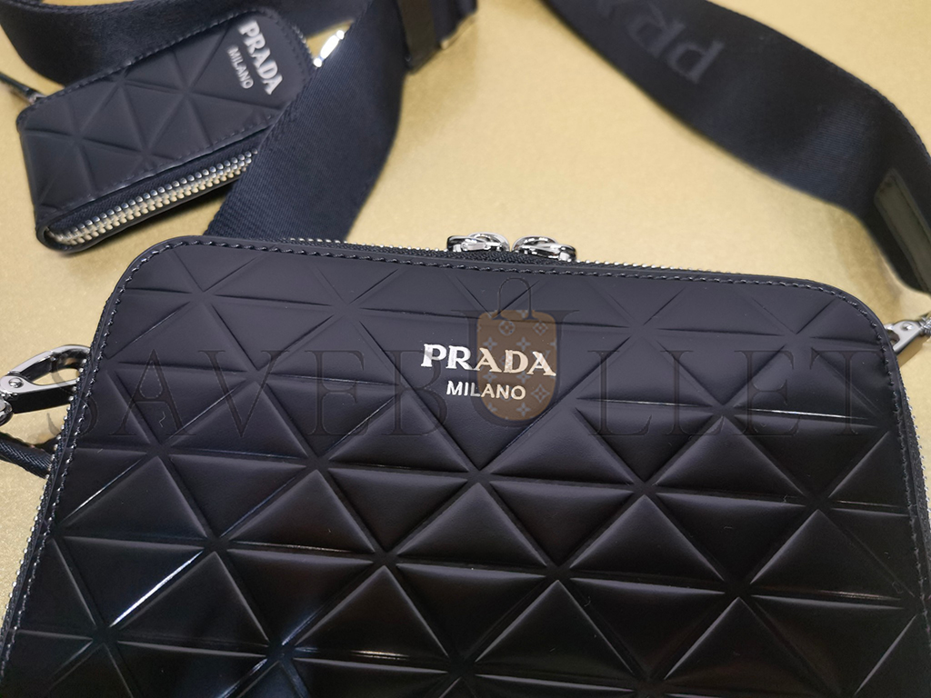 PRADA BRIQUE LOGO-PRINT LEATHER SHOULDER BAG 2VH070 (19*12*5.5cm)