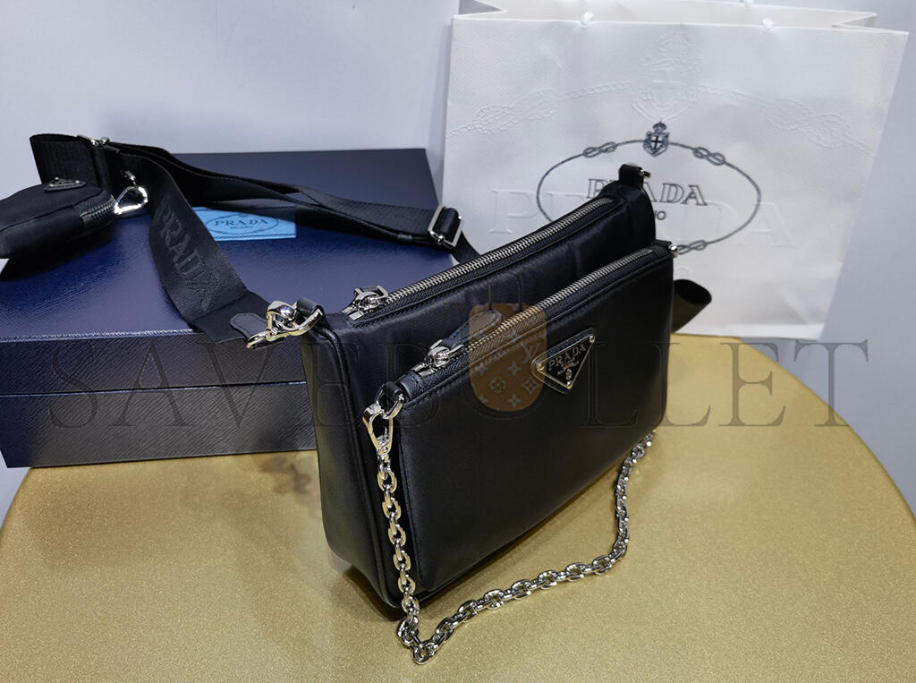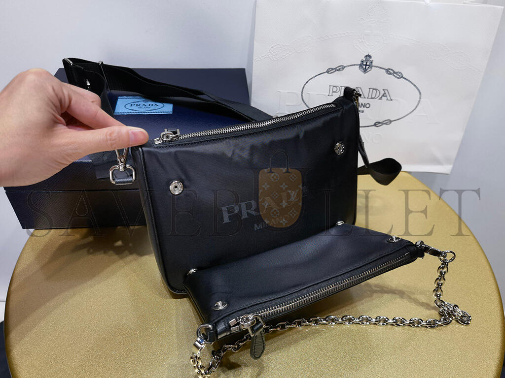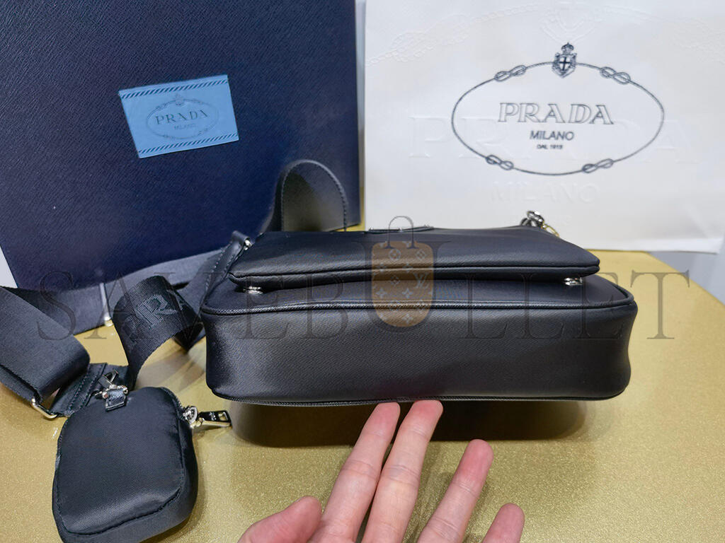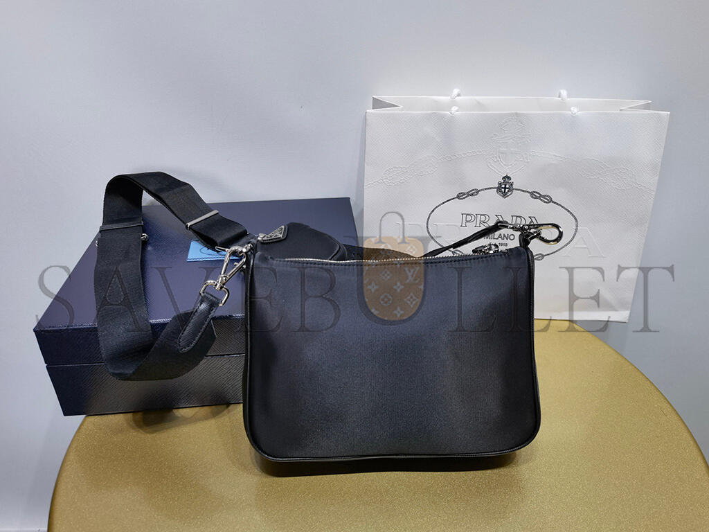 PRADA BLACK RE-NYLON SAFFIANO DOUBLE POUCH SHOULDER BAG 1BH168 (22*16*4.5cm)