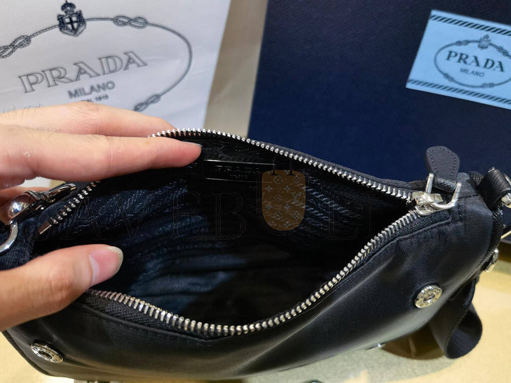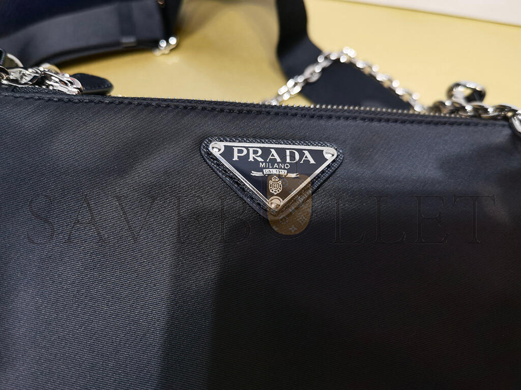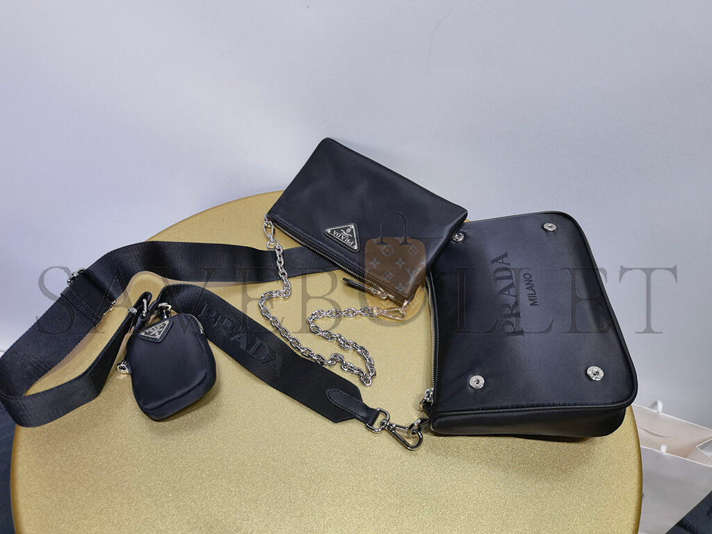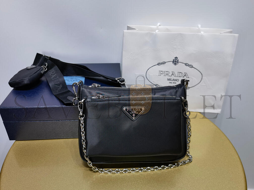 PRADA BLACK RE-NYLON SAFFIANO DOUBLE POUCH SHOULDER BAG 1BH168 (22*16*4.5cm)