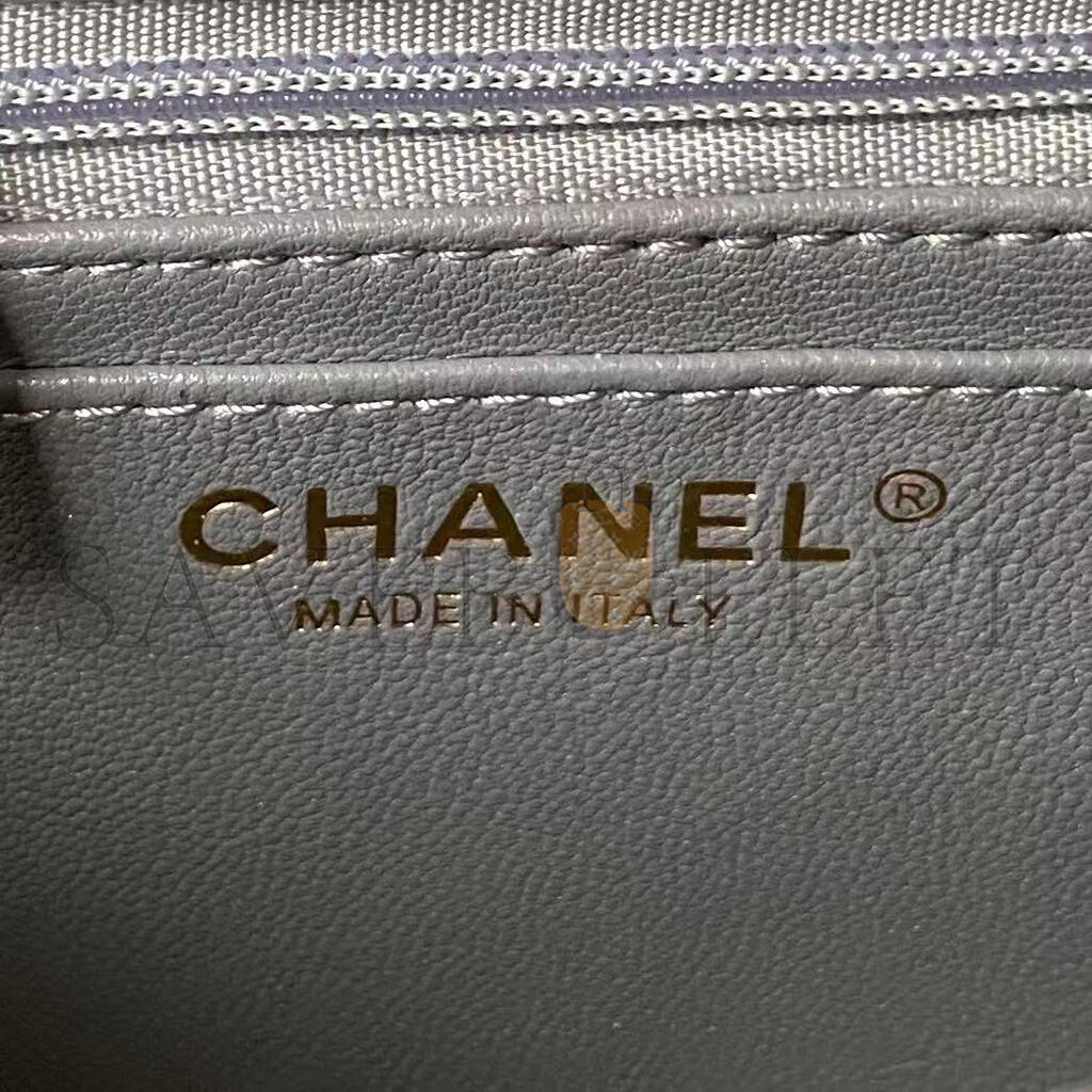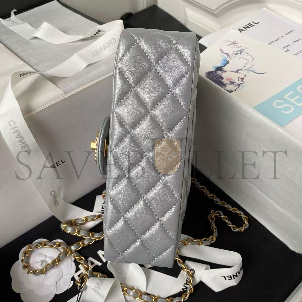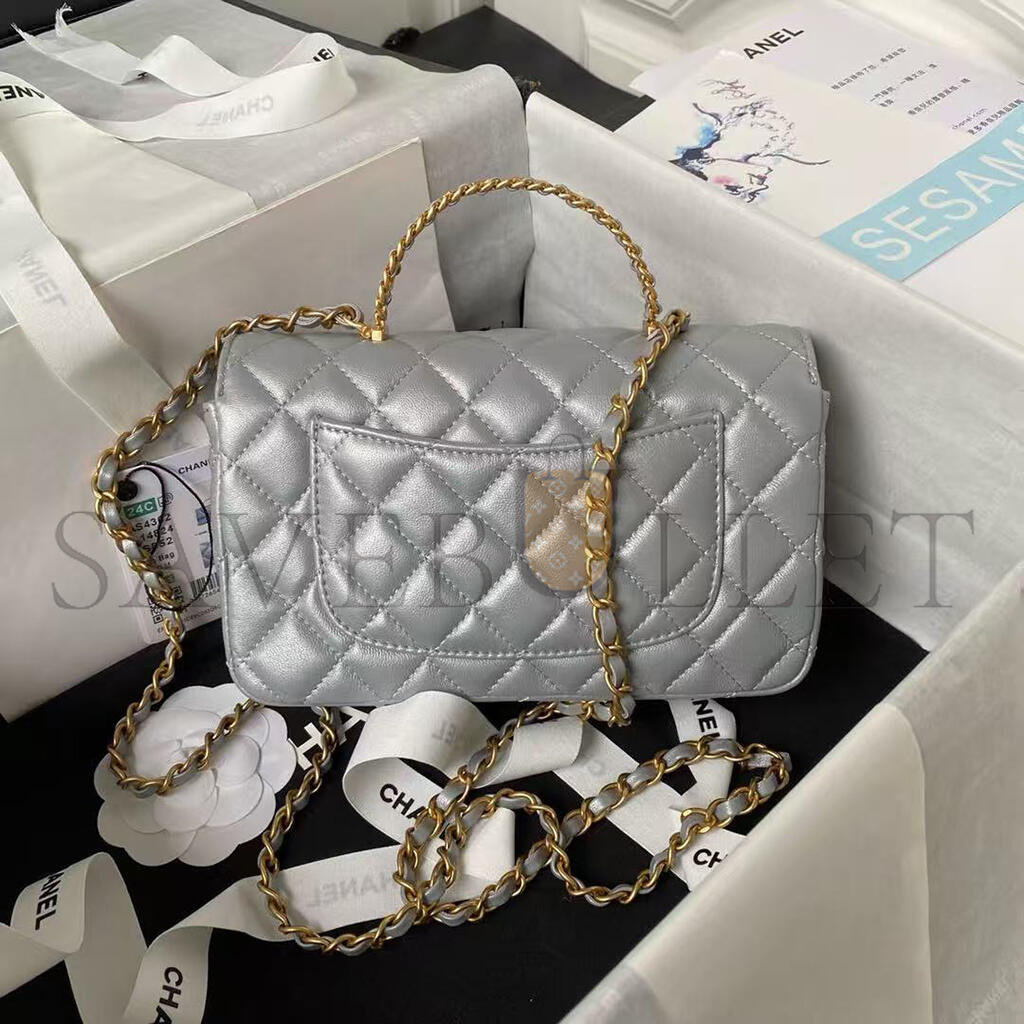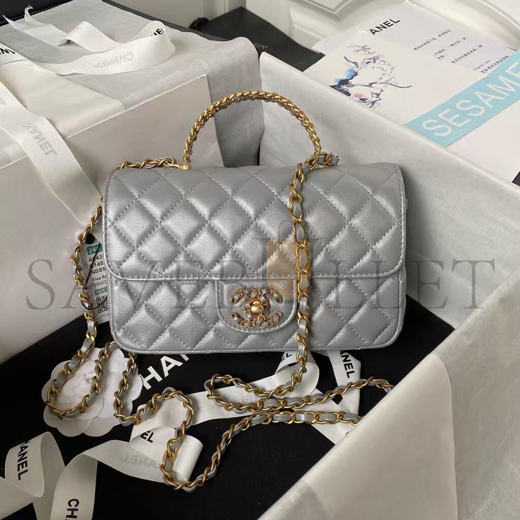 CHANEL SILVER QUILTED LAMBSKIN LEATHER STRASS ON TOP MINI FLAP BAG AS4362 (20*13*6cm)