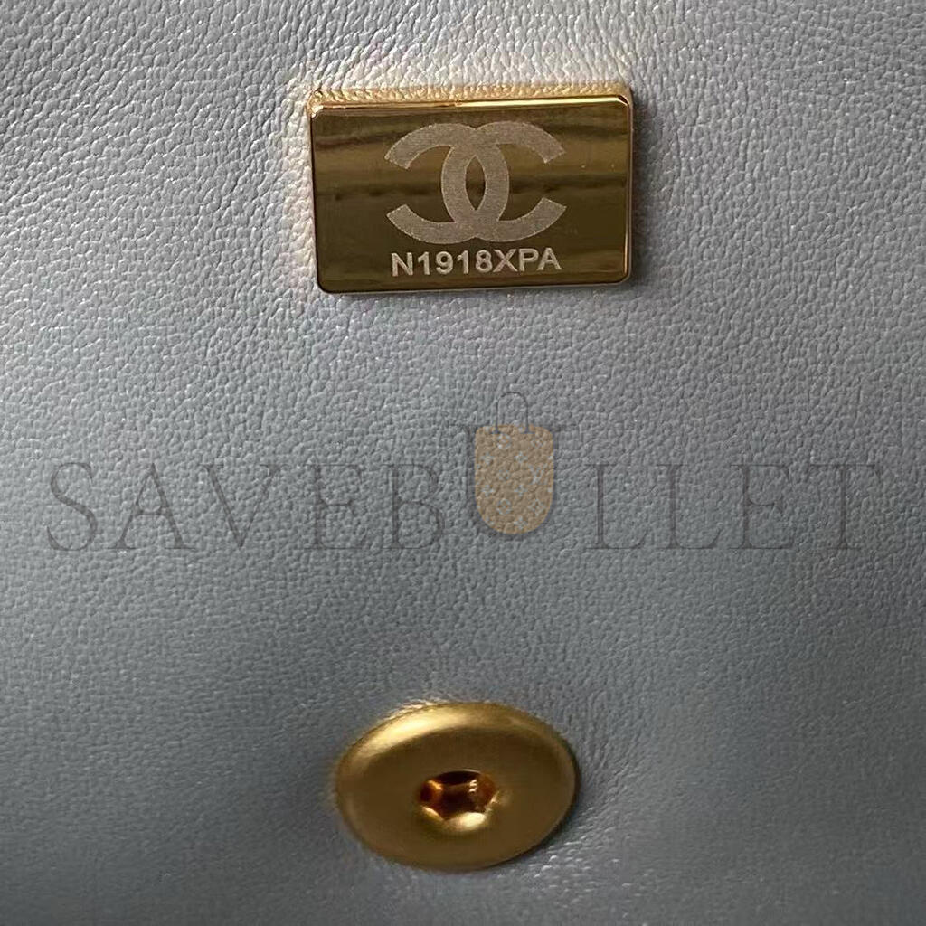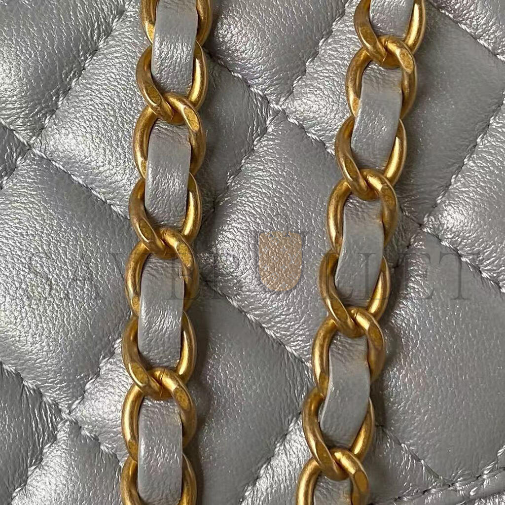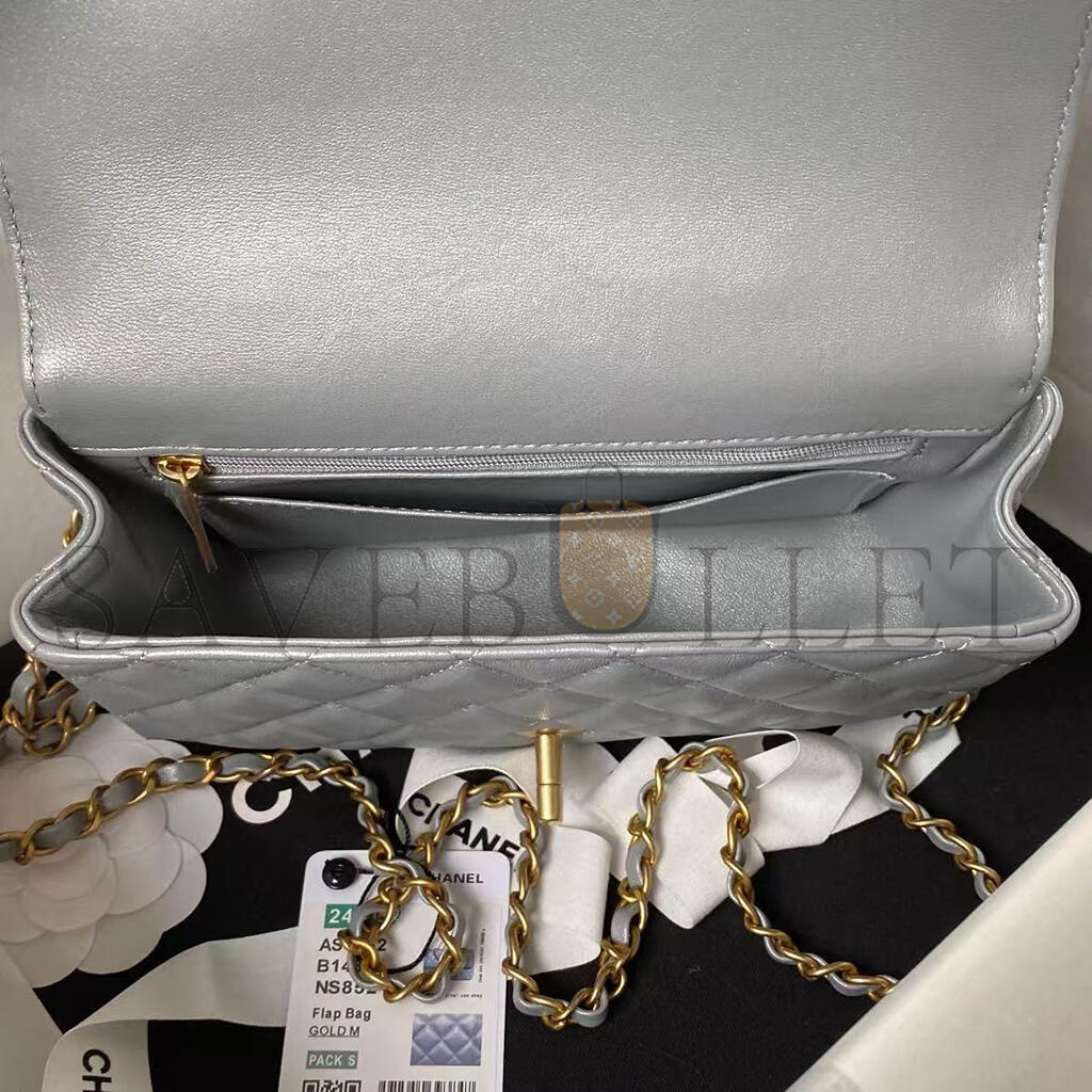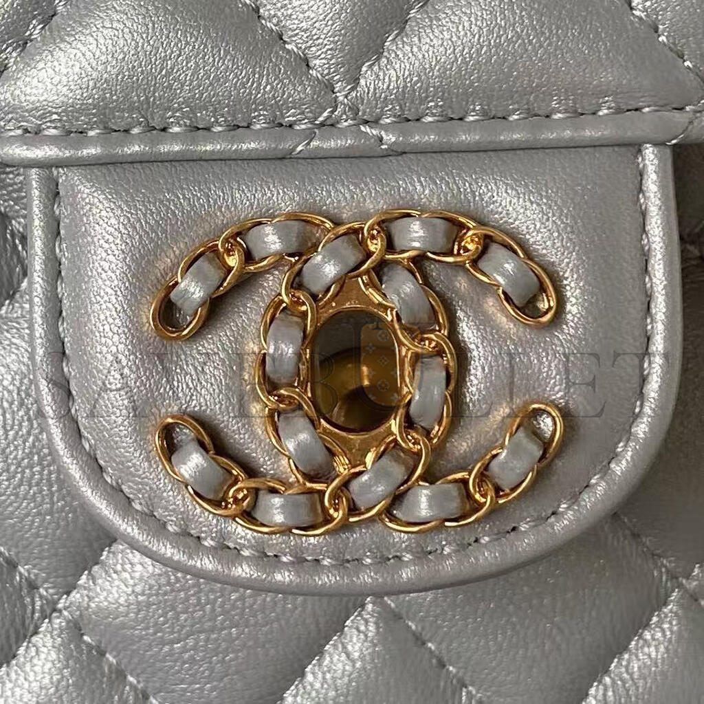 CHANEL SILVER QUILTED LAMBSKIN LEATHER STRASS ON TOP MINI FLAP BAG AS4362 (20*13*6cm)