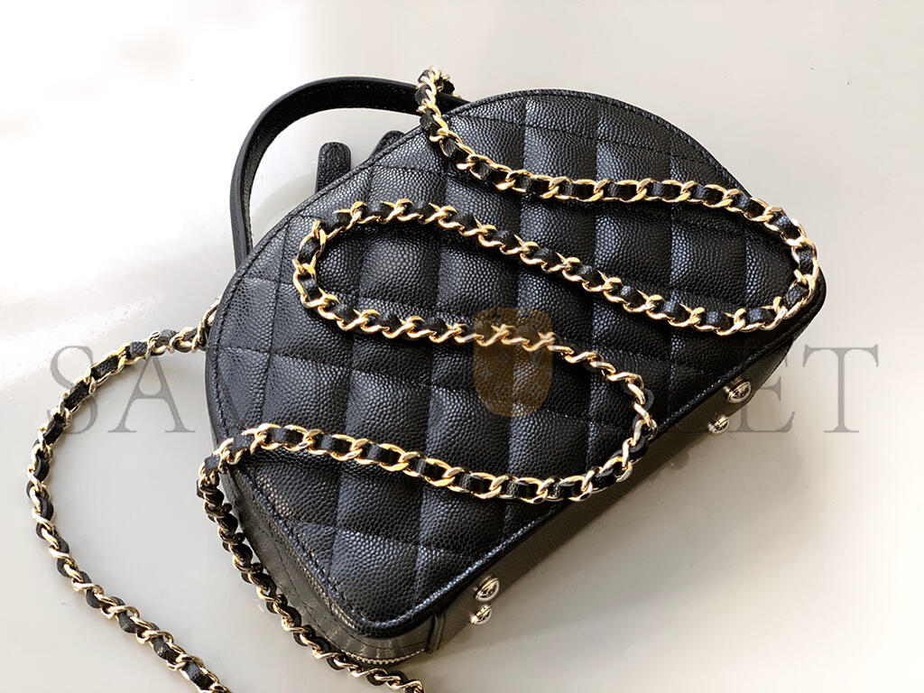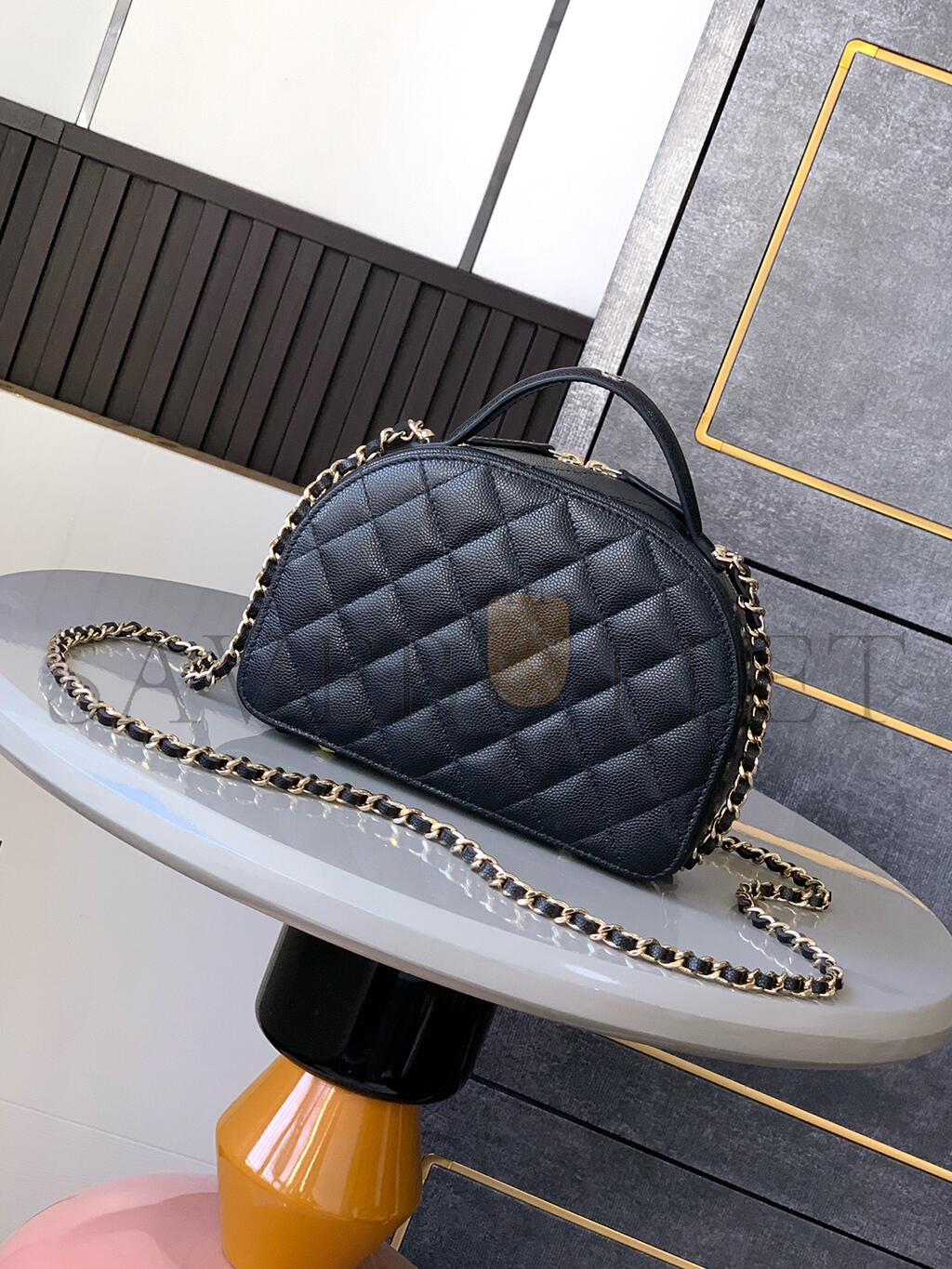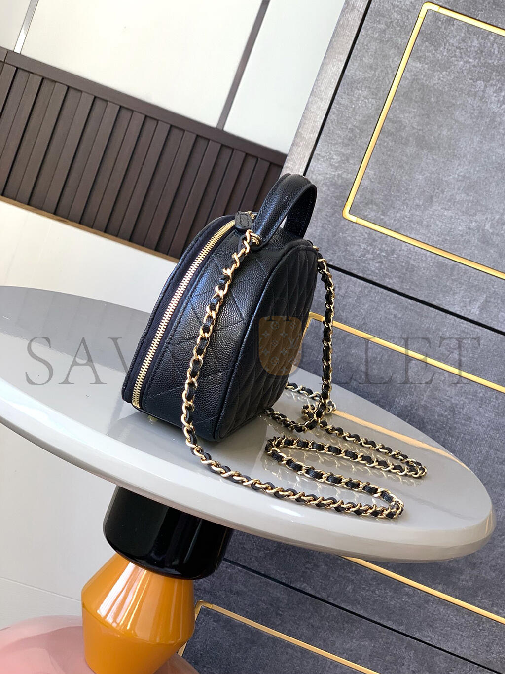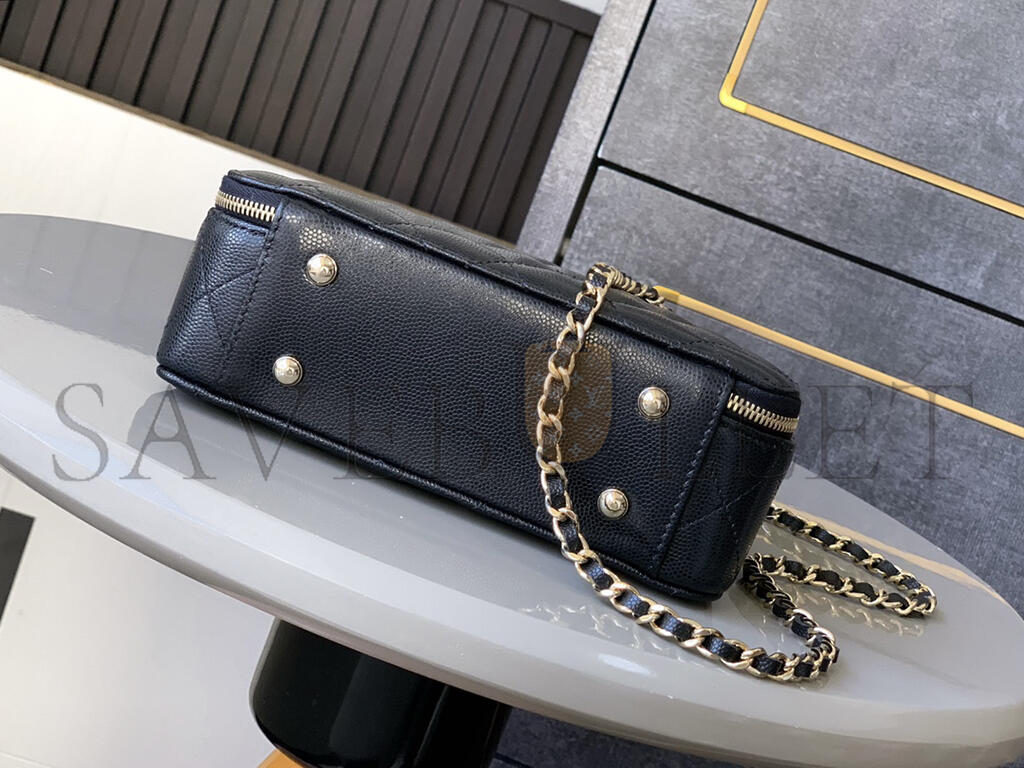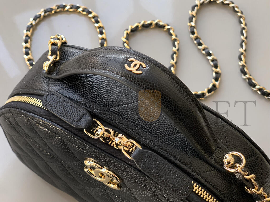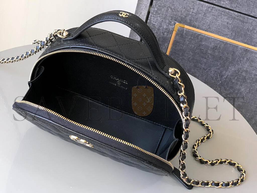 CHANEL CAVIAR QUILTED TOP HANDLE VANITY CASE BLACK (18.5*13*7cm)