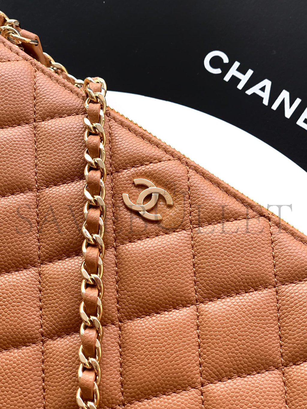 CHANEL GRAINED CALFSKIN 25B CLUTCH WITH CHAIN BAG IN CARAMEL COLOR (21*12*5.5.cm)