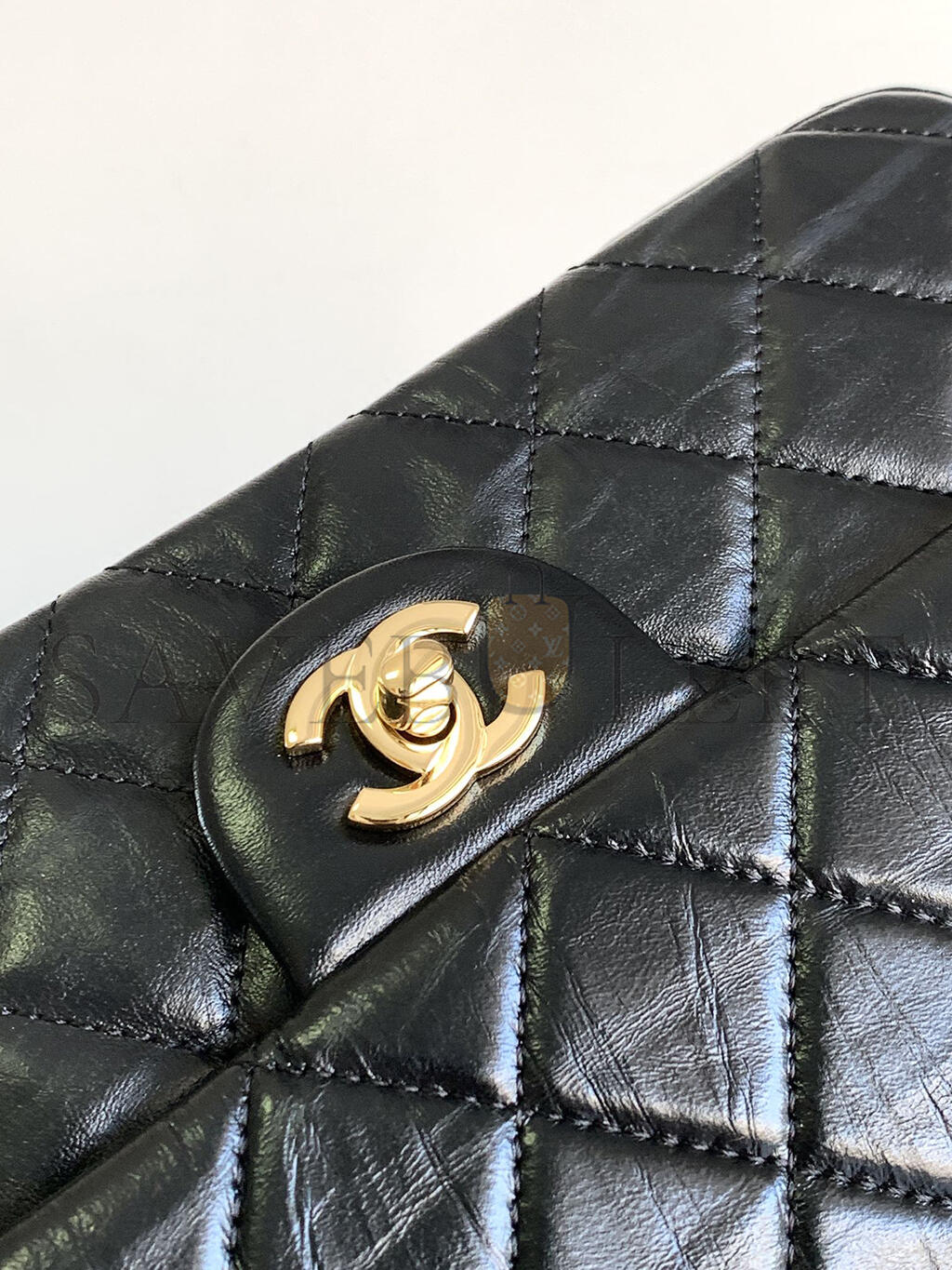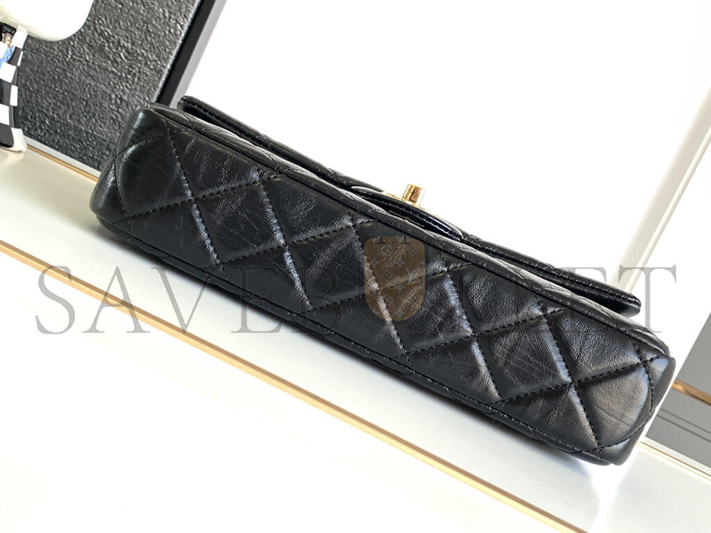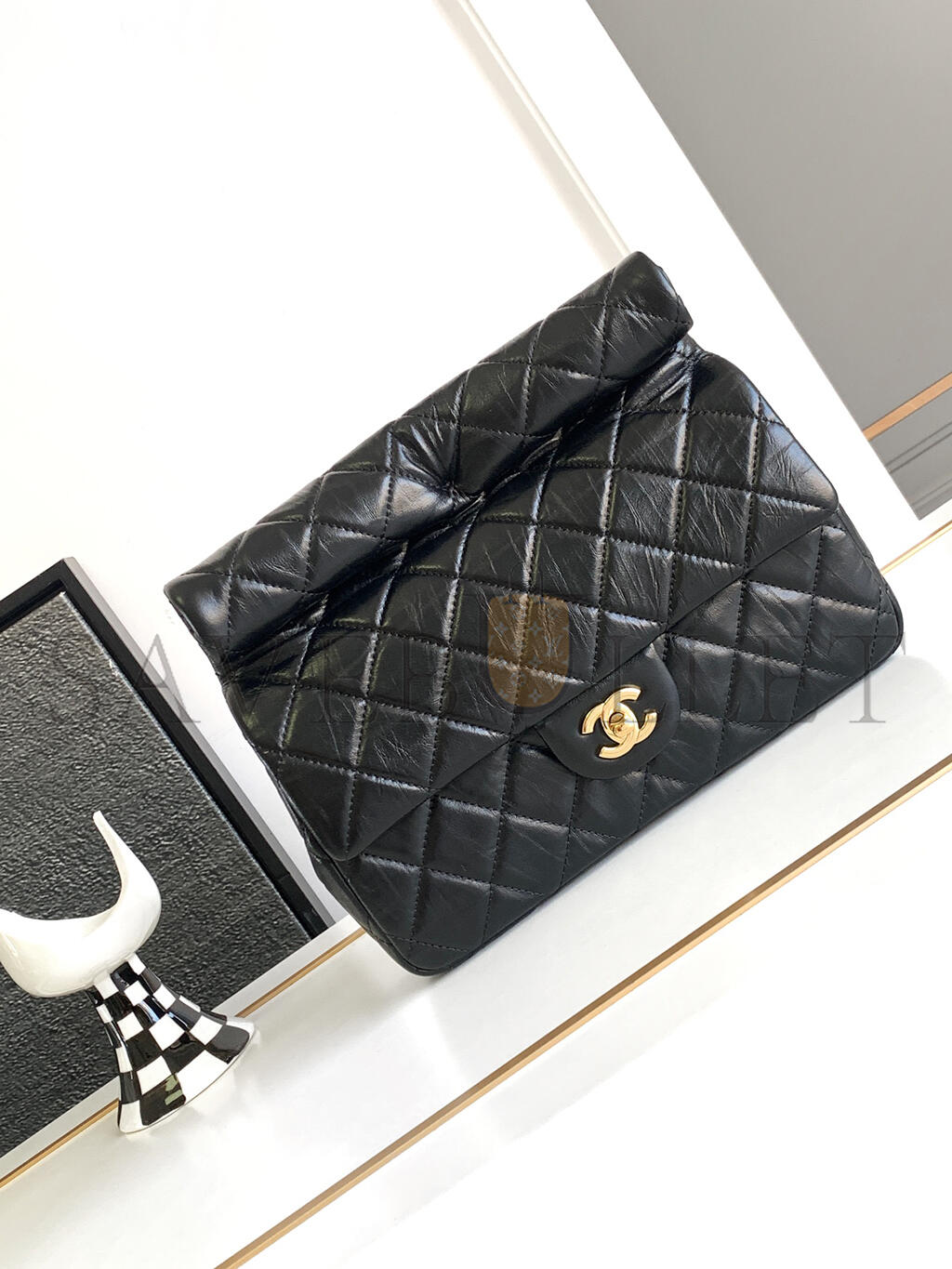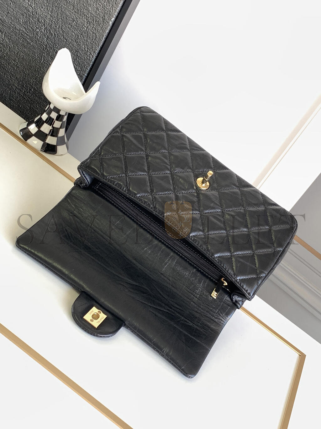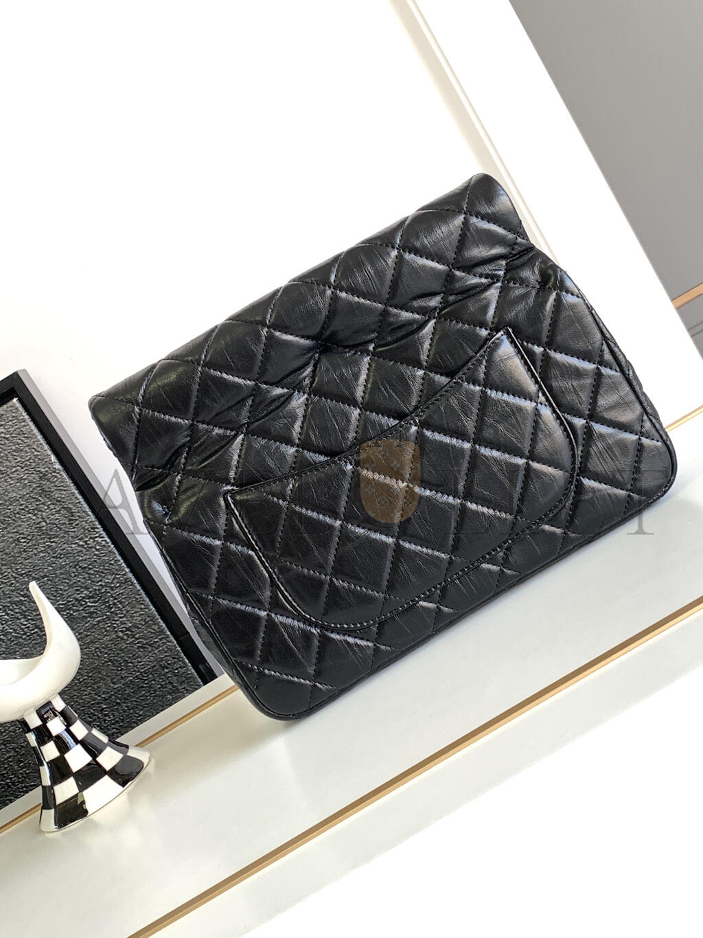 CHANEL CRUMPLED CALFSKIN QUILTED CLUTCH BLACK AS4199 (24.5*18.5*4.5cm)