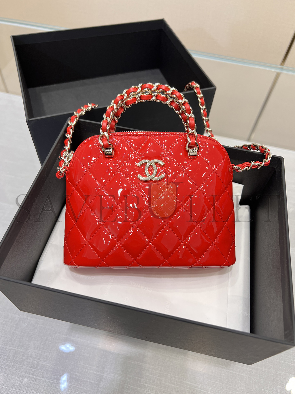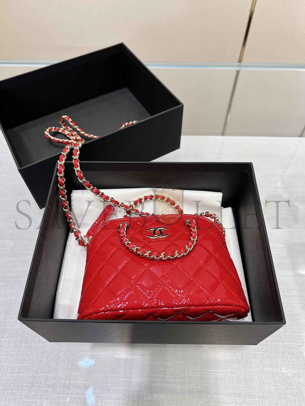 CHANEL 23S PATENT CALFSKIN QUILTED CLUTCH WITH CHAIN AP3354 (16*11*5.5cm)