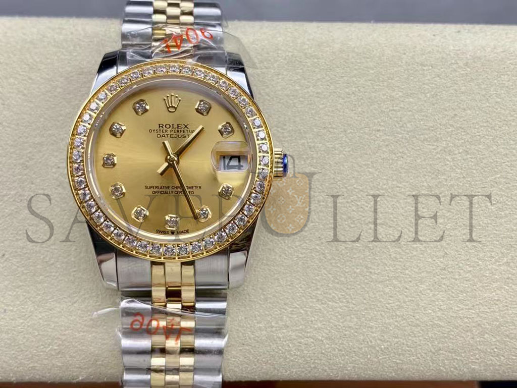 Oyster, 28 mm, Oystersteel, yellow gold and diamonds