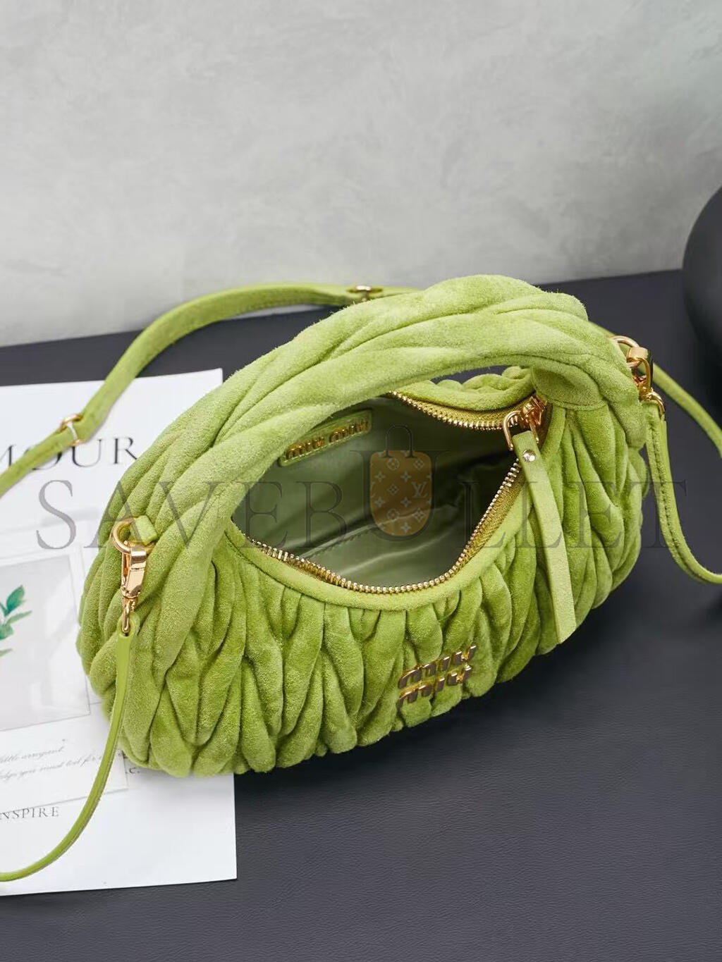 MIU MIU WANDER MATELASSÉ SUEDE BAG 5BC125 (20*17*6cm)