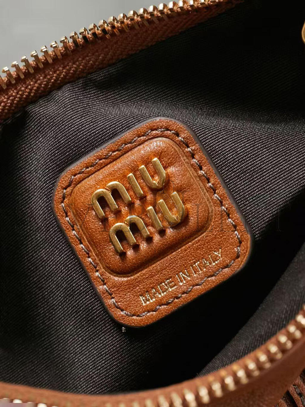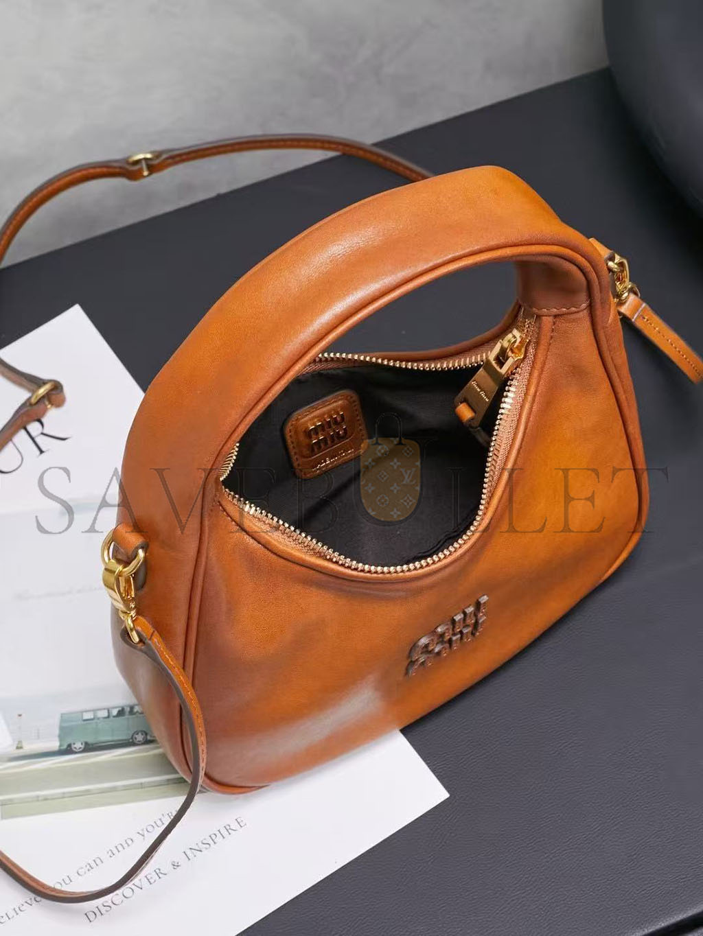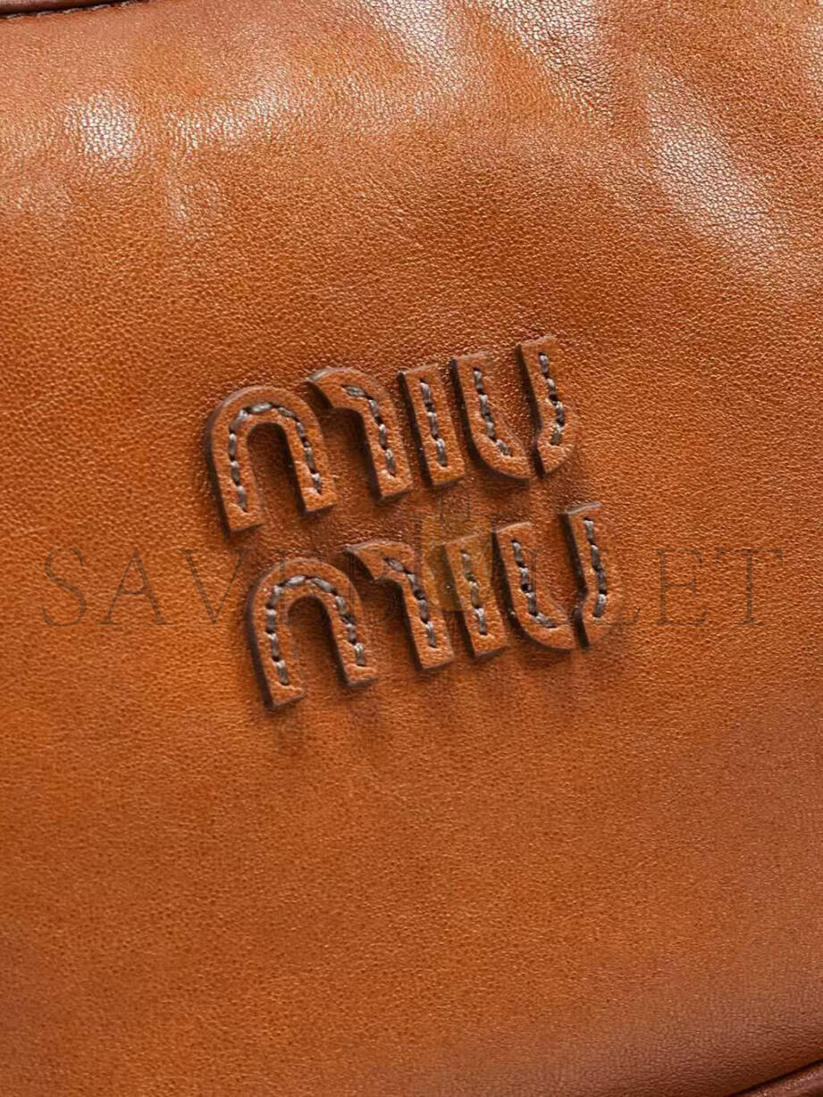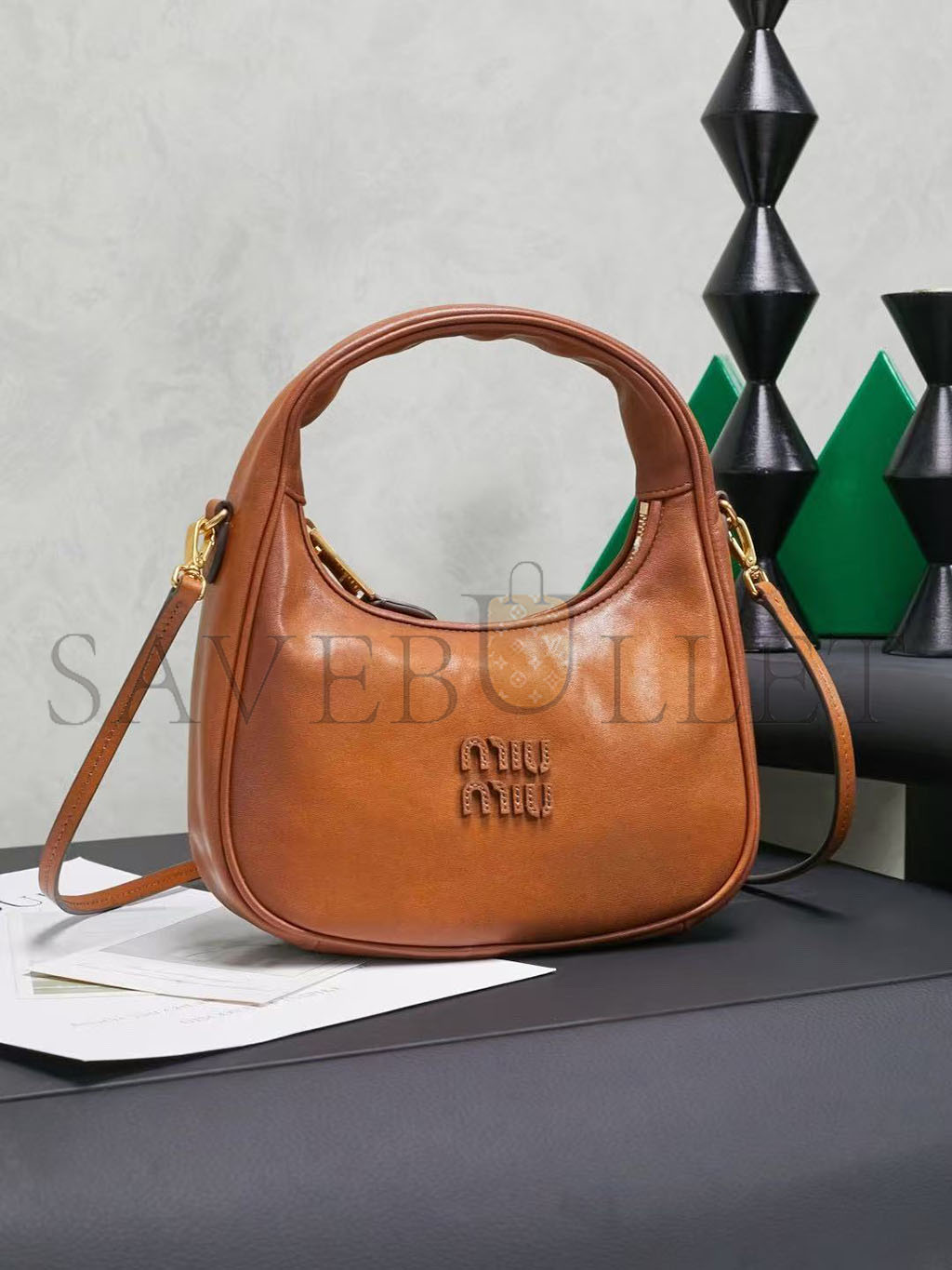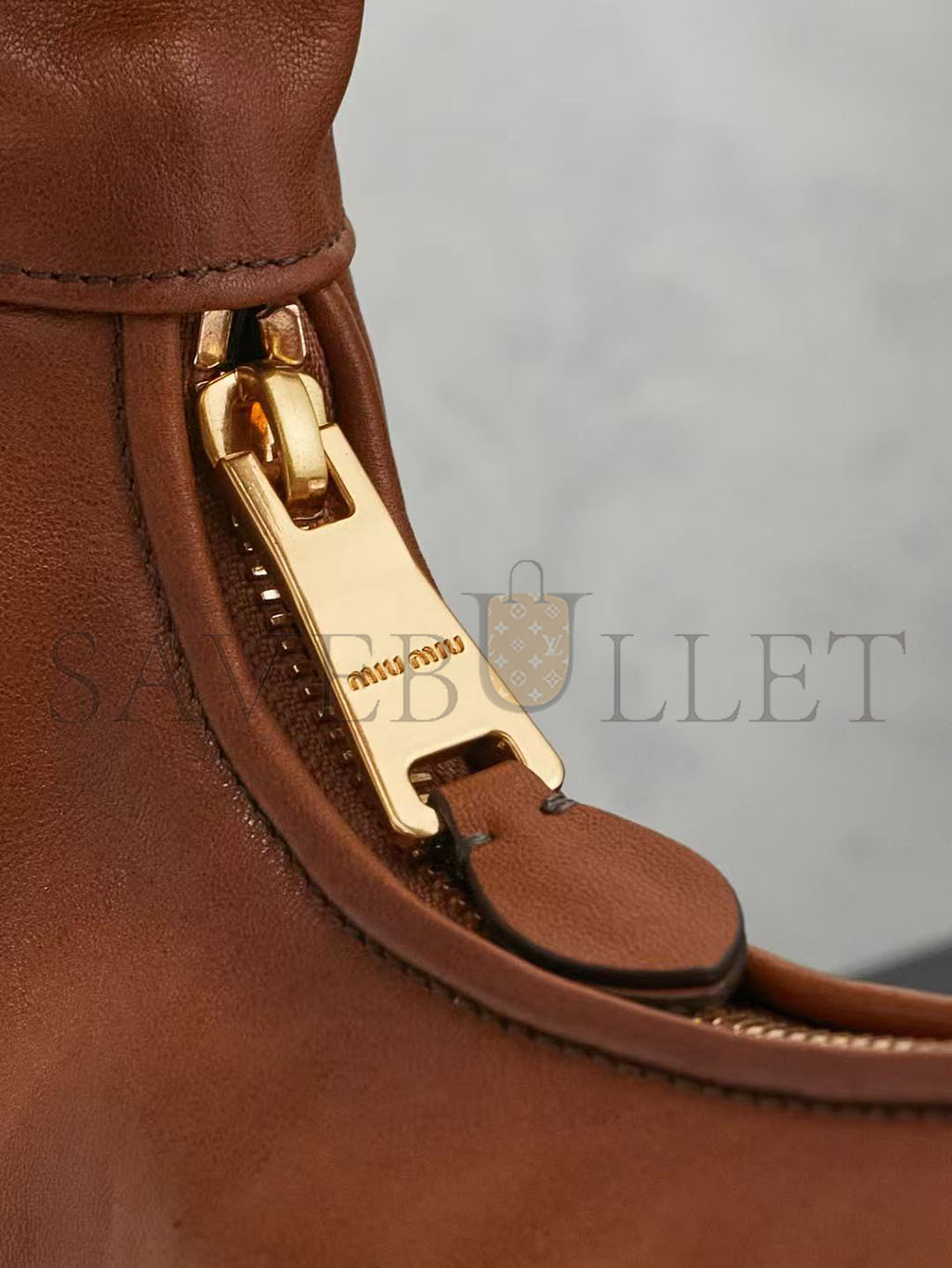 MIU MIU WANDER SMALL COGNAC LEATHER HOBO BAG (20*17*6cm)