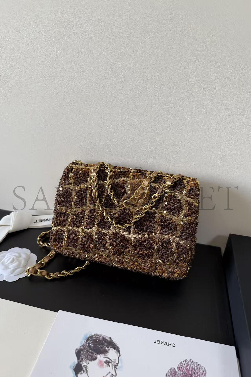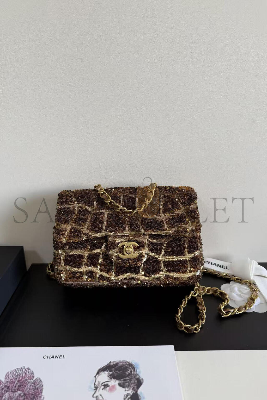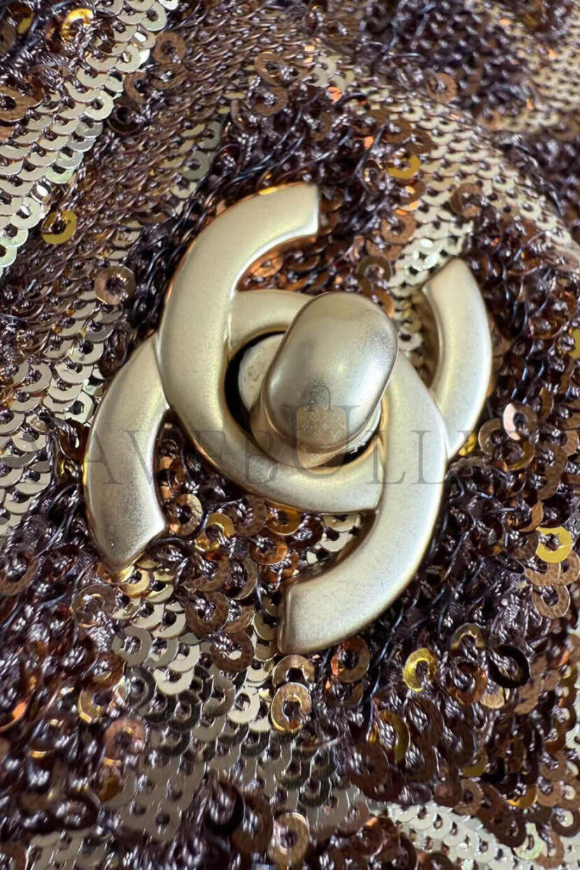 CHANEL SMALL FLAP BAG BROWN SEQUINS AS0827 (20*15*6cm)