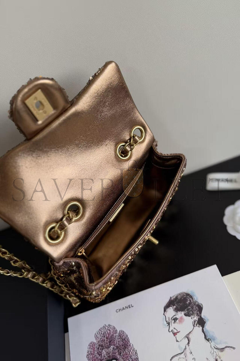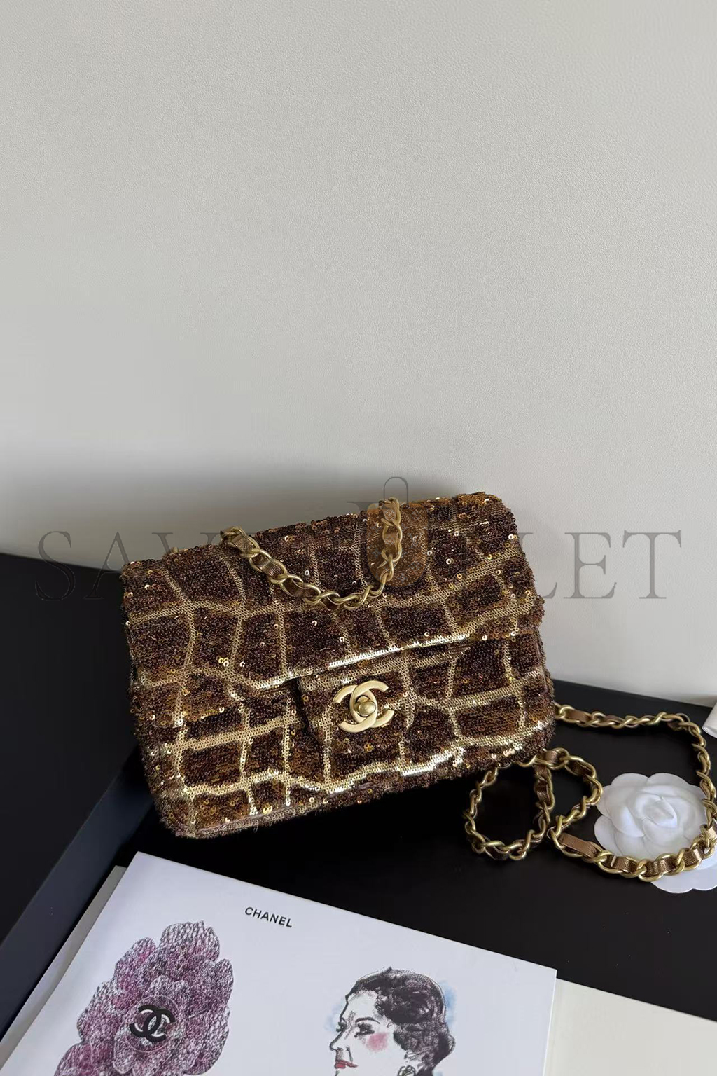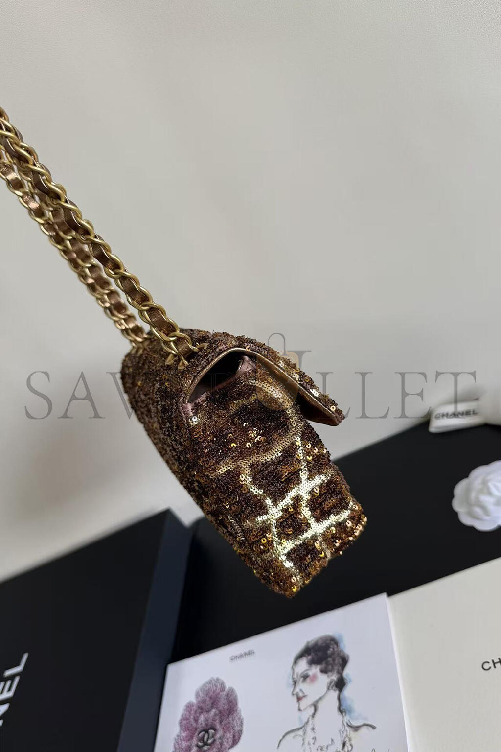 CHANEL SMALL FLAP BAG BROWN SEQUINS AS0827 (20*15*6cm)