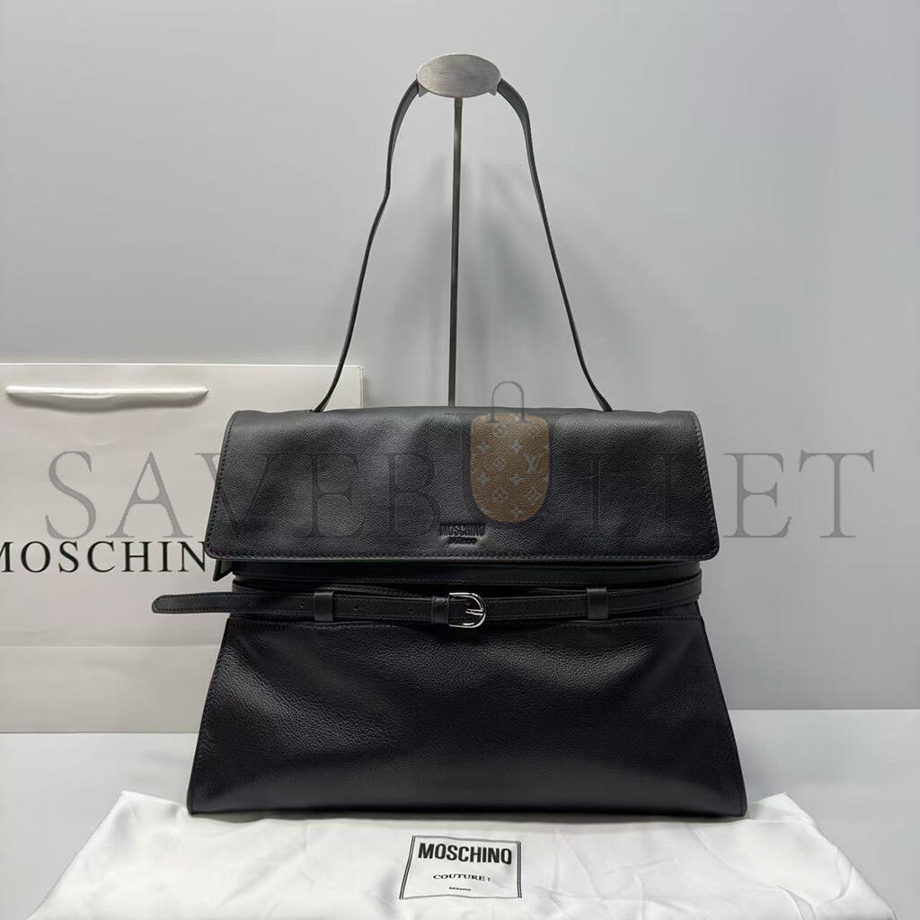 MOSCHINO TIE ME BELTED LEATHER TOTE BAG (38.5*31*15cm)