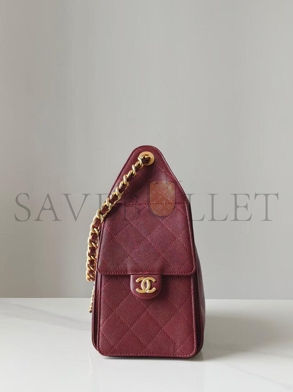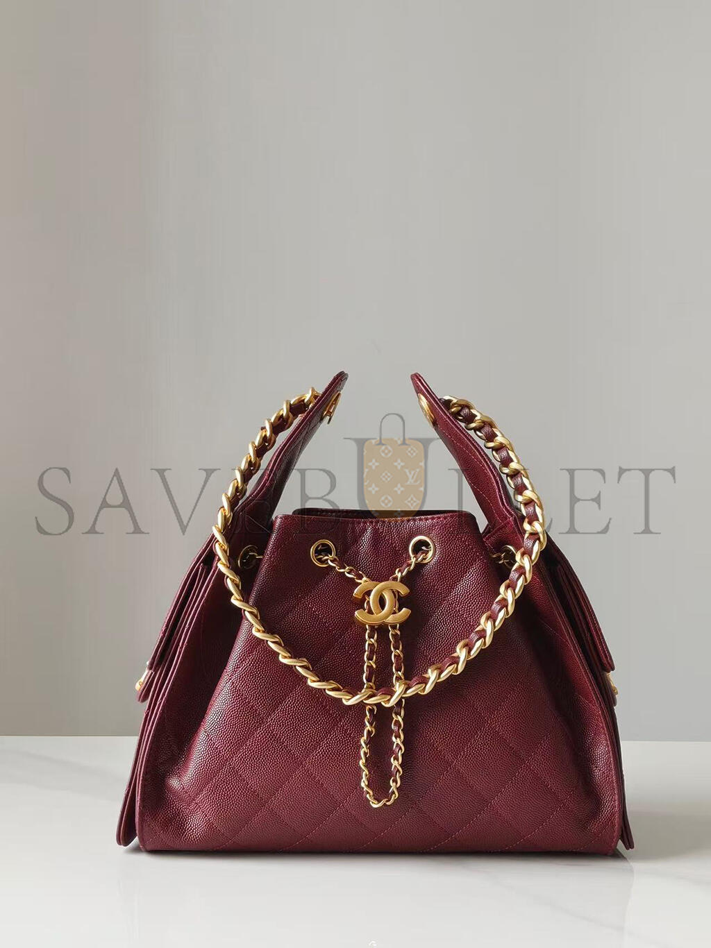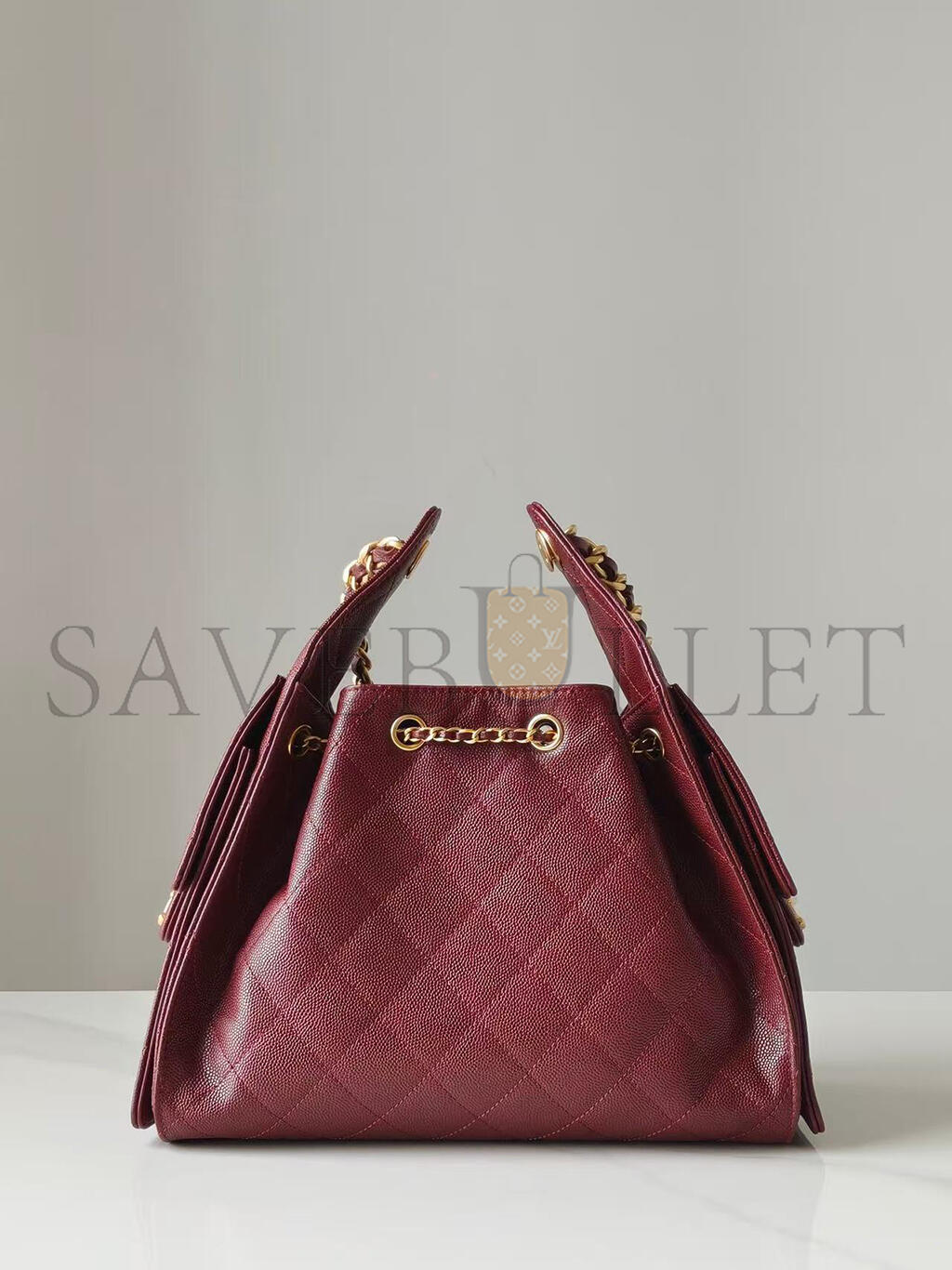 CHANEL 25 SMALL HANDBAG CAVIAR LEATHER BURGUNDY AS5293 (30*26*14cm)