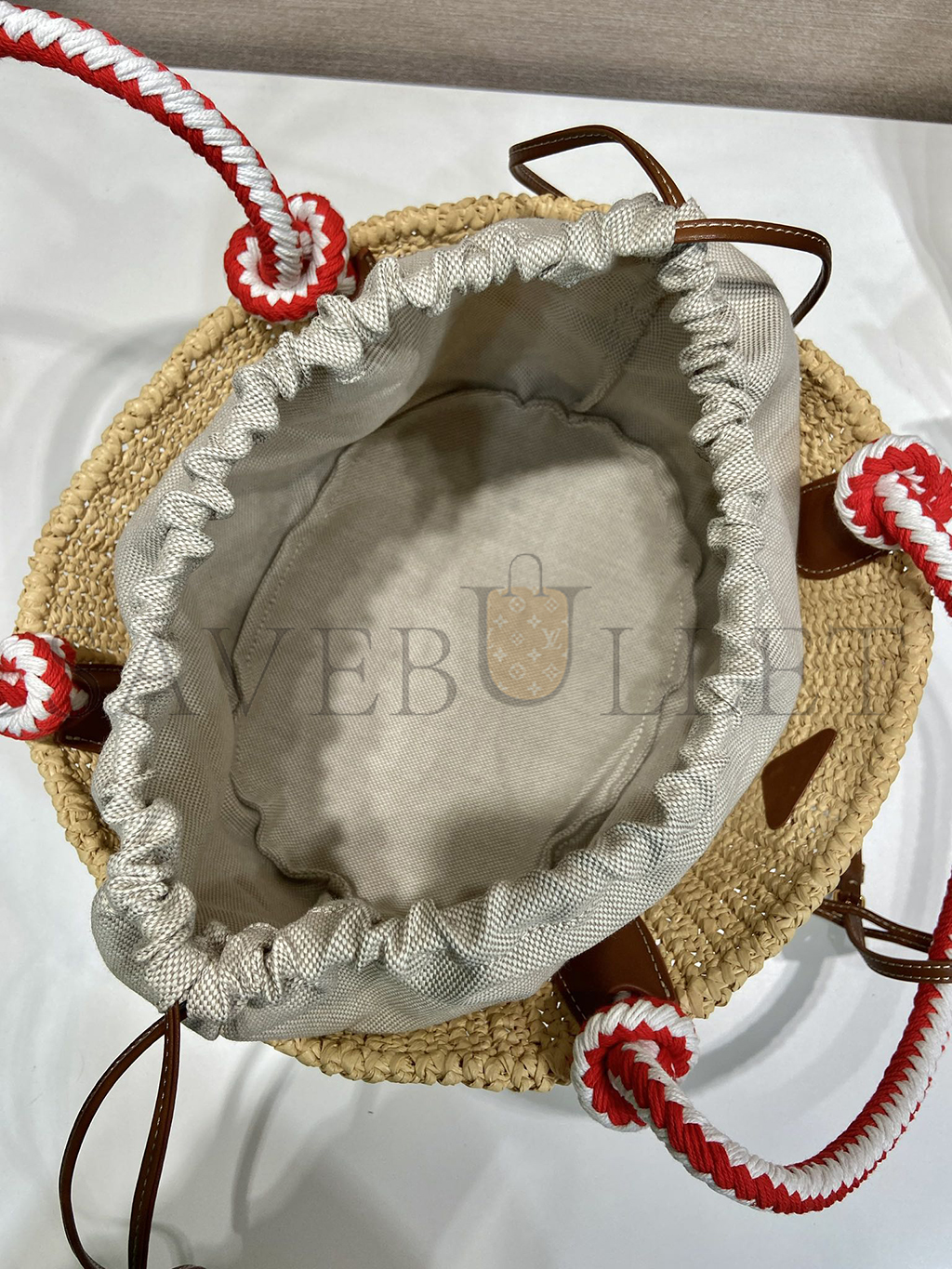 Leather handlesDetachable inner pouchDecorative claspHardware in Sun Gold finishingEmbossed logo on central leather strapNatural canvas liningDimensio..