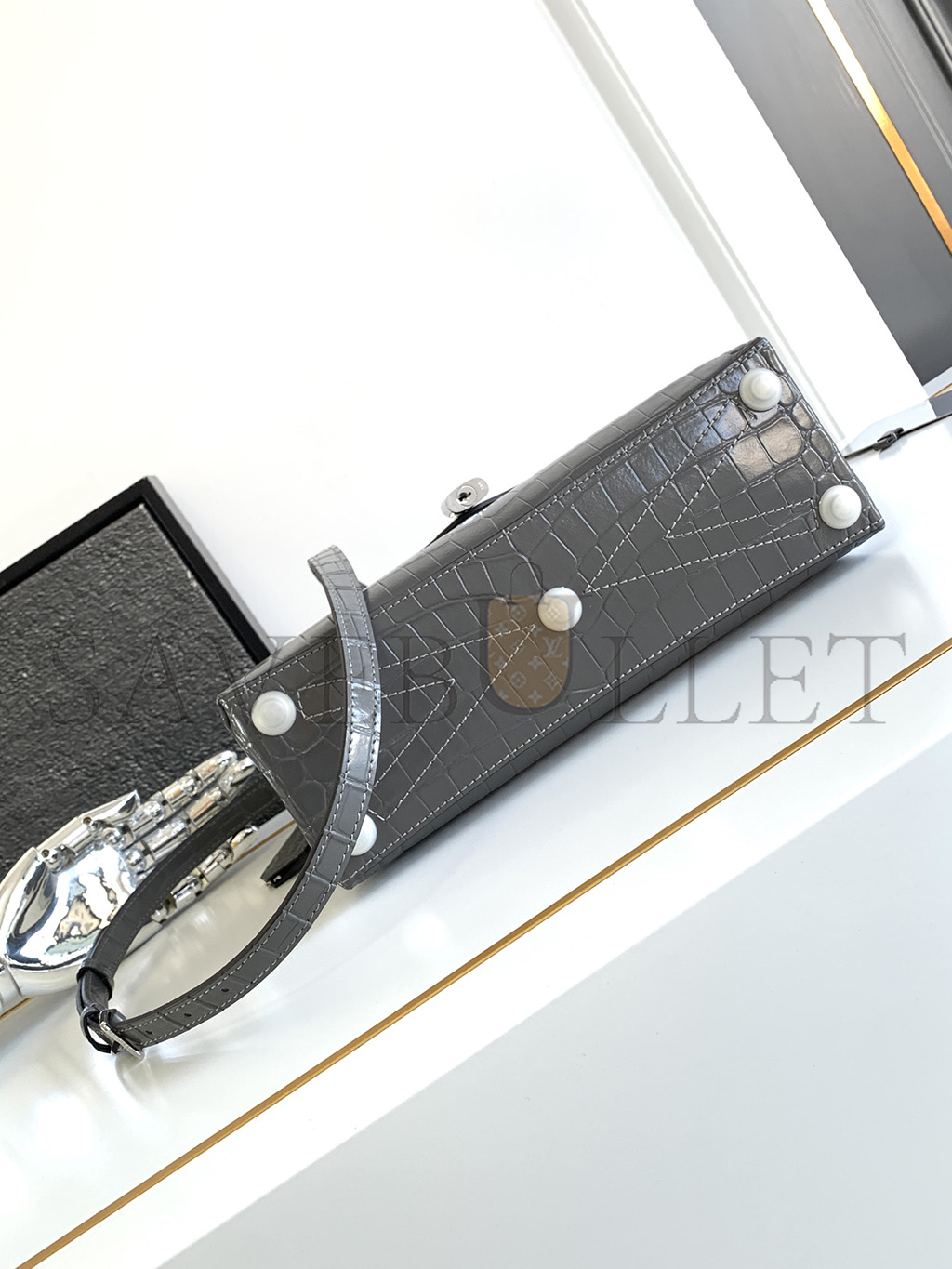 BALENCIAGA GREY HOURGLASS S CROCODILE-EFFECT LEATHER BAG MATCHESFASHION US (22.5*14*10cm)