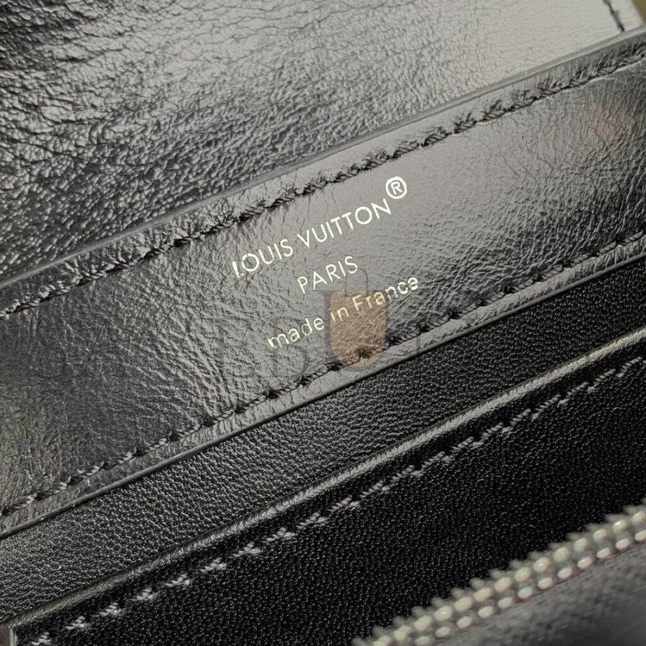 It can hold a smartphone, earphones, LV Vertical wallet and keys.