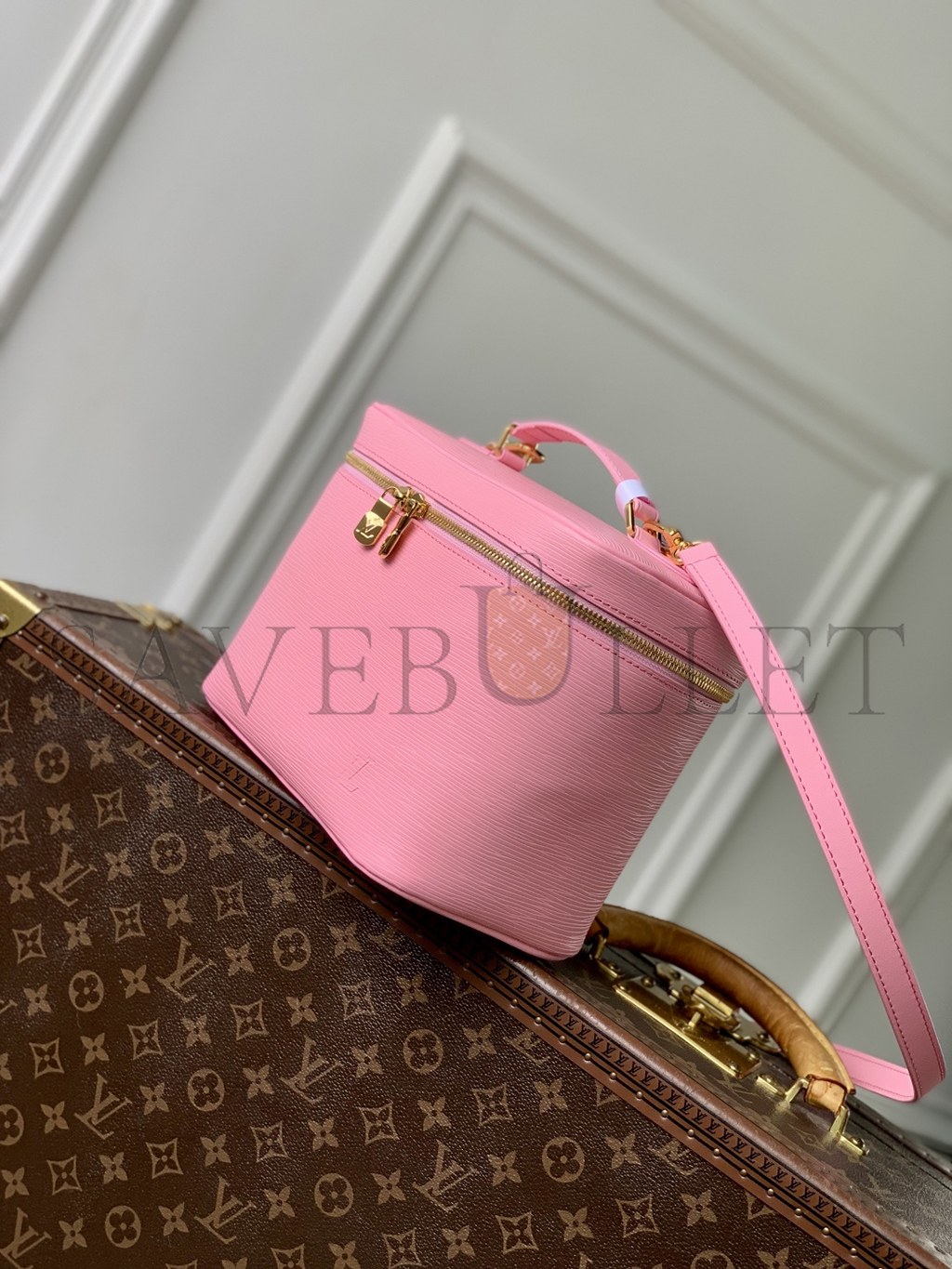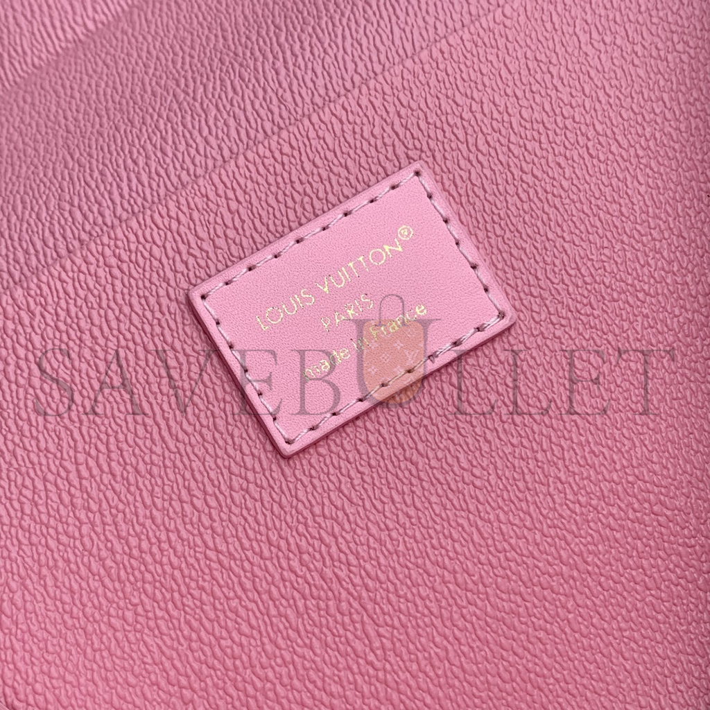 The OnTheGo PM is a tote-style handbag made from pastel-colored Monogram Empreinte leather, with its distinctive Monogram embossing. The four riveted ..