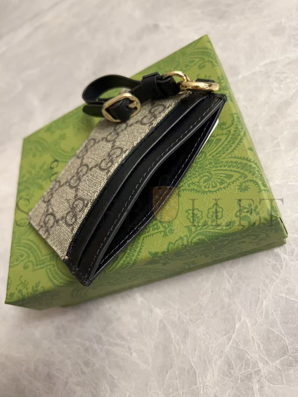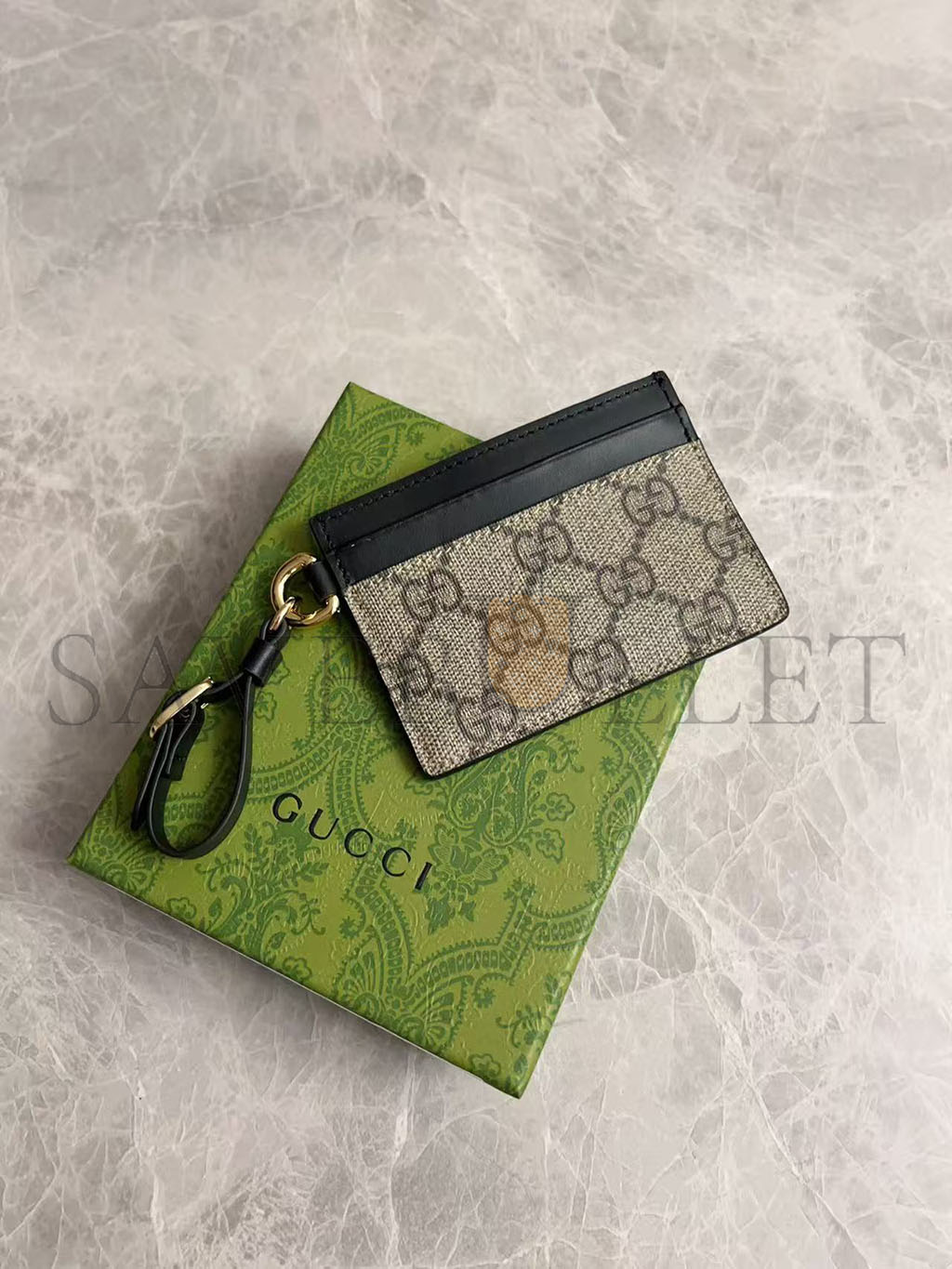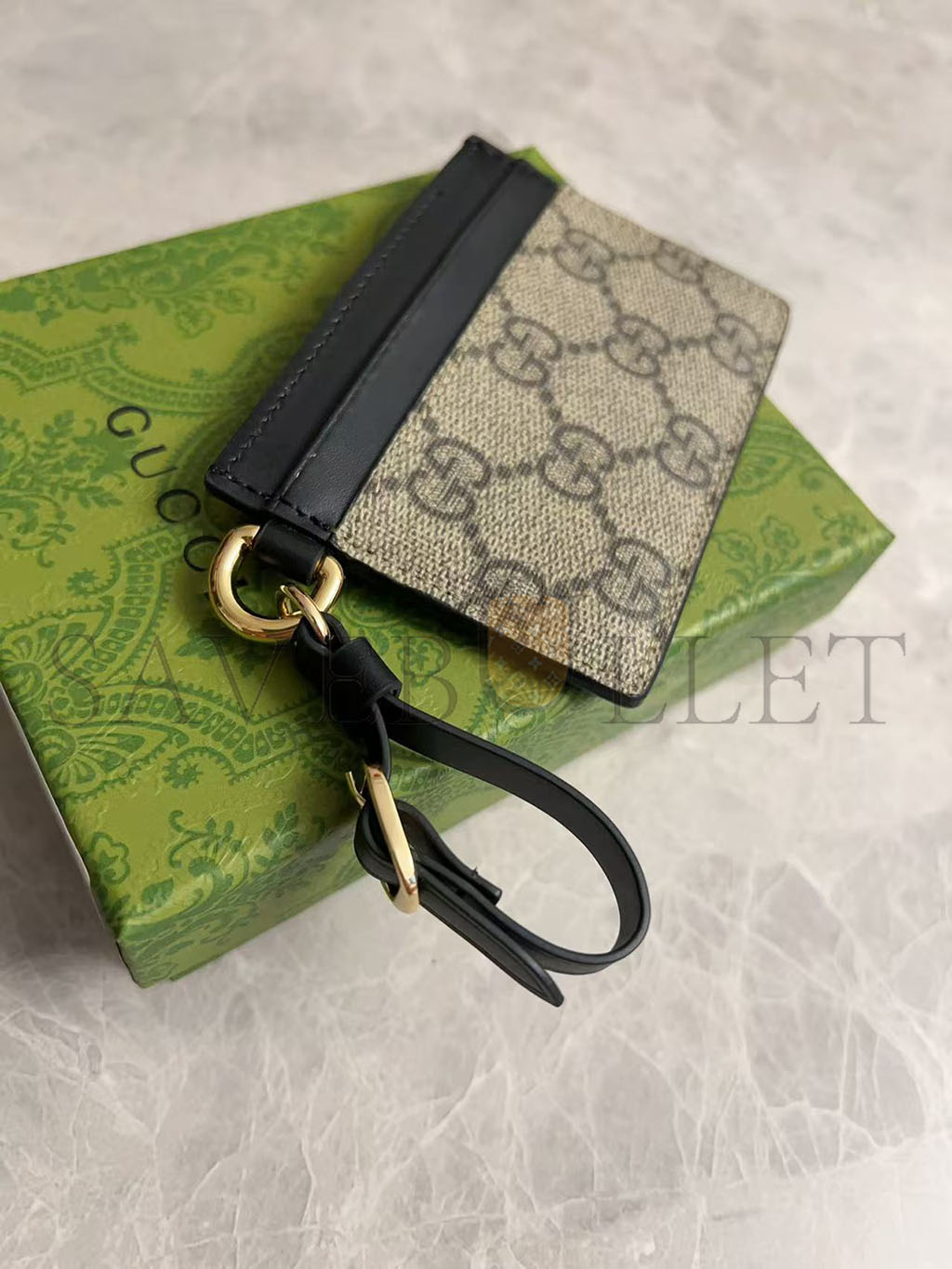 GUCC GG EMBLEM CARD CASE WITH STRAP 819121 (10*7cm)
