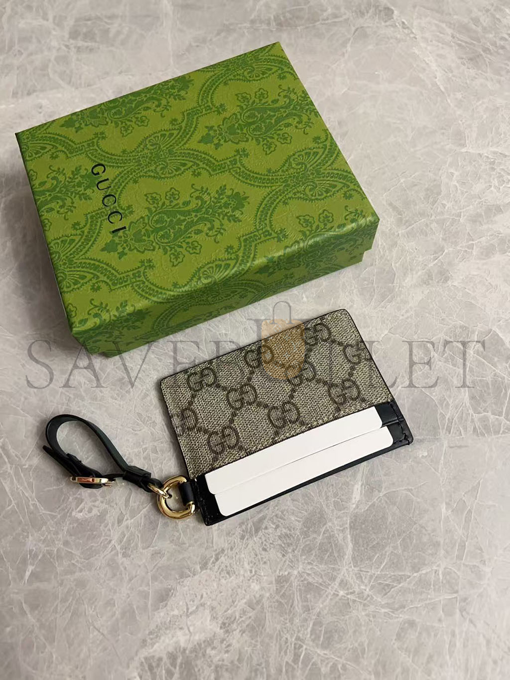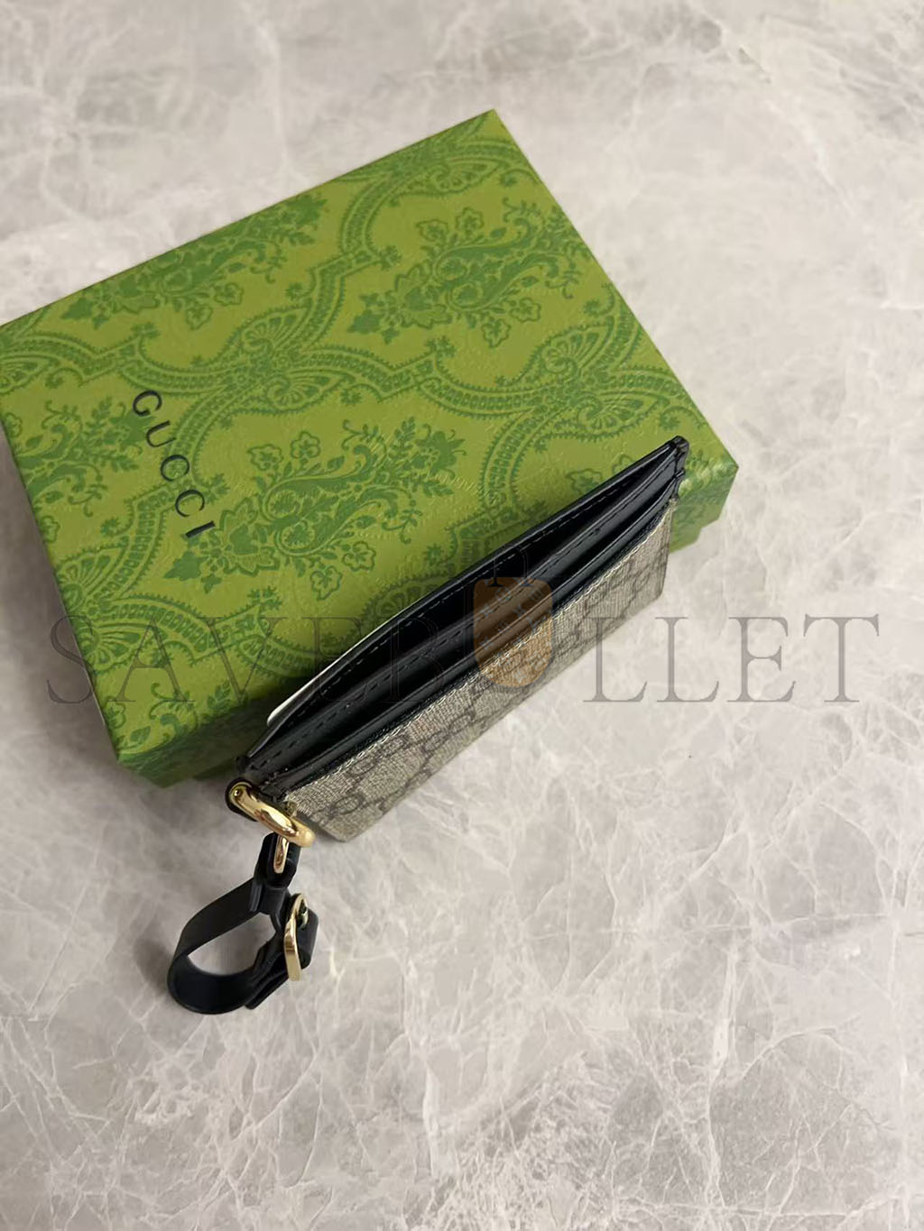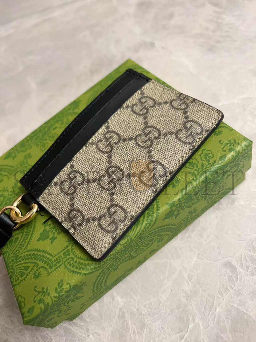 GUCC GG EMBLEM CARD CASE WITH STRAP 819121 (10*7cm)