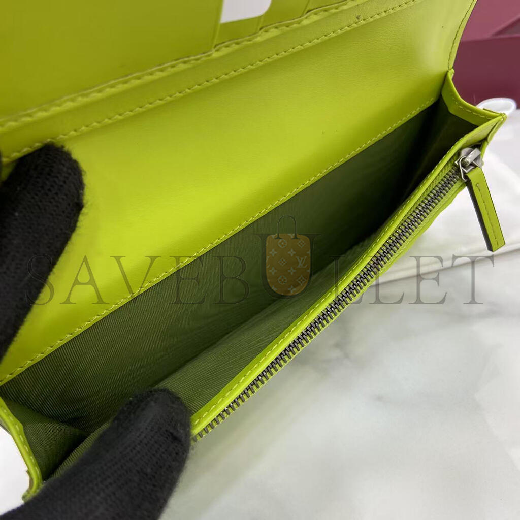 7.9 x 5.5 x 3.5 inches(Length x Height x Width)Denim BlueLambskin leatherLambskin-leather trimCowhide-leather liningGold-toned hardwareTwist lockDoubl..